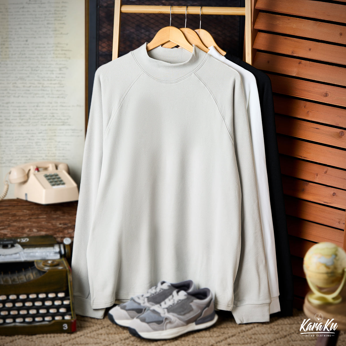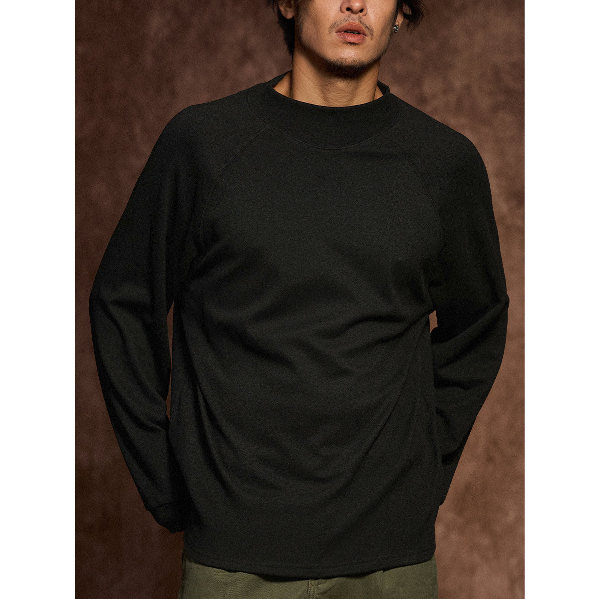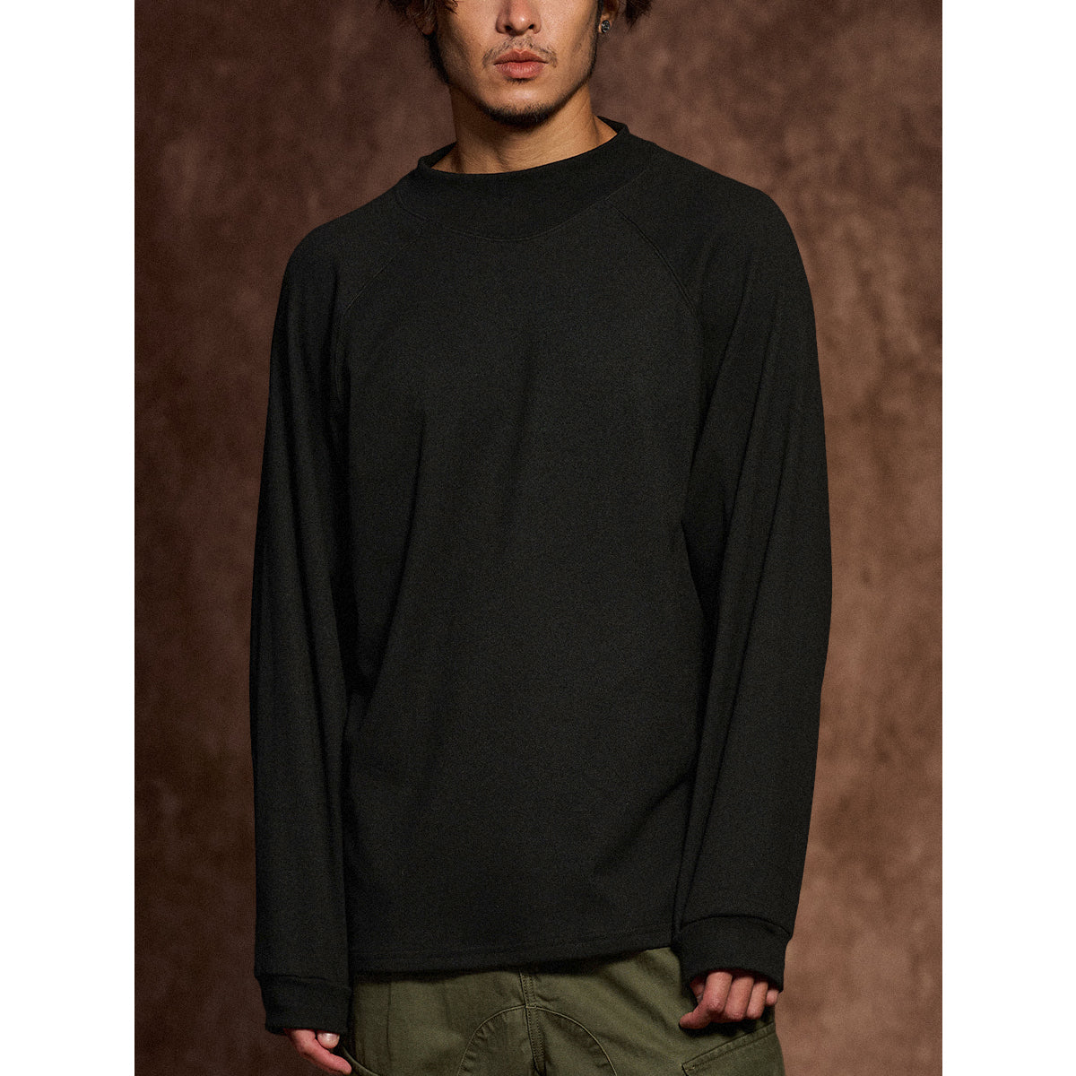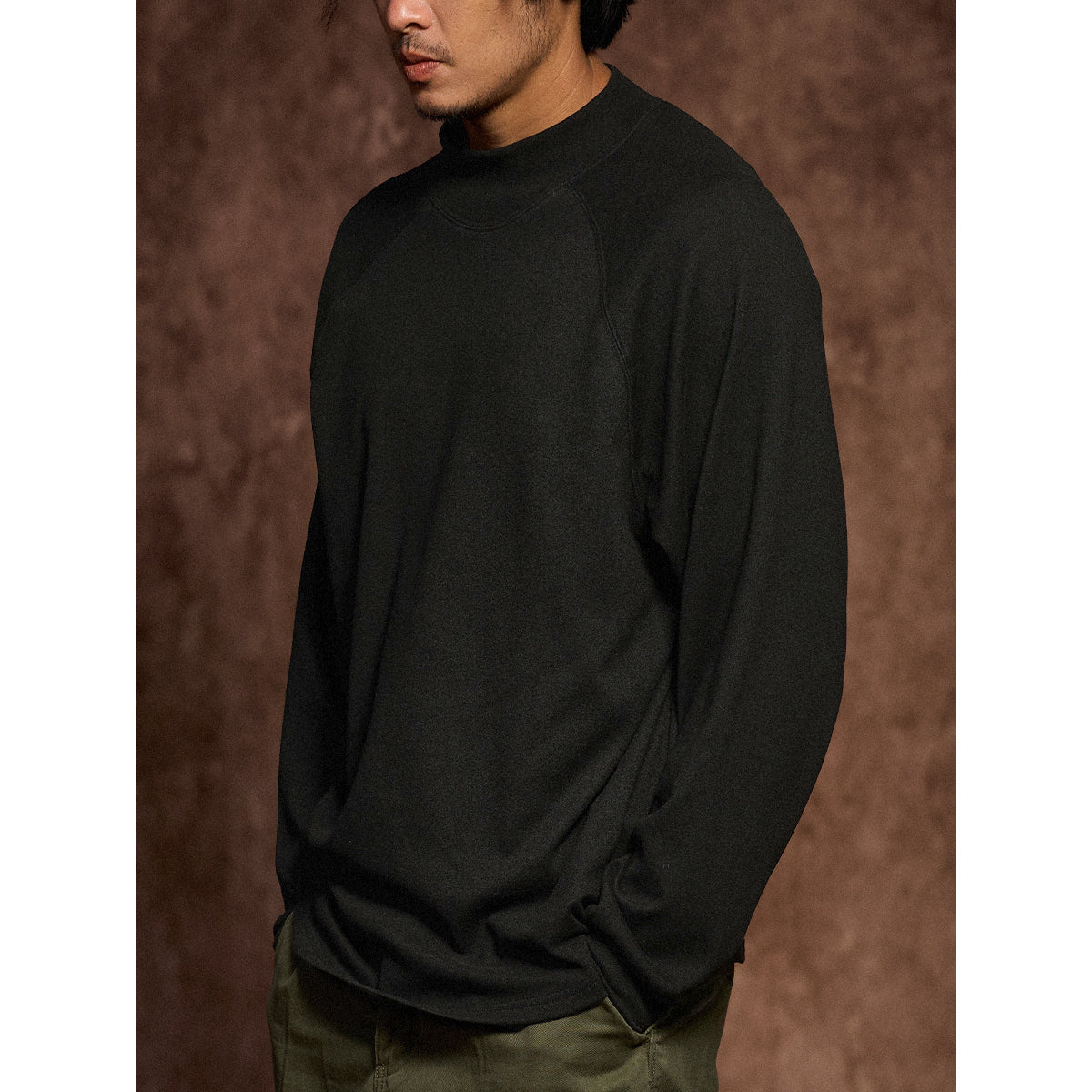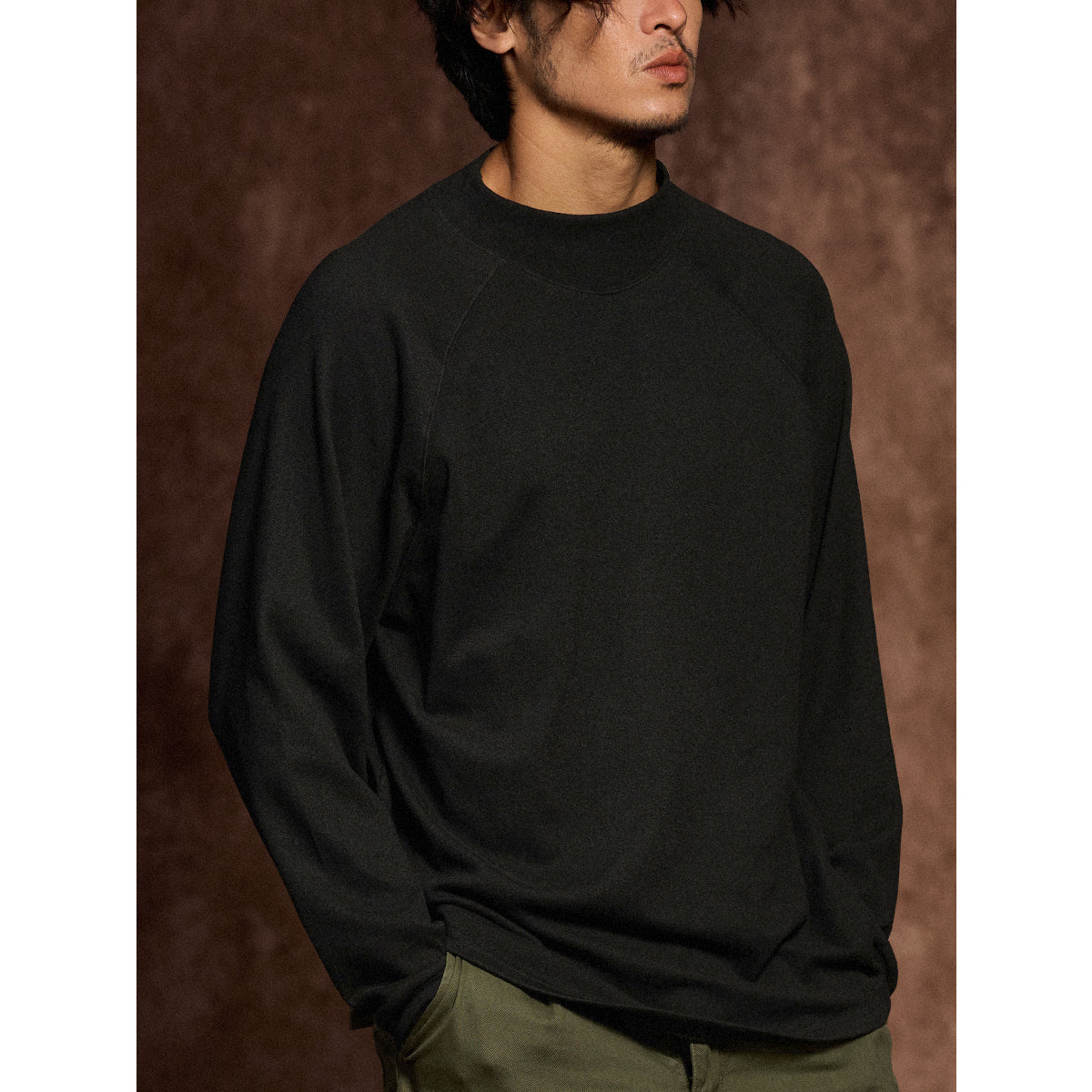 봄, 가을, 겨울까지 활용할 수 있는 심플한 반 터틀넥 맨투맨입니다. 미니멀한 무지 컬러로 다양한 스타일링에 자연스럽게 어울립니다.