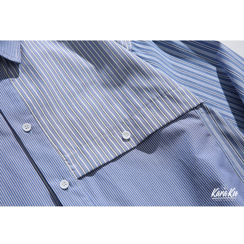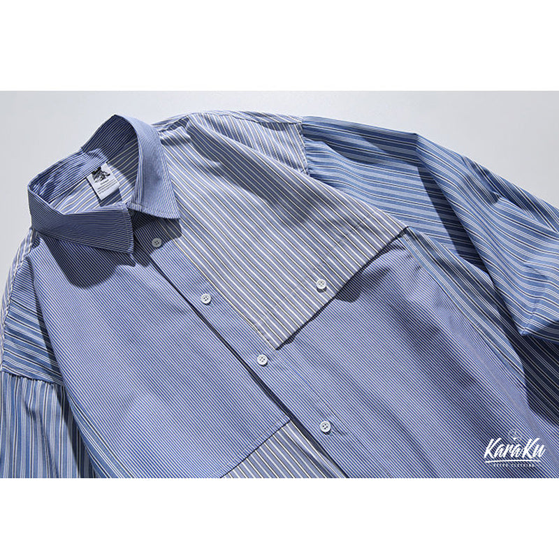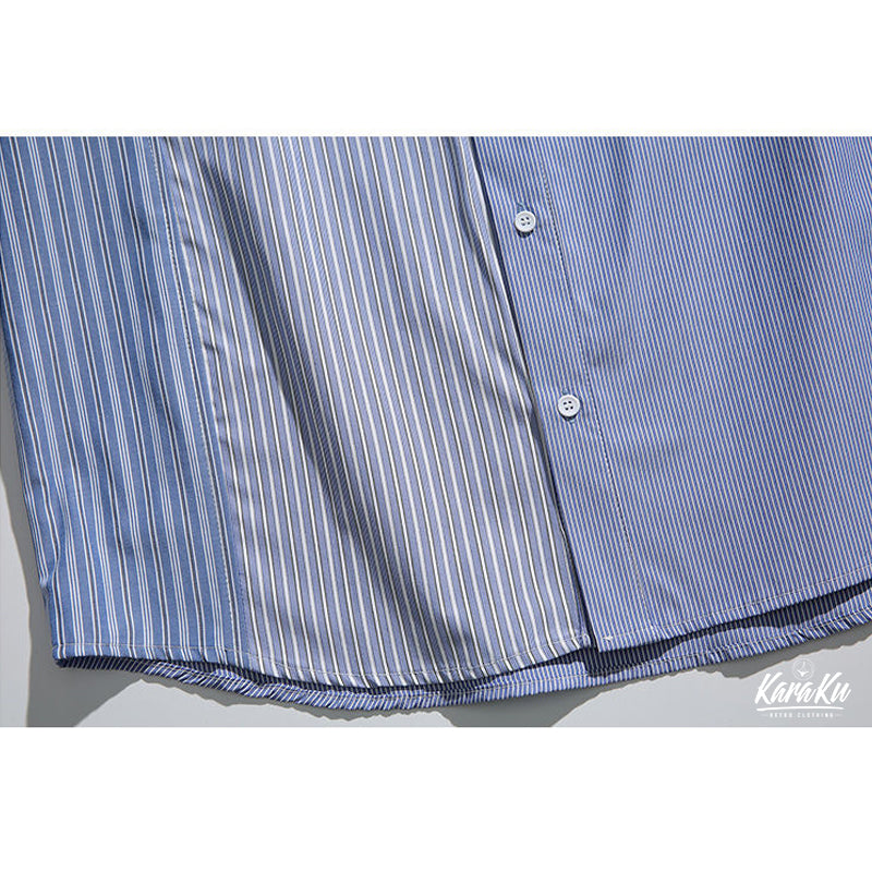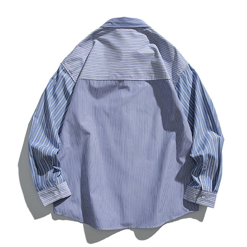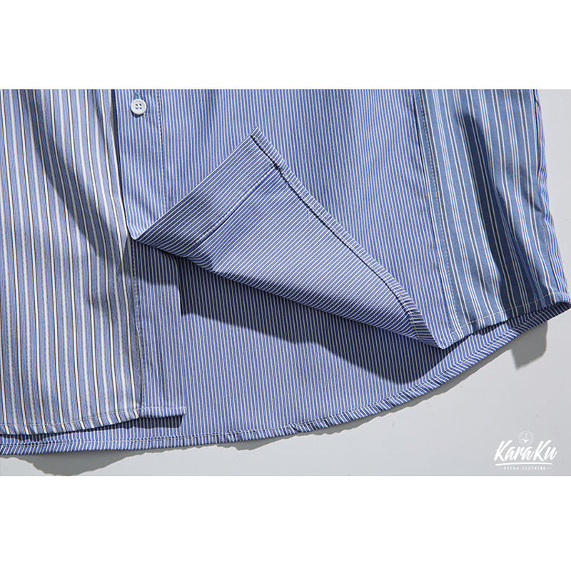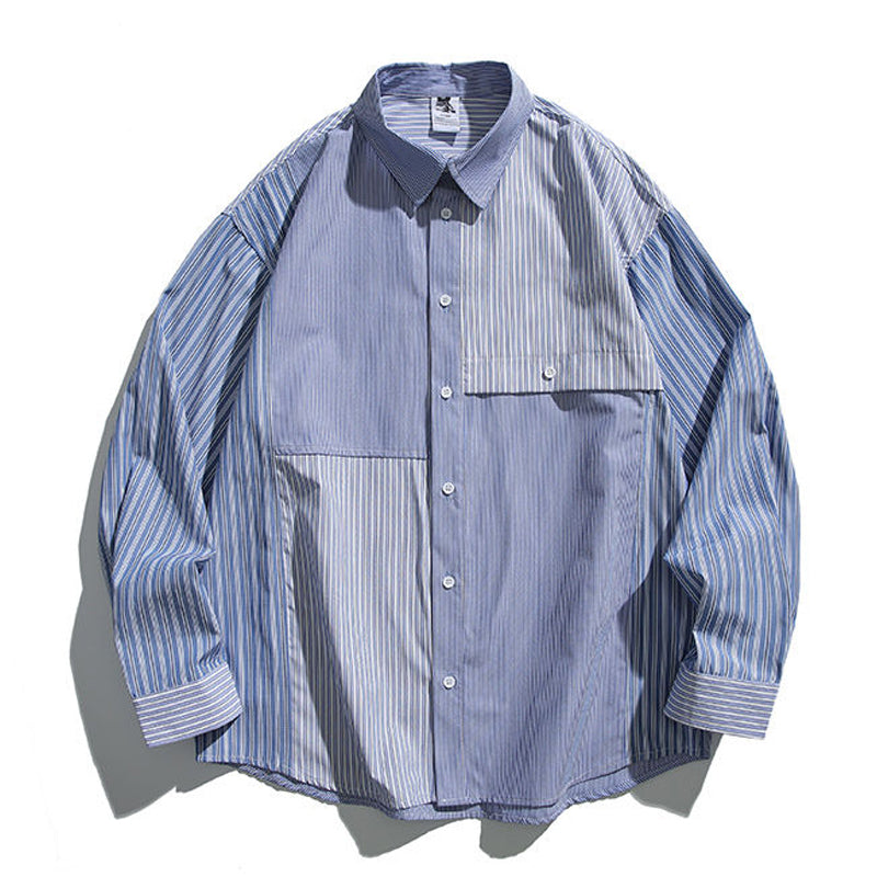 3종 스트라이프 무늬 전환 패치워크 긴팔 셔츠