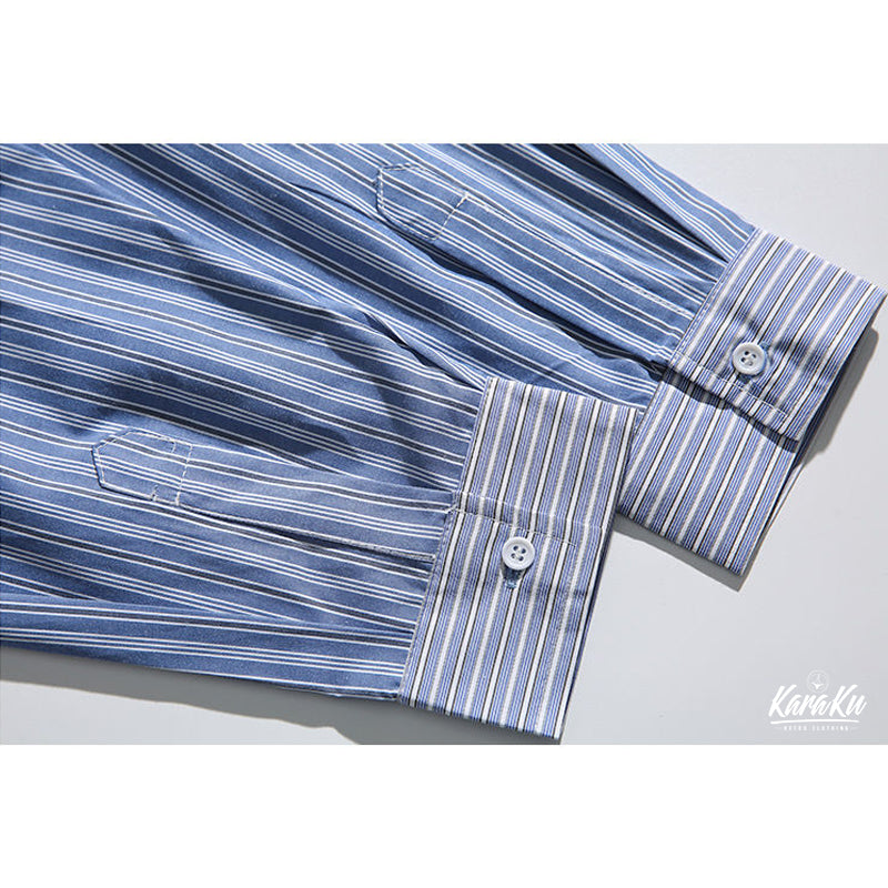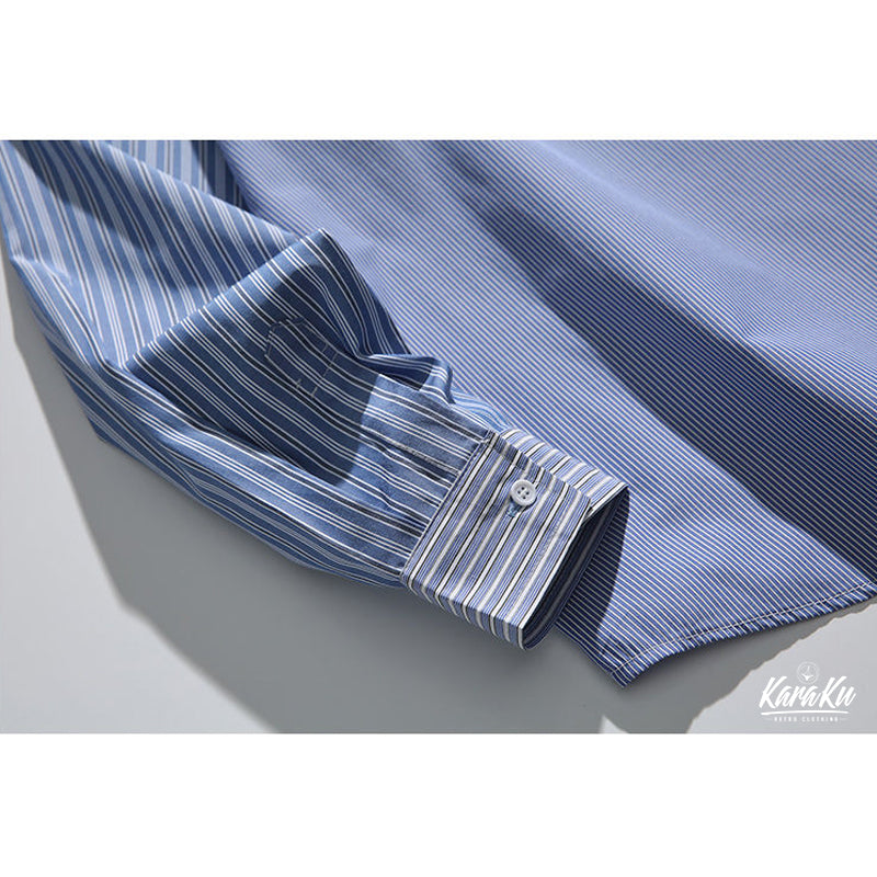 클래식한 긴팔 셔츠 디자인을 기반으로 하면서도, 입체적인 카라와 소맷단으로 세련된 분위기를 연출. 전신을 감싸는 스트라이프 패턴이 스트릿 스타일에 잘 어울려 코디를 한층 업그레이드해 줄 아이템. 드롭 숄더와 넉넉한 실루엣으로 몸에 달라붙지 않아 편안한 착용감을 제공하며, 소매 끝을 곡선적으로 마감한 커브 헴 디자인으로 이너는 물론 라이트 아우터로도 활용 가능. 버튼다운 카라는 편안한 인상을 주면서도, 레트로풍 스타일에도 자연스럽게 어울려 빈티지한 무드를 더해주는 포인트 아이템!