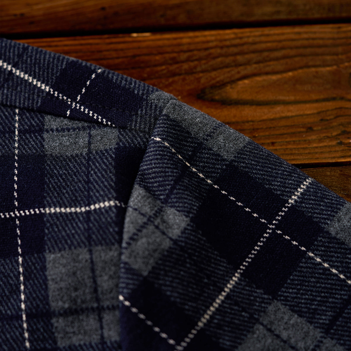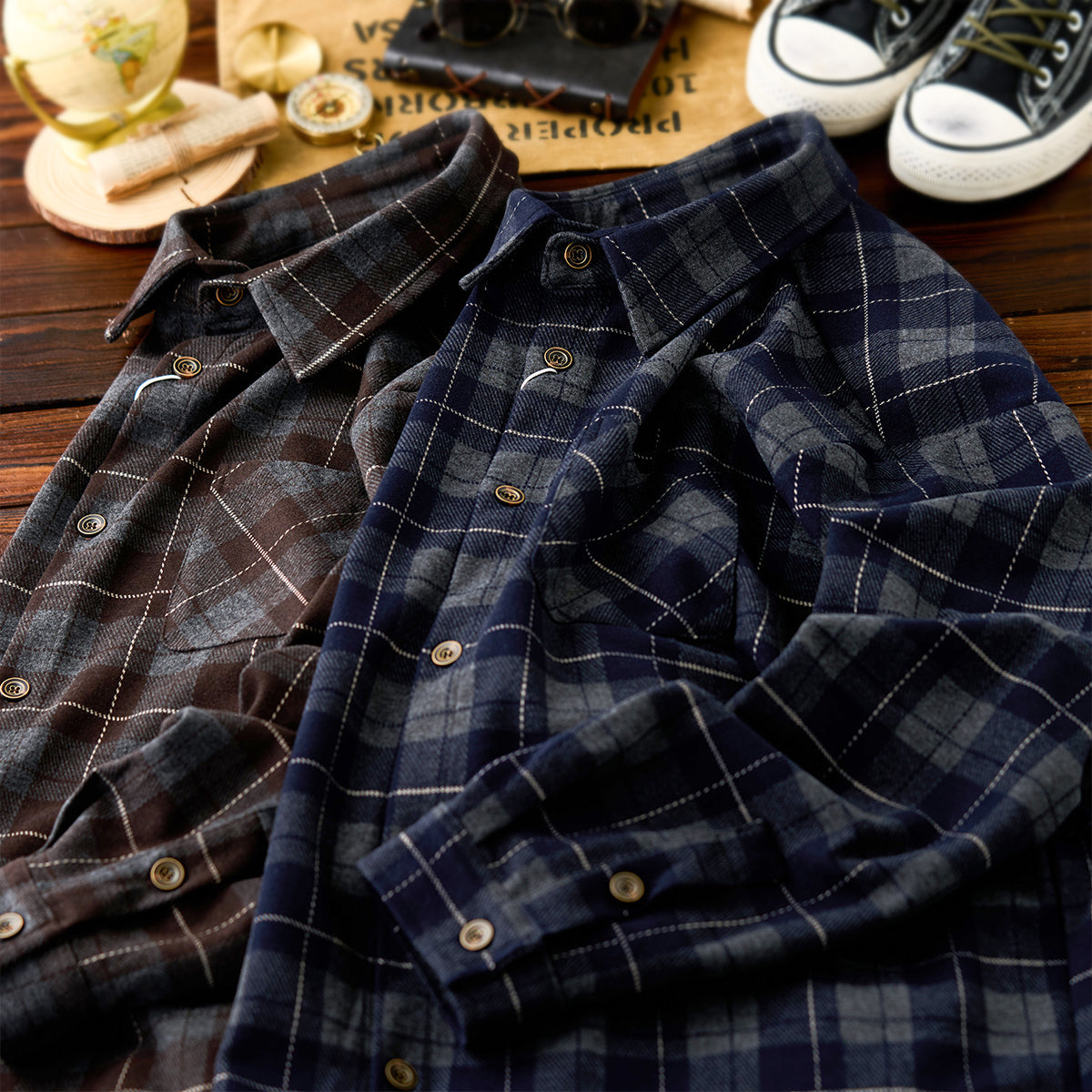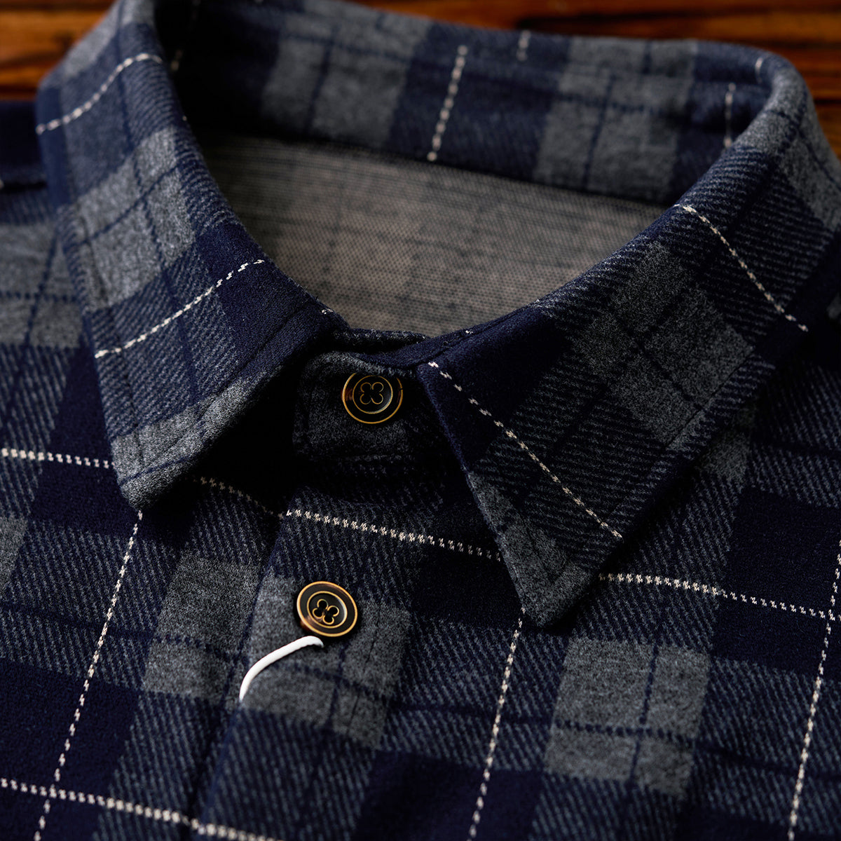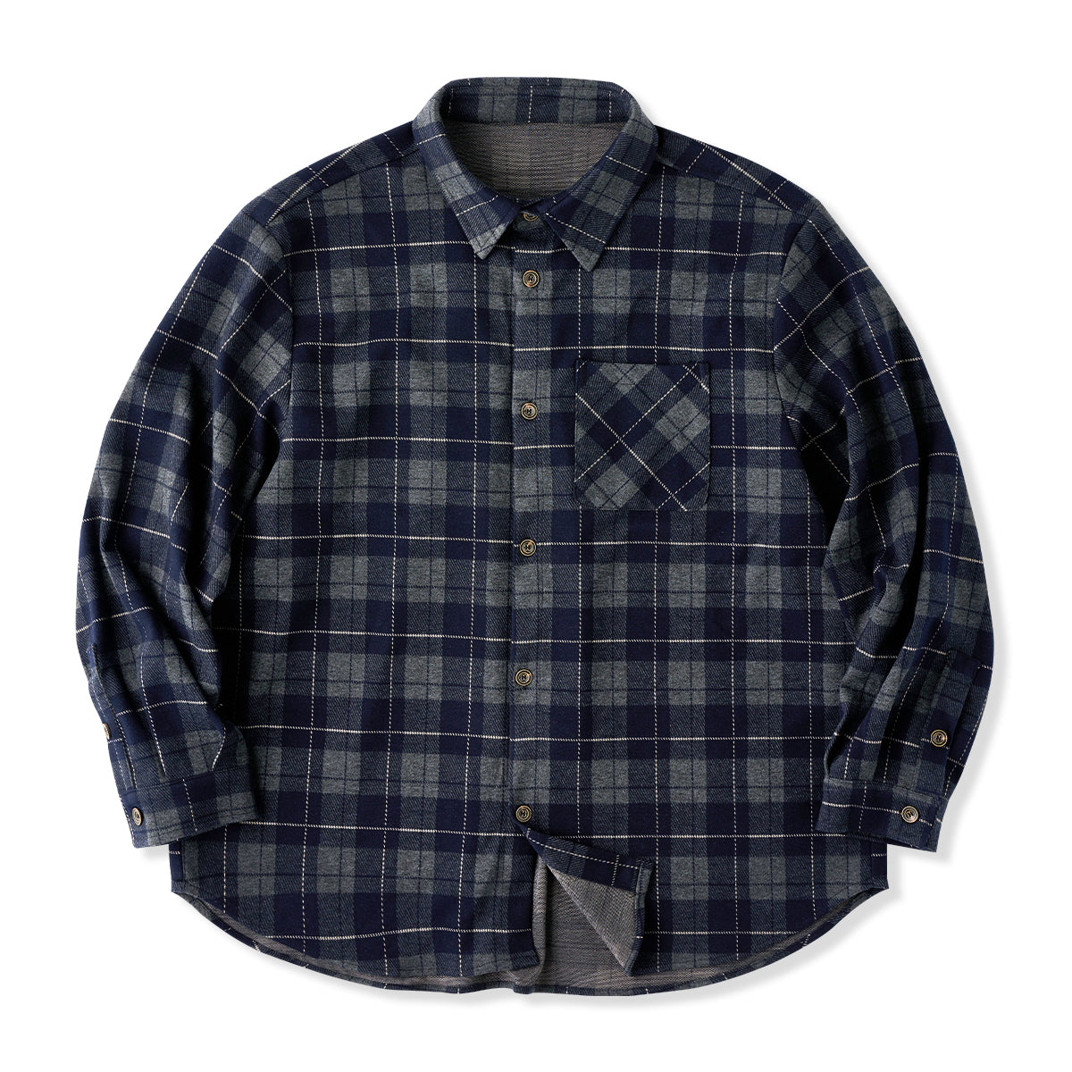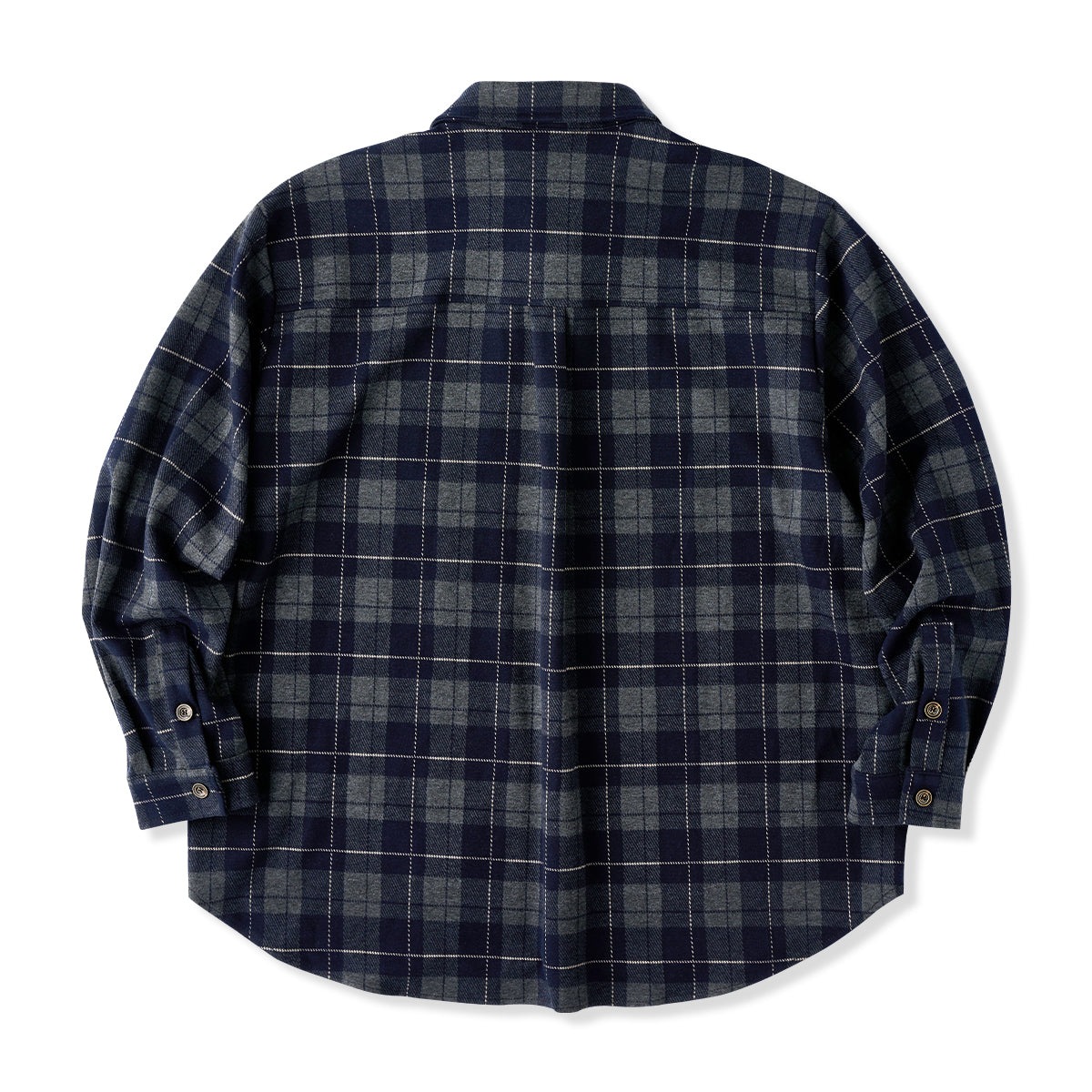 균형 잡힌 체크 패턴과 대각선 포켓 디테일로 입체감을 살리고, 나무 결 버튼과 미세 기모 가공으로 따뜻하고 고급스러운 착용감을 제공하는 셔츠입니다.
