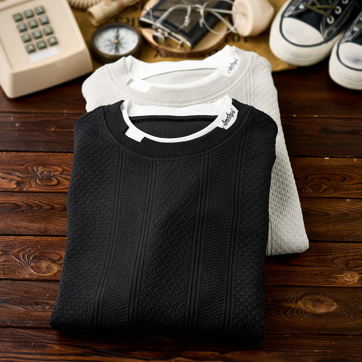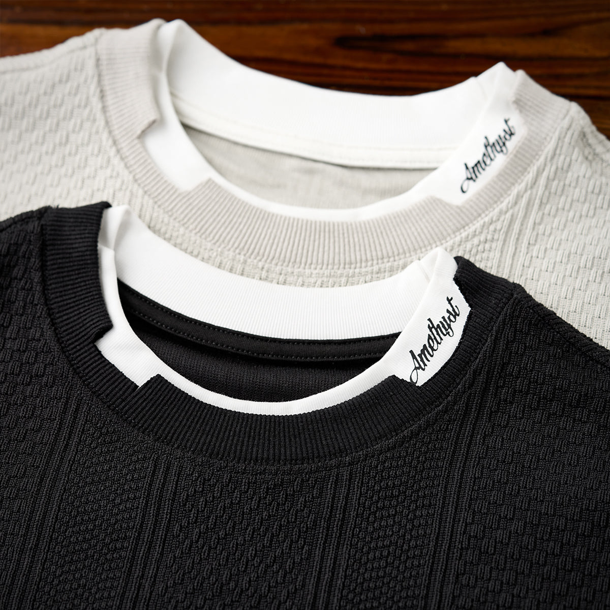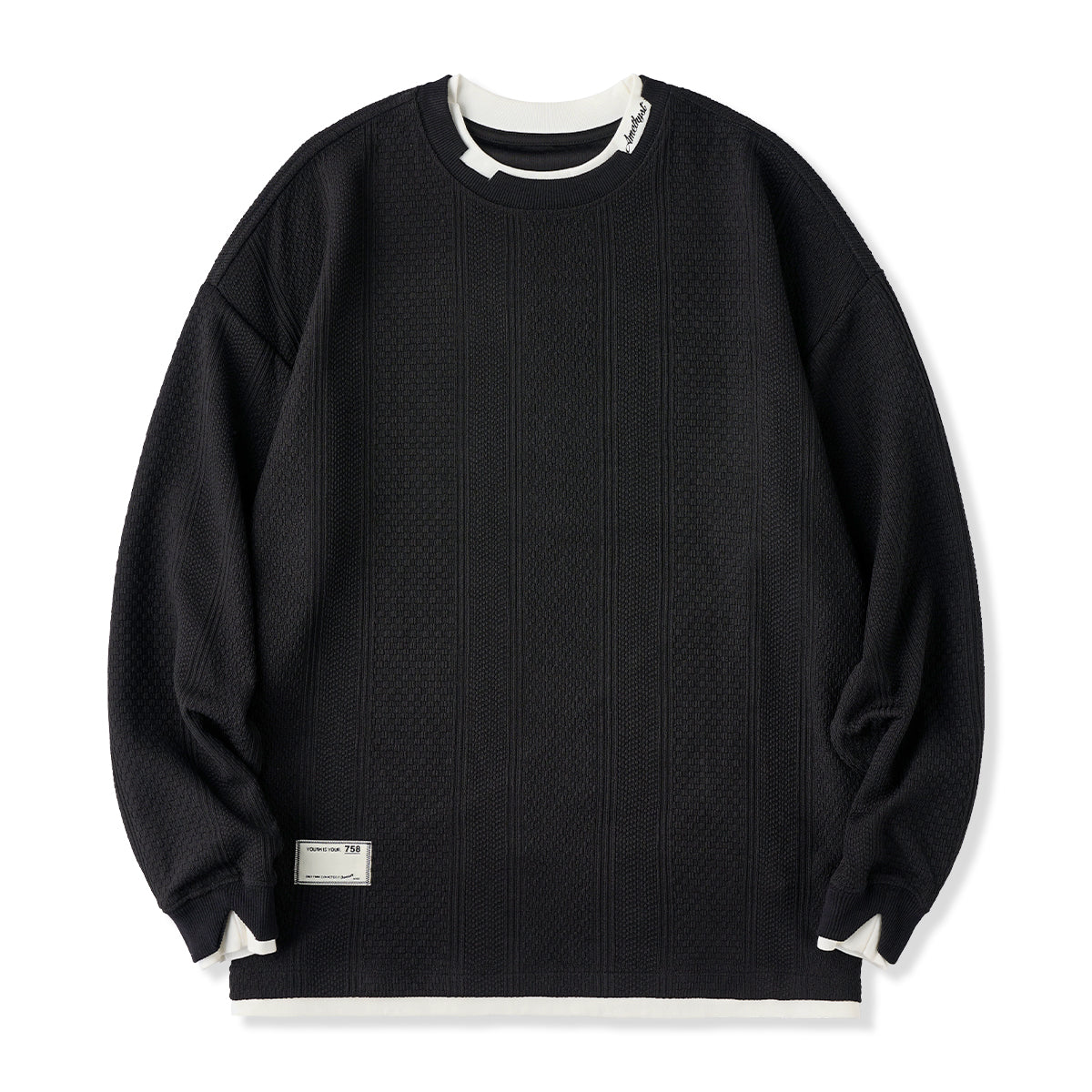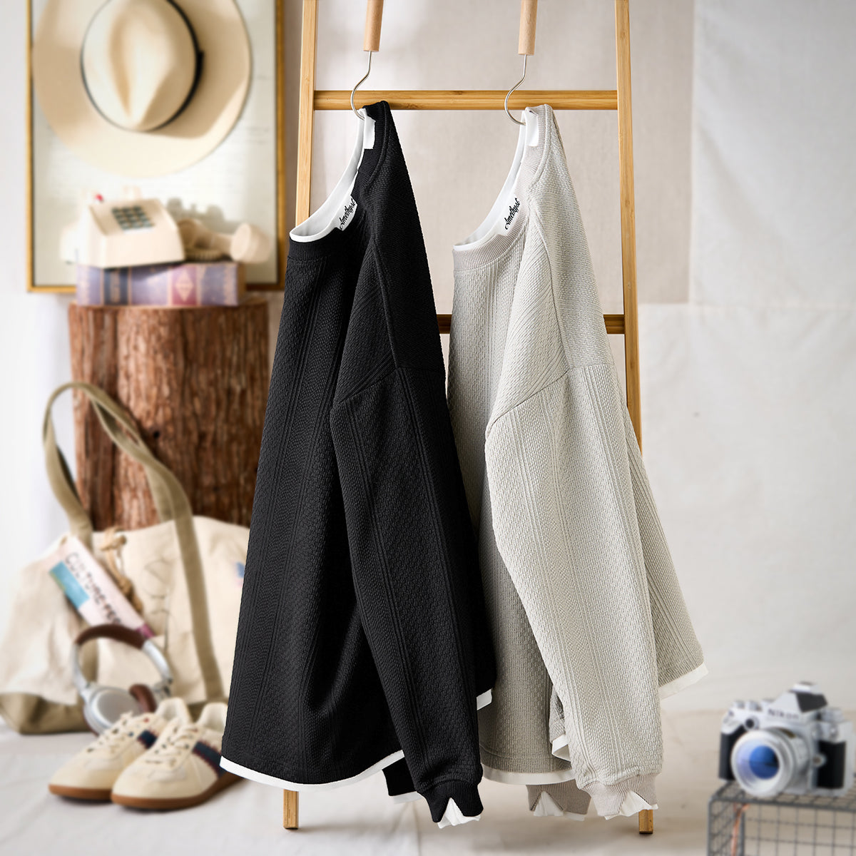 2컬러 테스처 니트 페이크 레이어드 긴팔 티셔츠