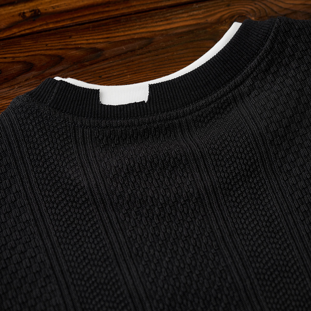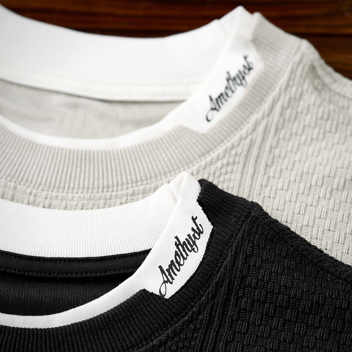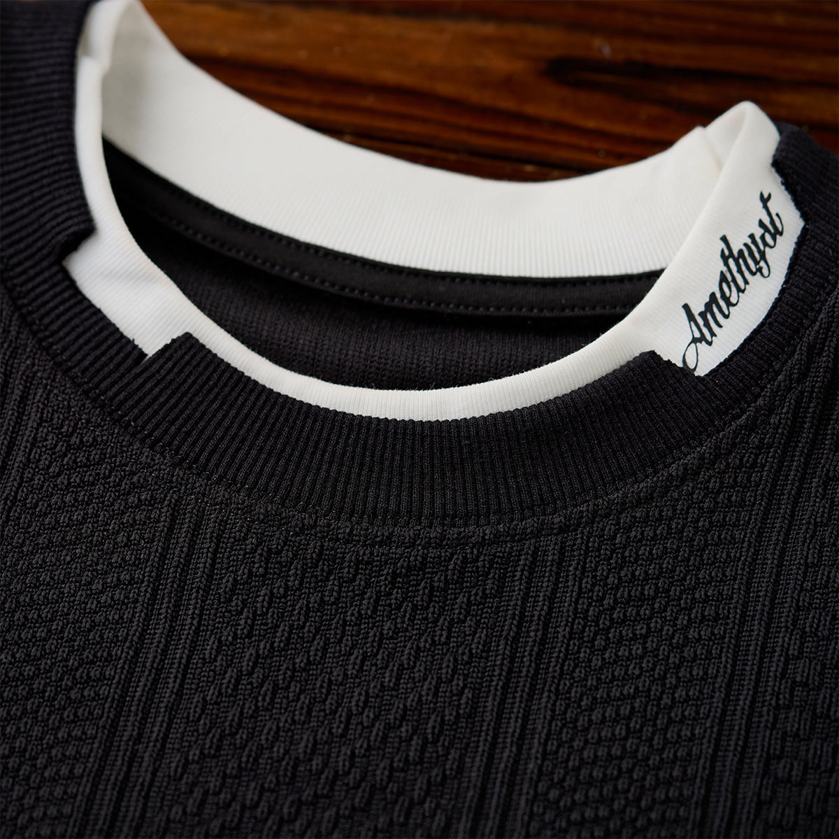페이크 레이어드 디자인으로 겹쳐 입은 듯한 스타일을 간편하게 연출할 수 있으며, 세로 라인 니트 짜임으로 고급스럽고 슬림한 실루엣을 완성합니다.