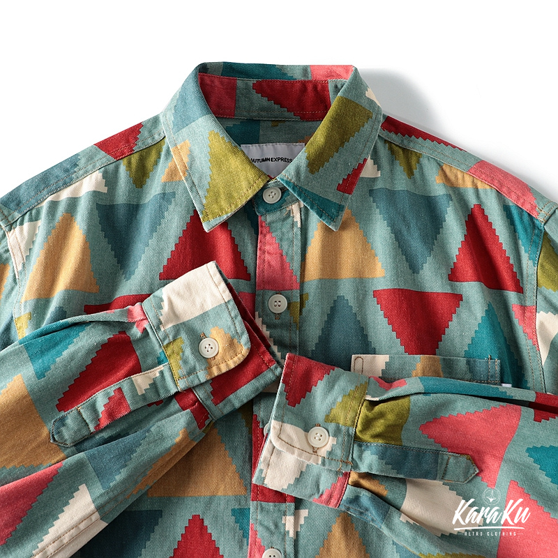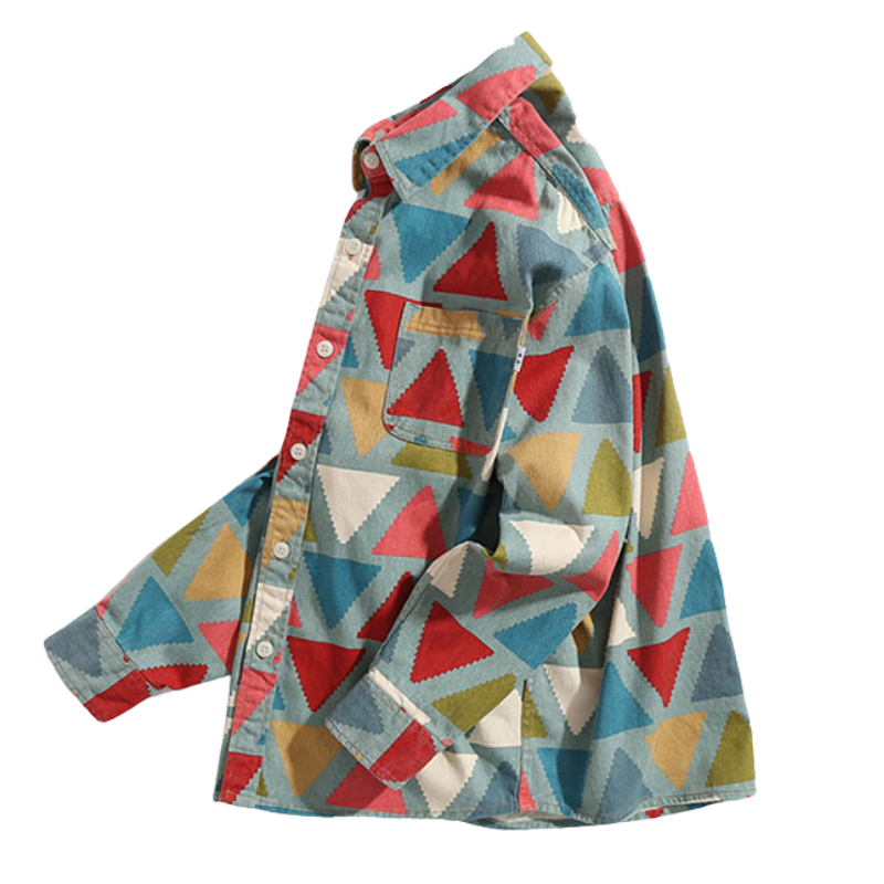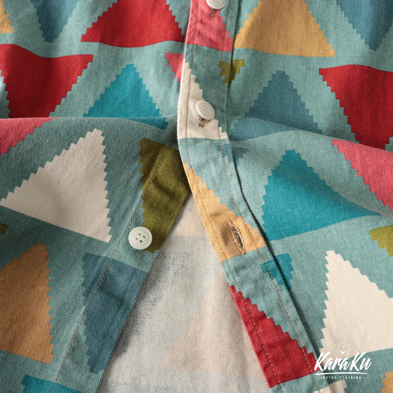 존재감 있는 긴팔 셔츠입니다! 상큼한 트라이앵글 무늬가 봄에 딱 맞는 디자인입니다. 여유있는 실루엣으로 스트레스 프리로 착용감이 뛰어납니다. 스트레이트 헴에 비해, 옷자락 주변에 여유가 있어 겹쳐 입어도 움직이기 편하며 무심코 눈길을 사로잡는 장난기 넘치는 아이템입니다. 귀여움과 장난기를 더한 아이템으로 전체적으로 고품질의 느낌을 연출합니다.