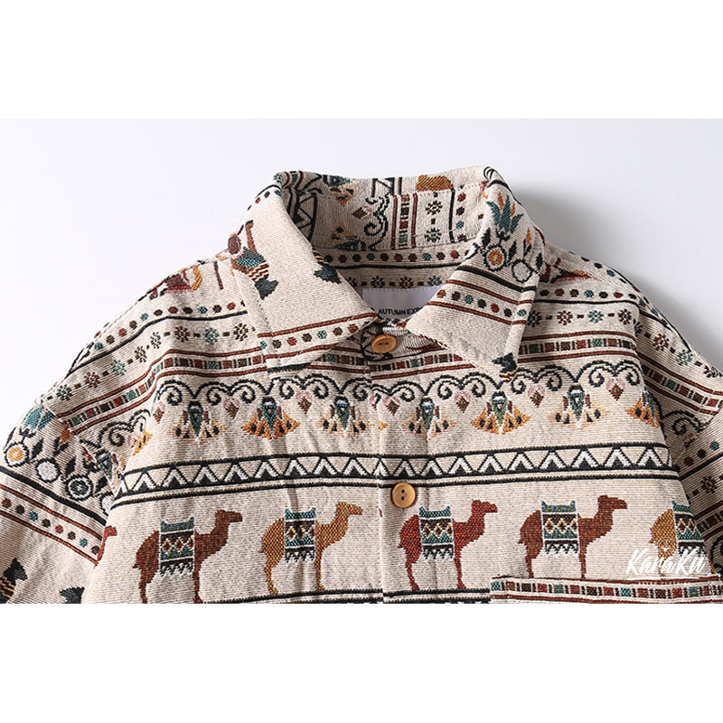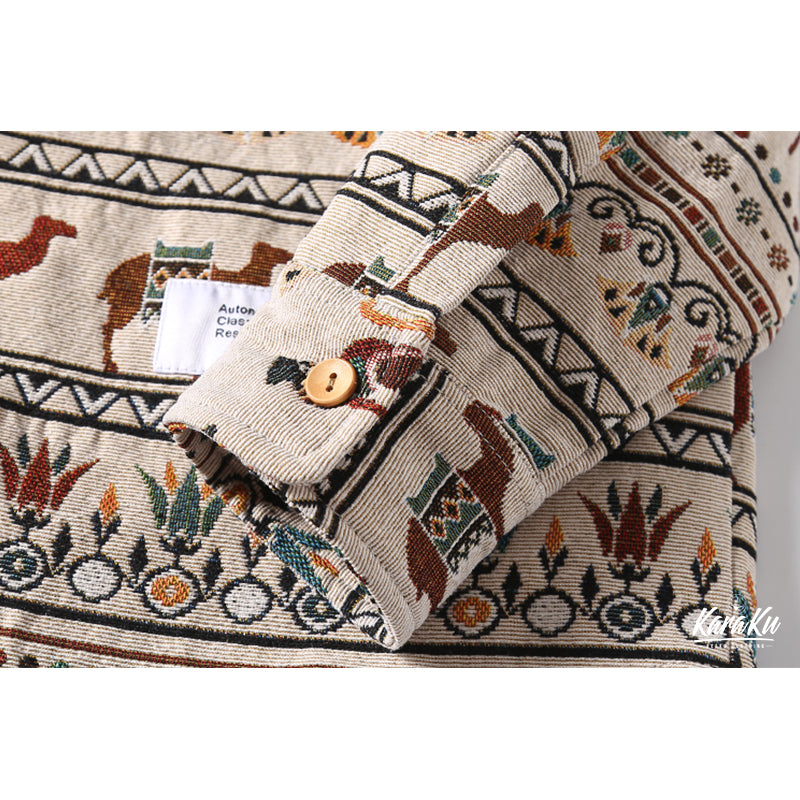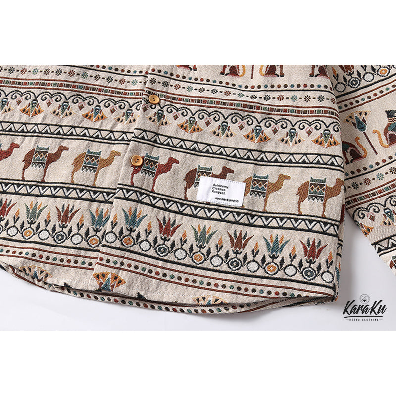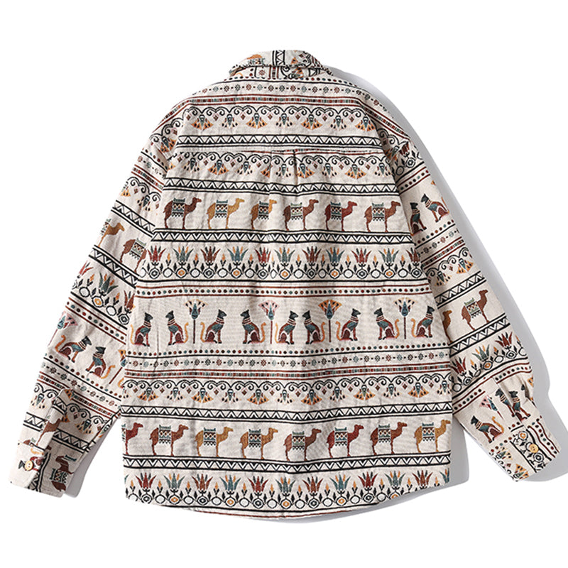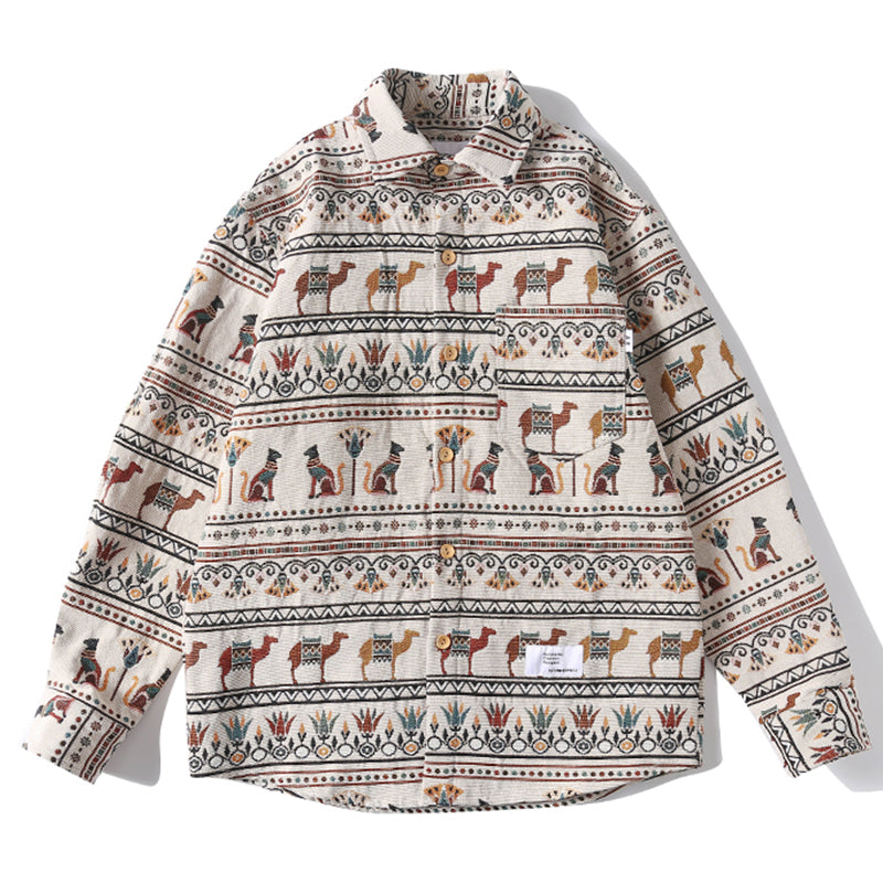 이집트 심벌 자가드무늬 롱슬리브셔츠