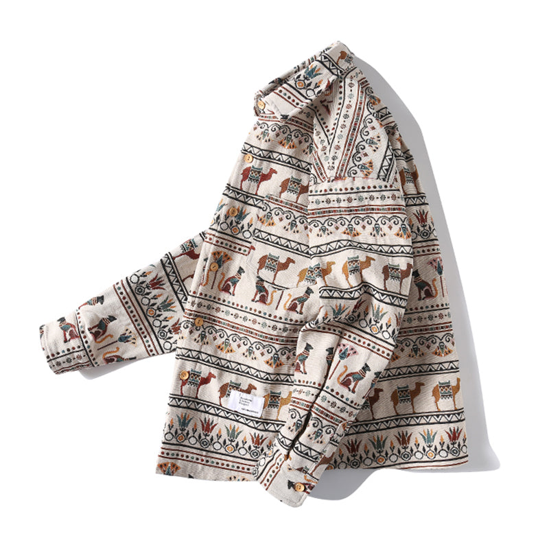 이집트의 상징으로서 보호나 신성함의 상징인 고양이와 생활이나 내구력을 상징하는 낙타의 모티브가 포함되어 있으며, 이들 모티브는 이집트의 문화나 역사에서 유래되어 신비한 매력을 가지고 있습니다. 넉넉한 핏감이 있어 움직이기 편하며 캐주얼하고 편안한 분위기를 연출합니다.