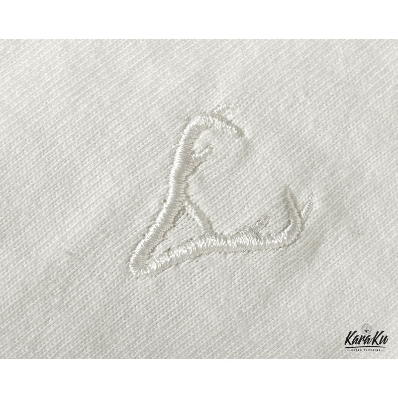 가슴 미니자수 코튼 헨리넥 긴팔 T셔츠