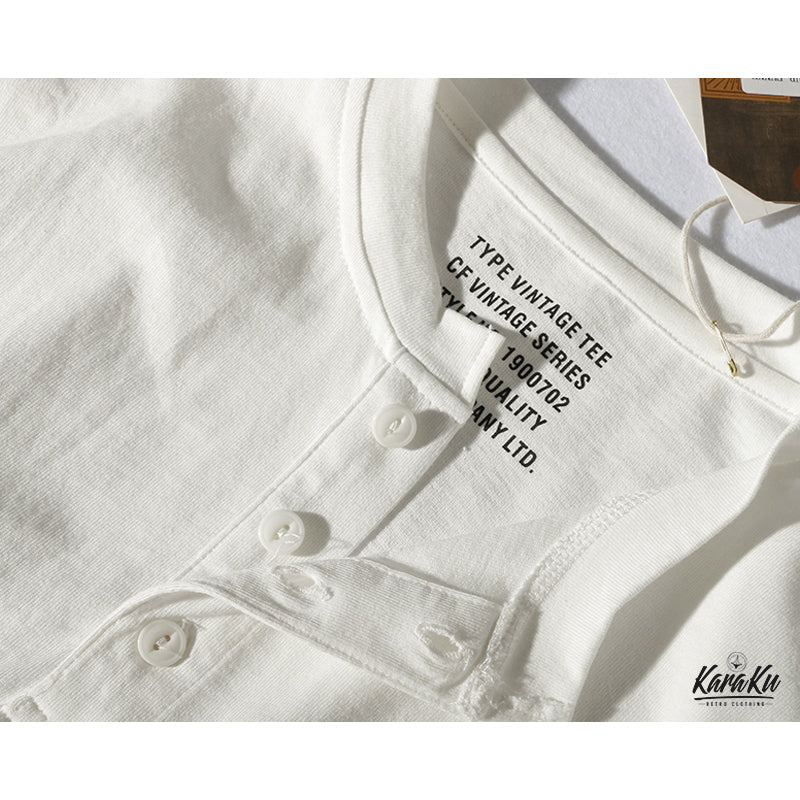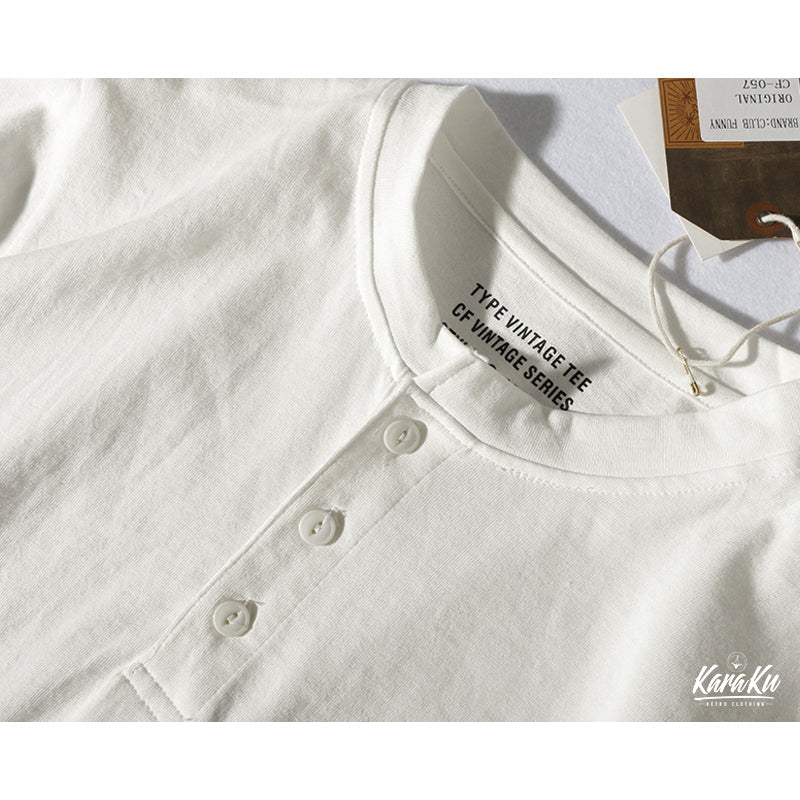 크루넥을 베이스로 목부분에 앞트임과 버튼을 맞춘 것이 헨리넥이며 영국의 역사적인 보트 레이스 헨리 로열 레가타에서 착용되었던 유니폼이 그 기원으로 알려져 있습니다.