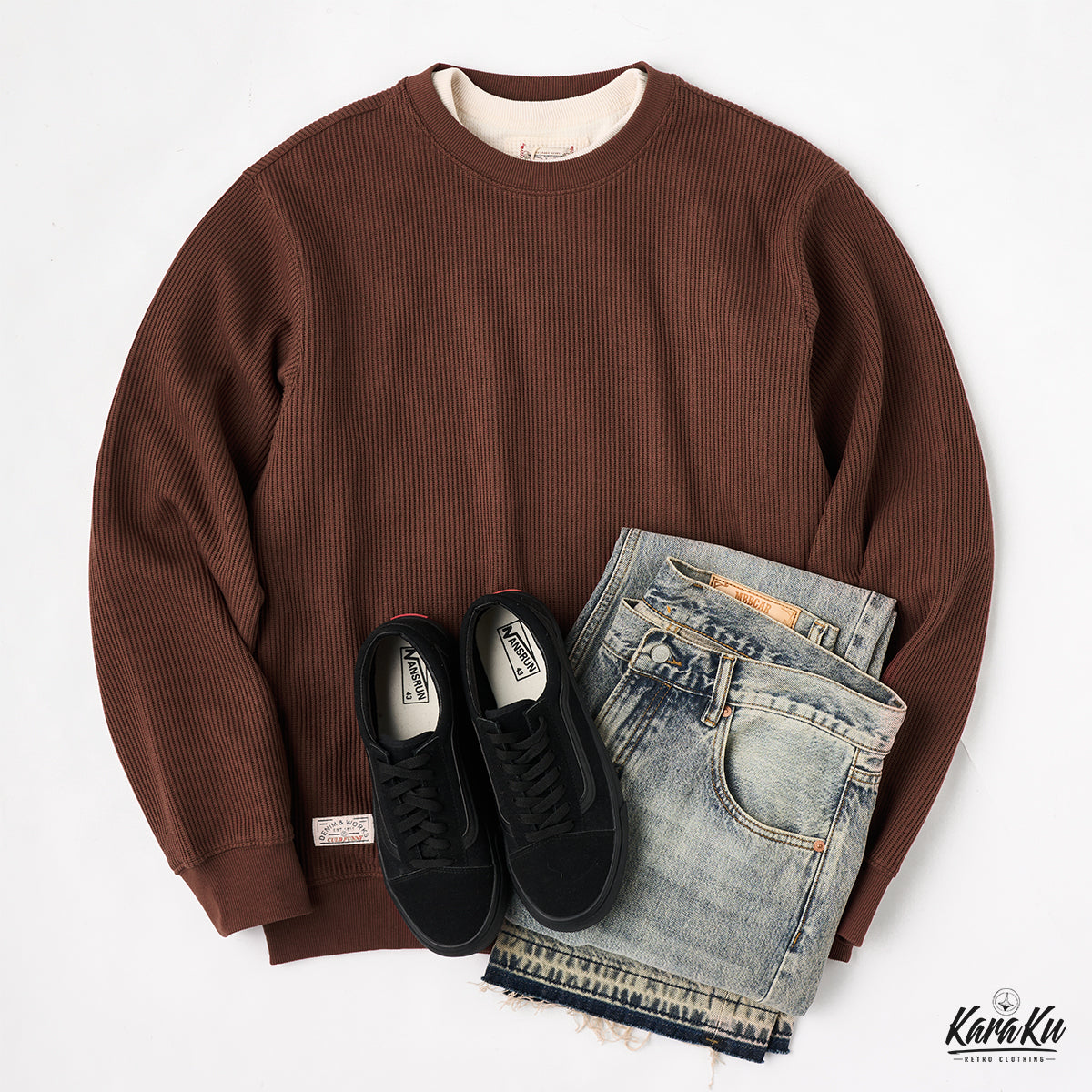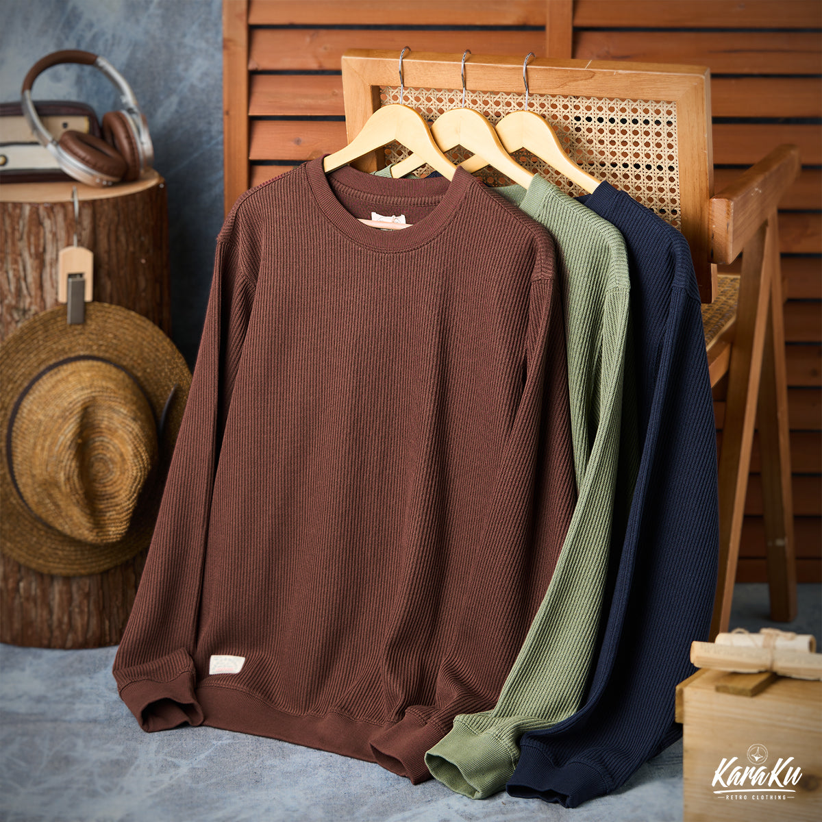 본 스웨트는 여유로운 실루엣과 드롭 숄더 디자인으로 편안한 착용감을 제공하며, 촘촘한 요철 감으로 세련된 느낌을 줍니다. 코튼/폴리에스터 혼합 원단으로 부드럽고 견고하며, 남녀공용은 가능하고 다양한 하의와 잘 어울립니다.
