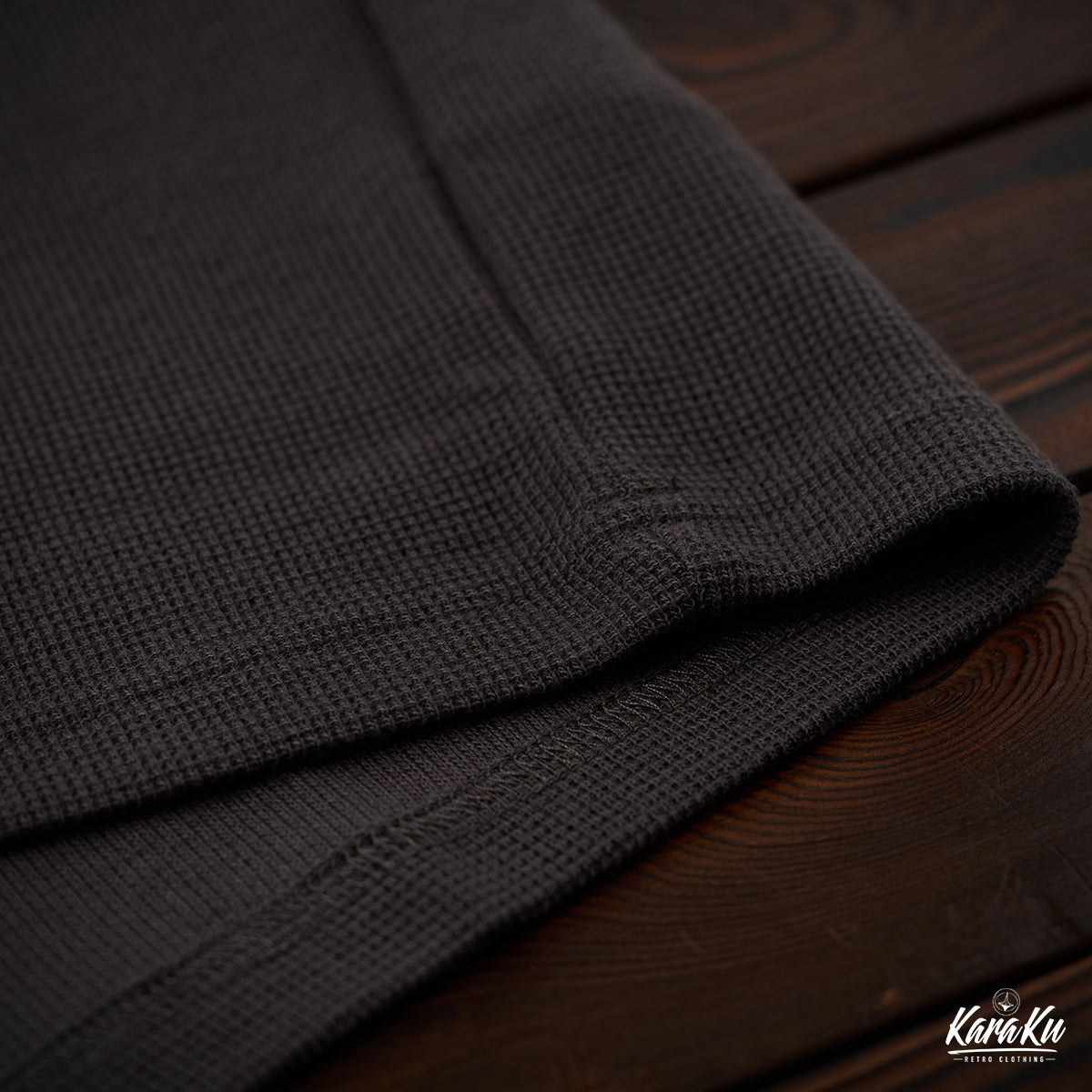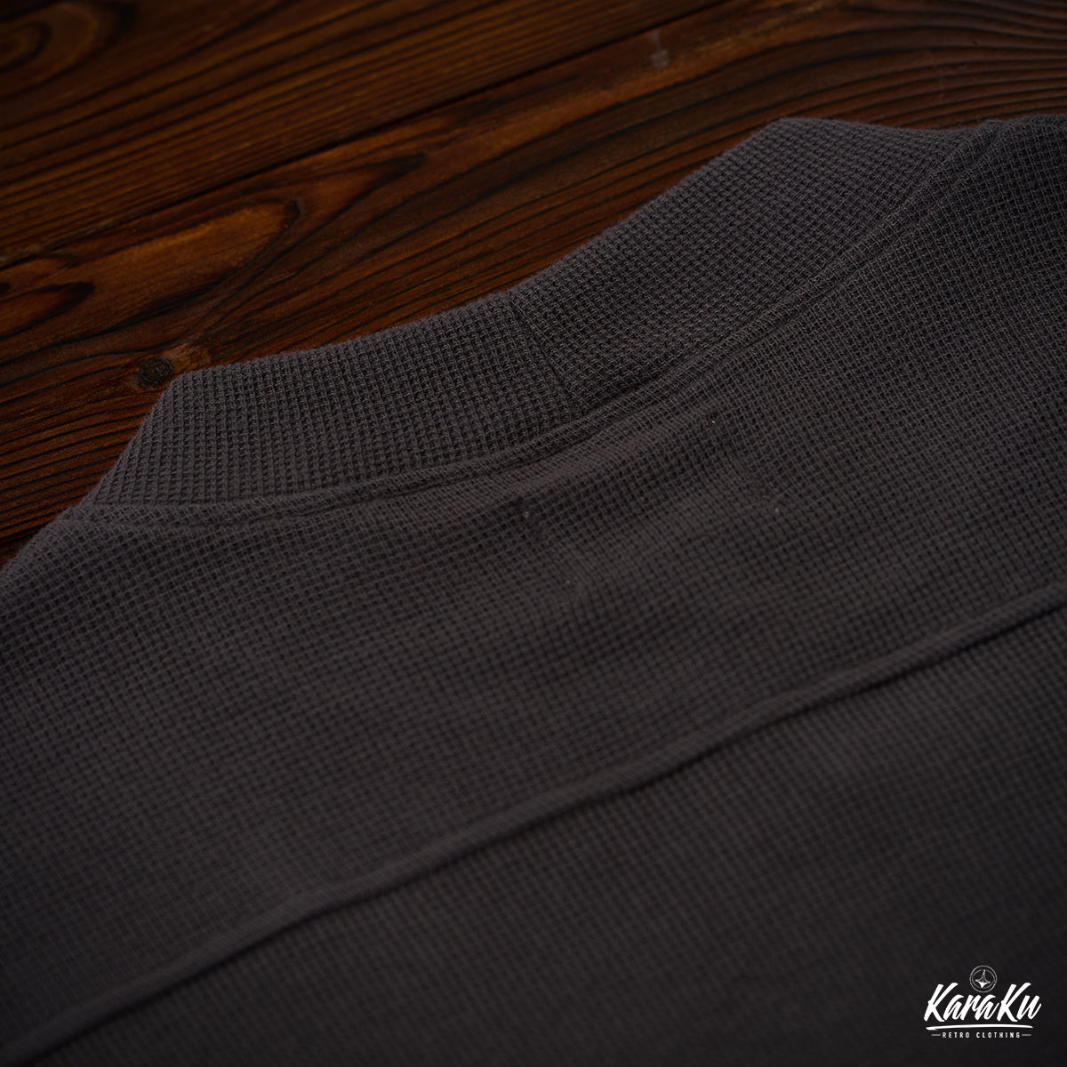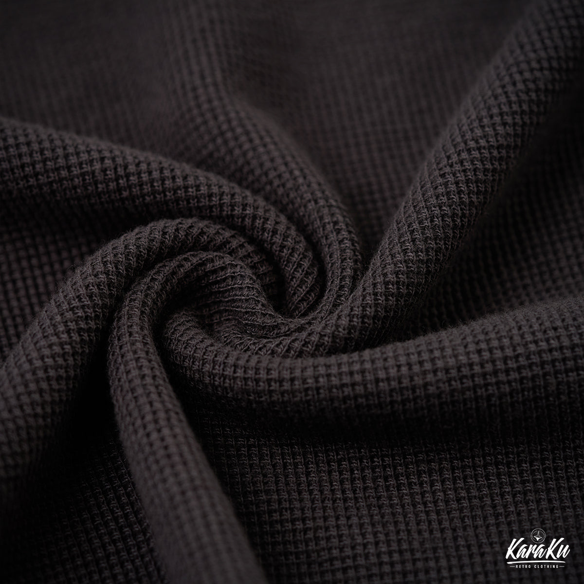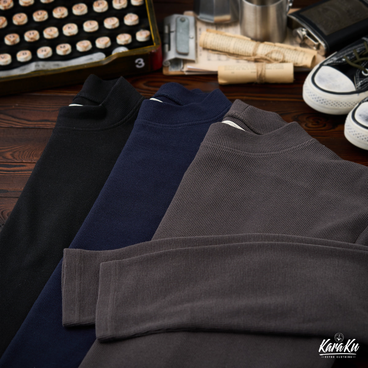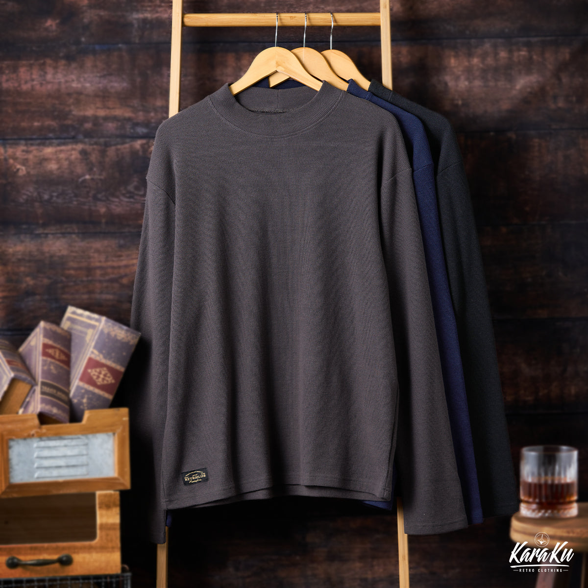 와플 짜임의 반 터틀넥 롱 티셔츠로 여유로운 오버핏과 부드러운 혼합 소재가 특징입니다. 남녀 공용으로 다양한 스타일링에 어울립니다.