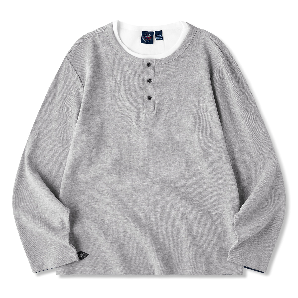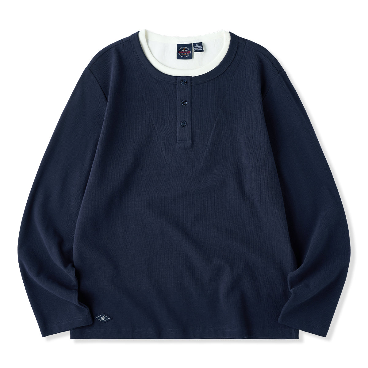2컬러 미니 와플 페이크 레이어드 헨리넥 긴팔 티셔츠