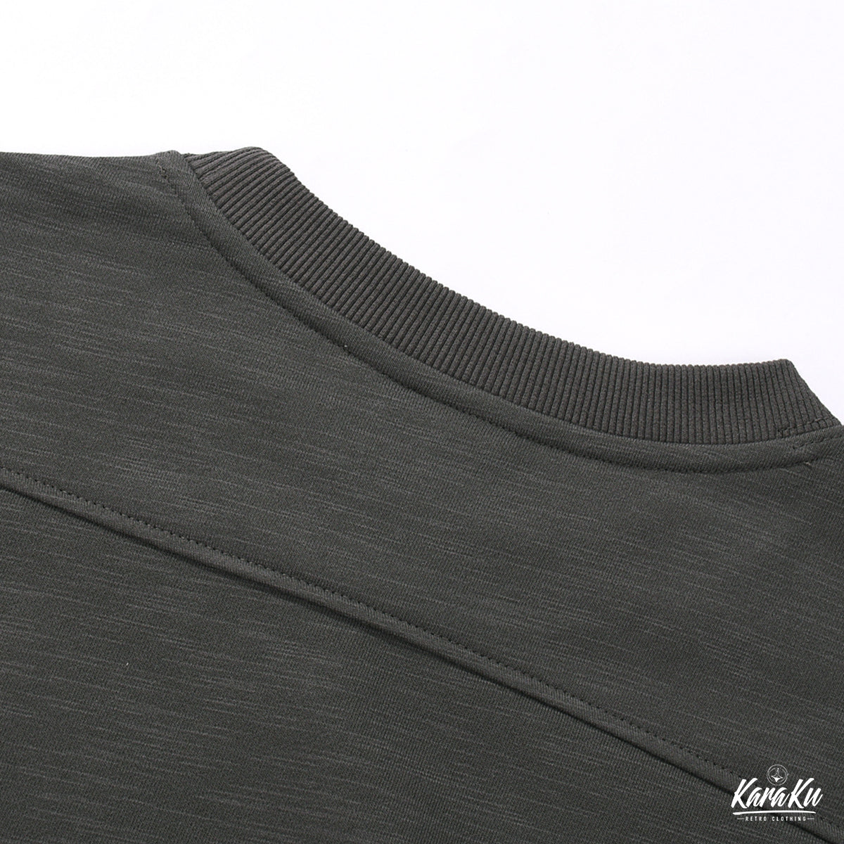 어깨 솔기가 어깨 끝보다 아래에 위치하여 넉넉한 실루엣 제공하며 편안한 착용감과 캐주얼함 강조합니다.