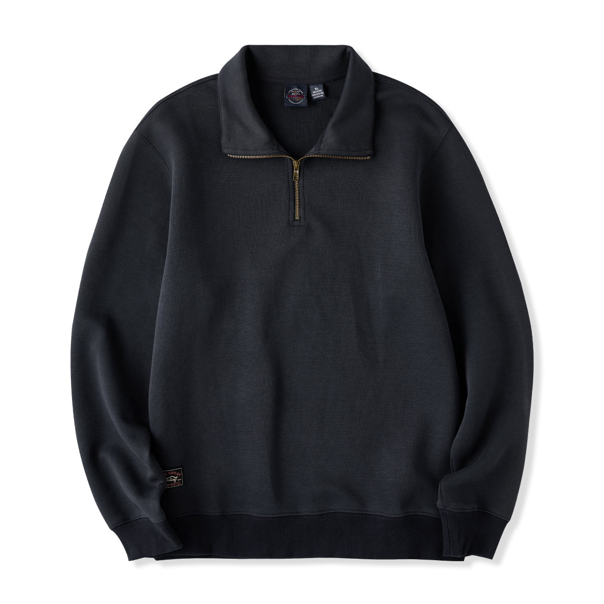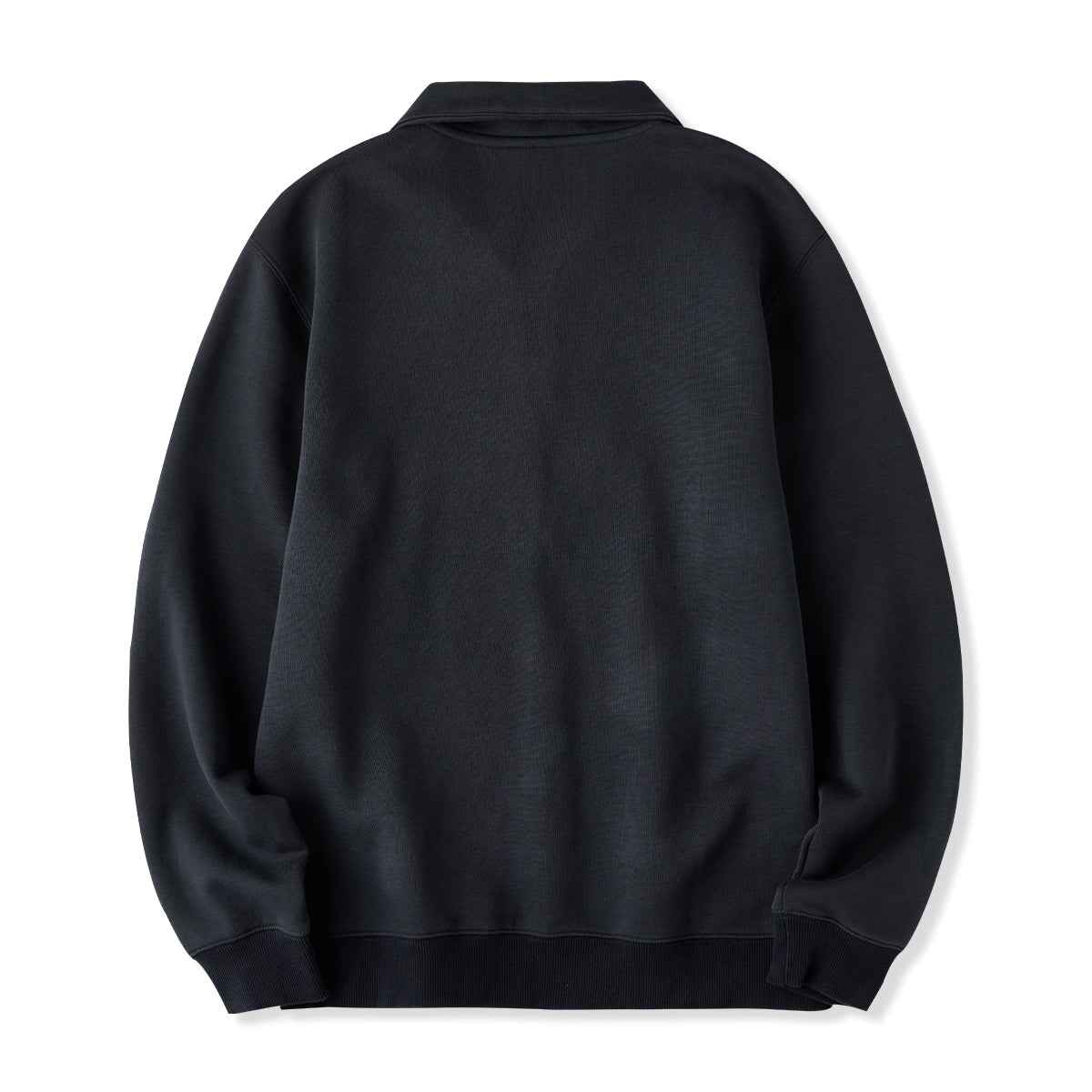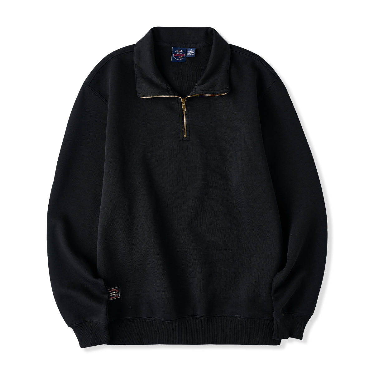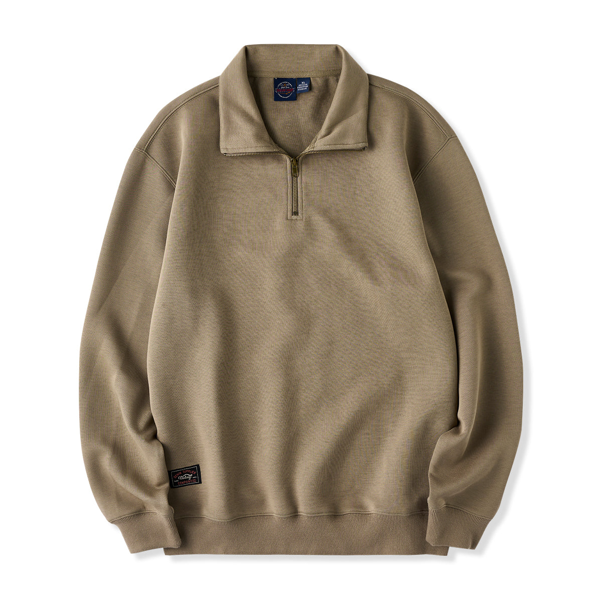 앤티크 브론즈 하프집업 디테일이 돋보이는 풀오버 스웨트. 심플하면서도 빈티지 감성을 살린 디자인입니다.