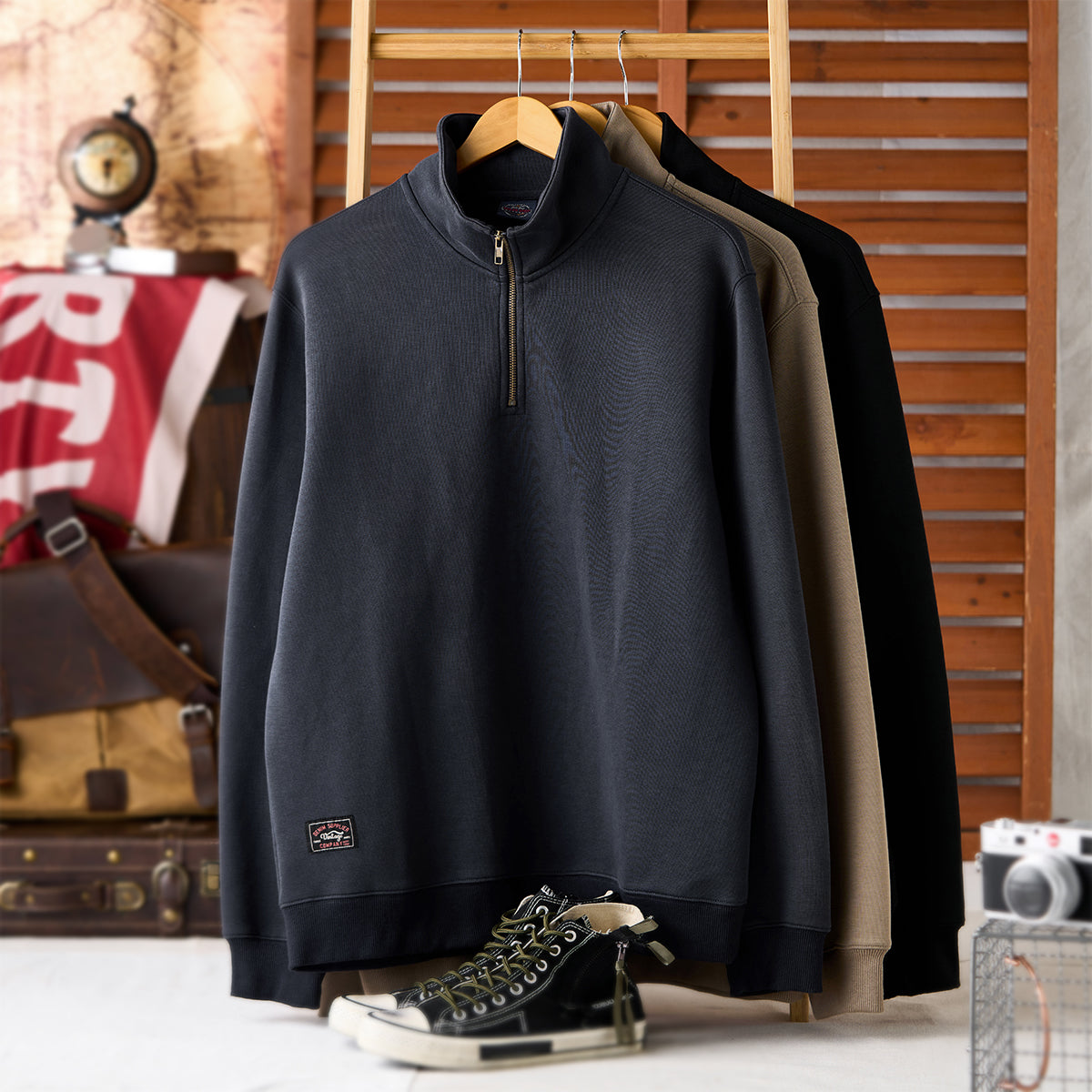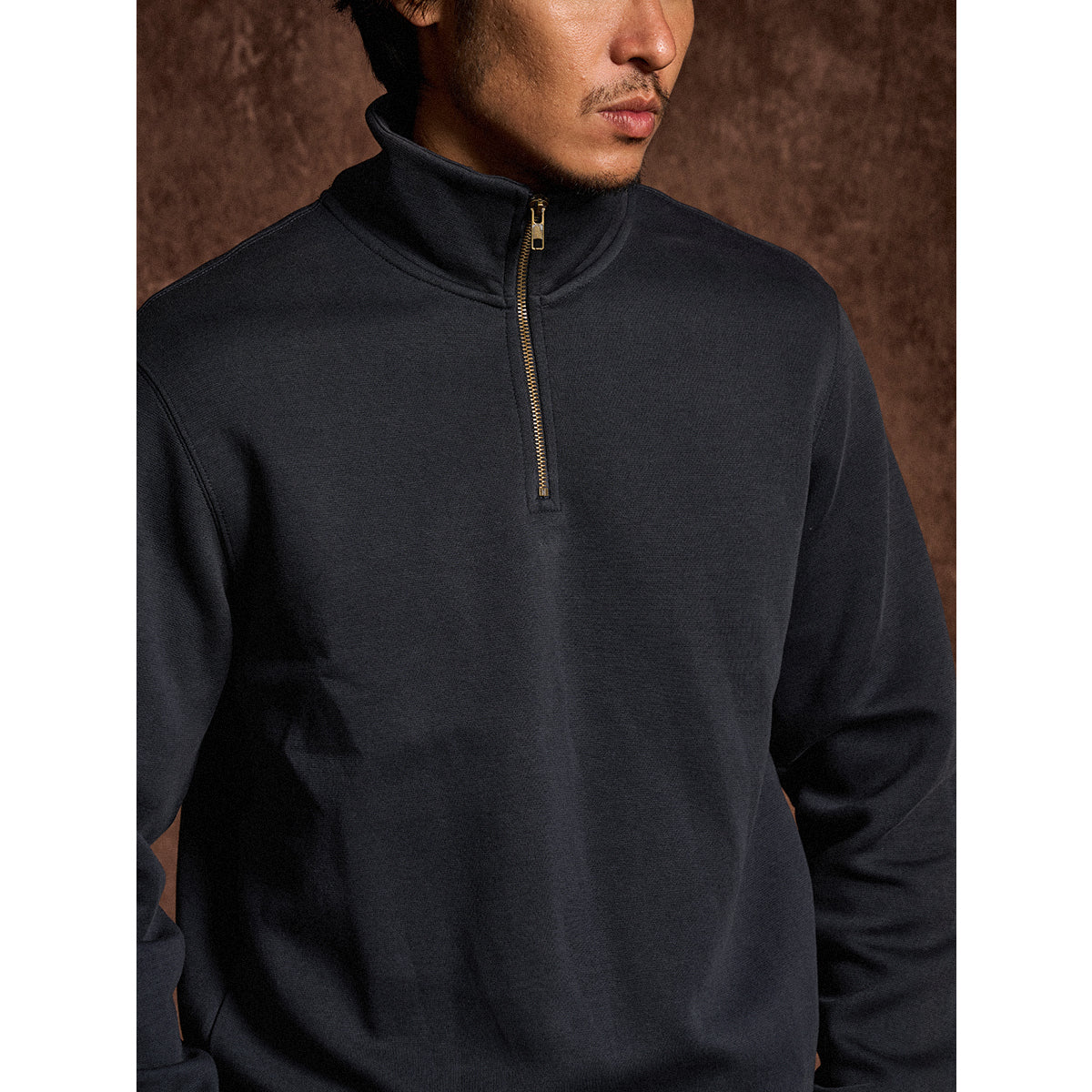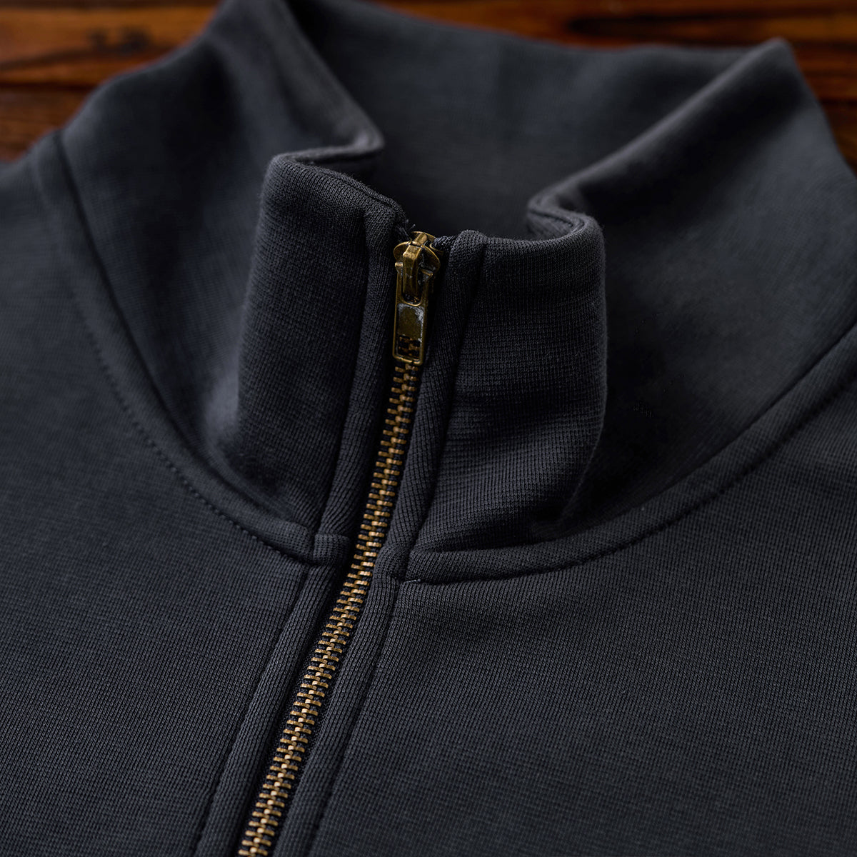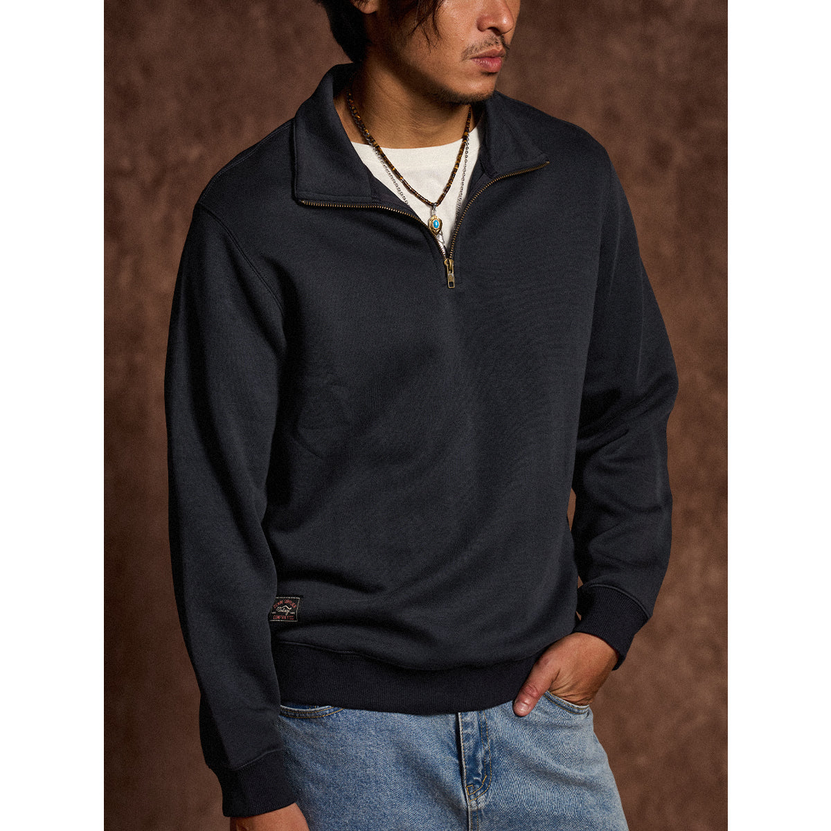 앤티크 브론즈 하프집업 디테일이 돋보이는 풀오버 스웨트. 심플하면서도 빈티지 감성을 살린 디자인입니다.