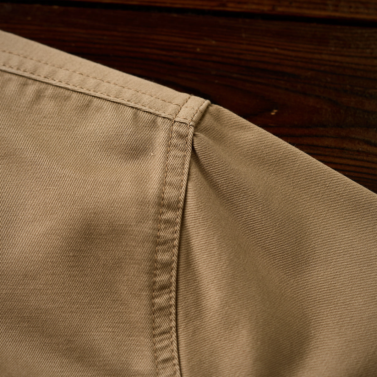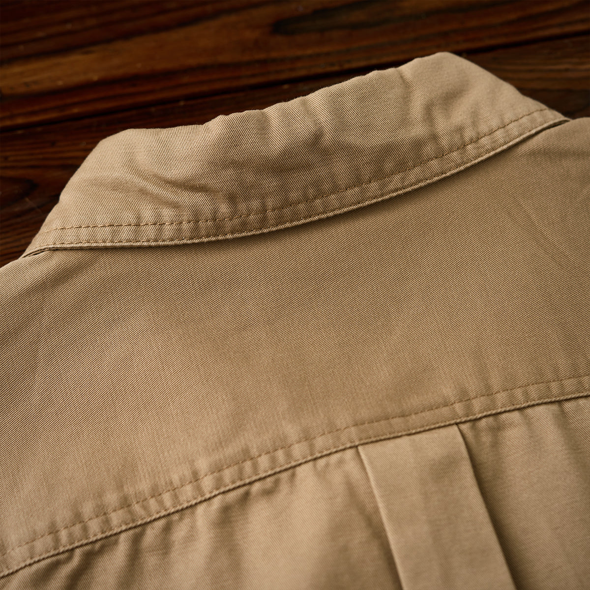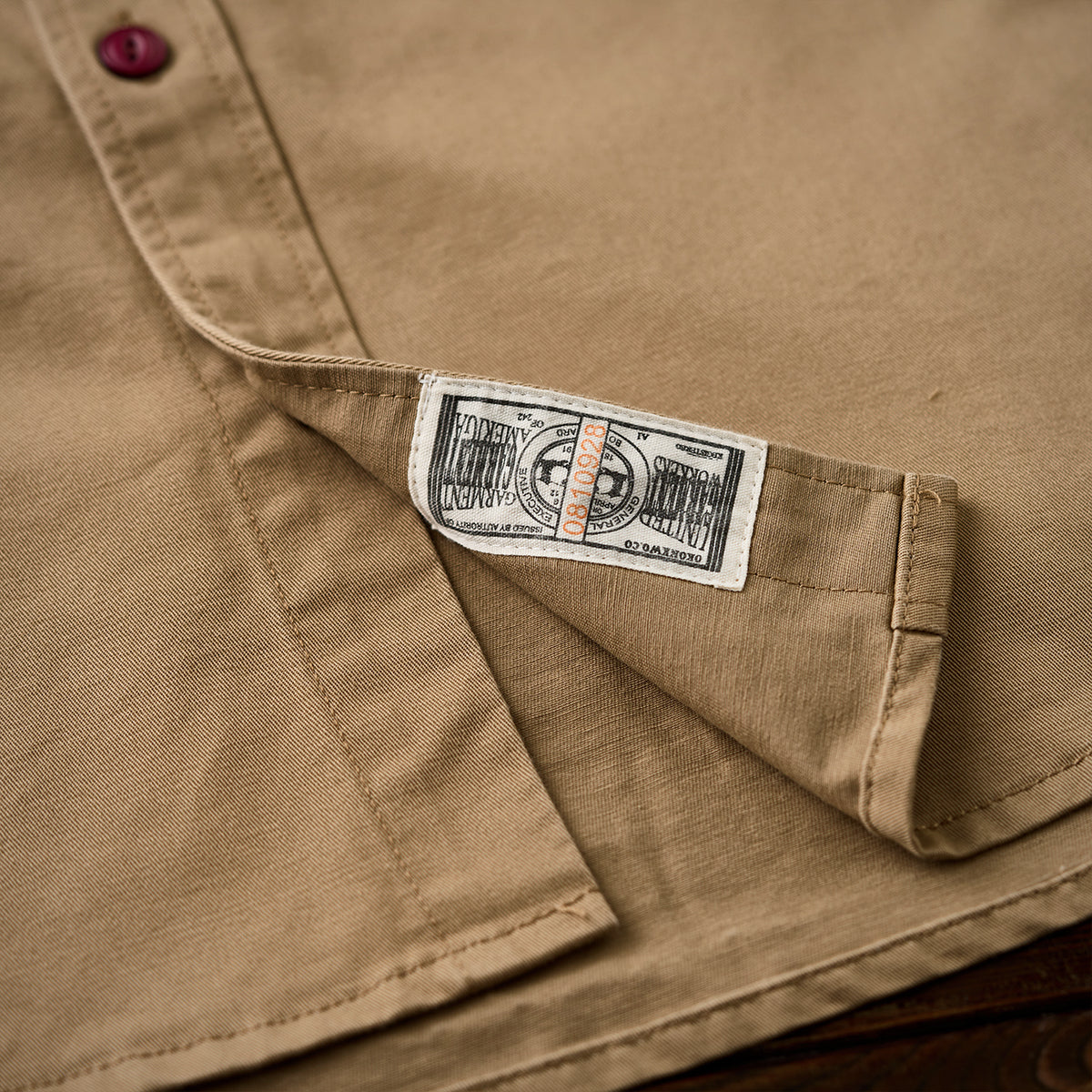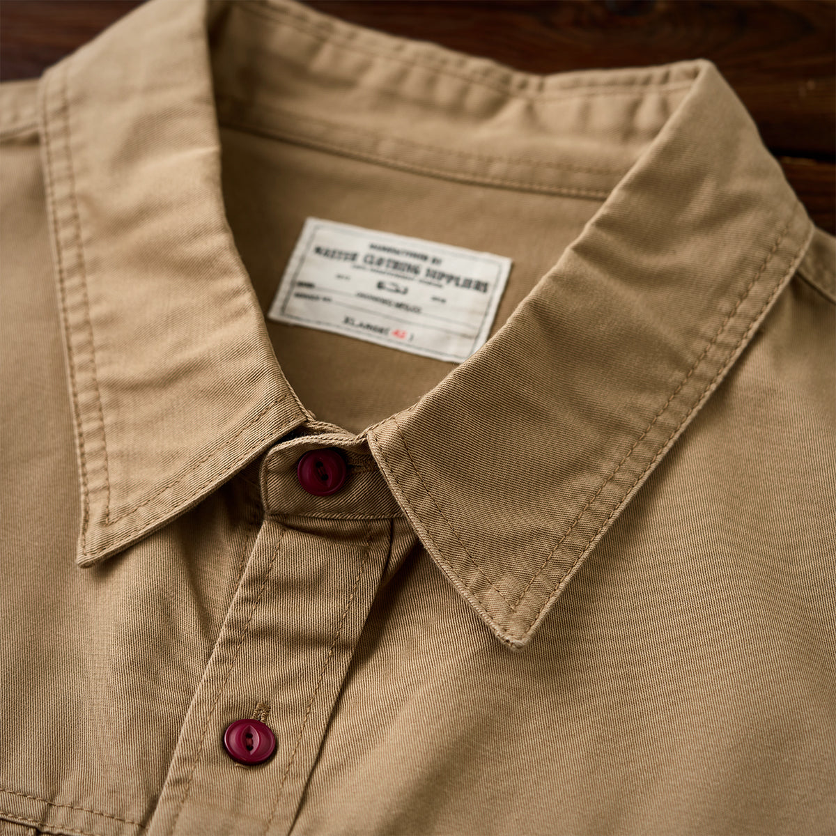 다크 레드 버튼과 플랩 포켓, 세로 스티치 디테일로 심플하면서도 개성과 실용성을 살린 워크 셔츠입니다.