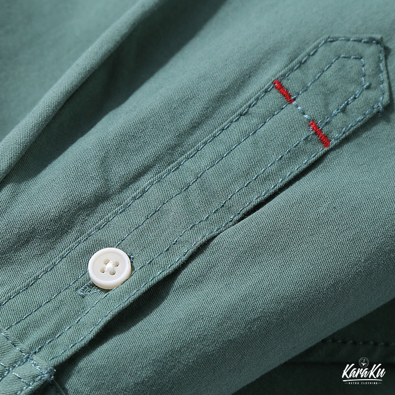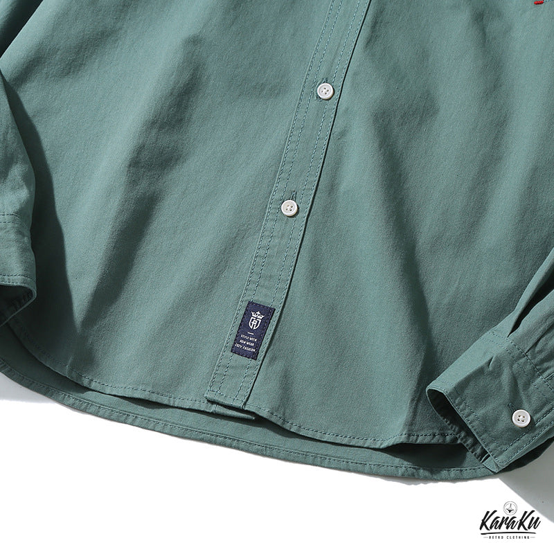 높은 편의 코튼 원단을 사용한 무지 긴팔 셔츠입니다. 세련된 무지 디자인으로 품위가 있어 고급스러움까지 느껴집니다. 가슴포켓 심과 소맷단 부분의 고정 스티치를 레드 실로 바꿔 포인트로 심플한 무지 셔츠에 조금만 맛을 냅니다.