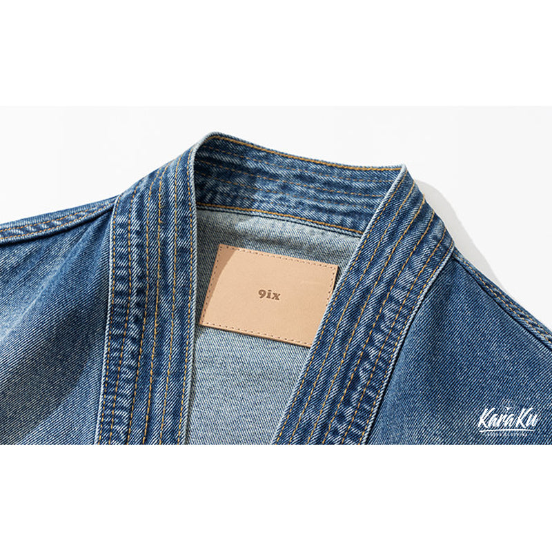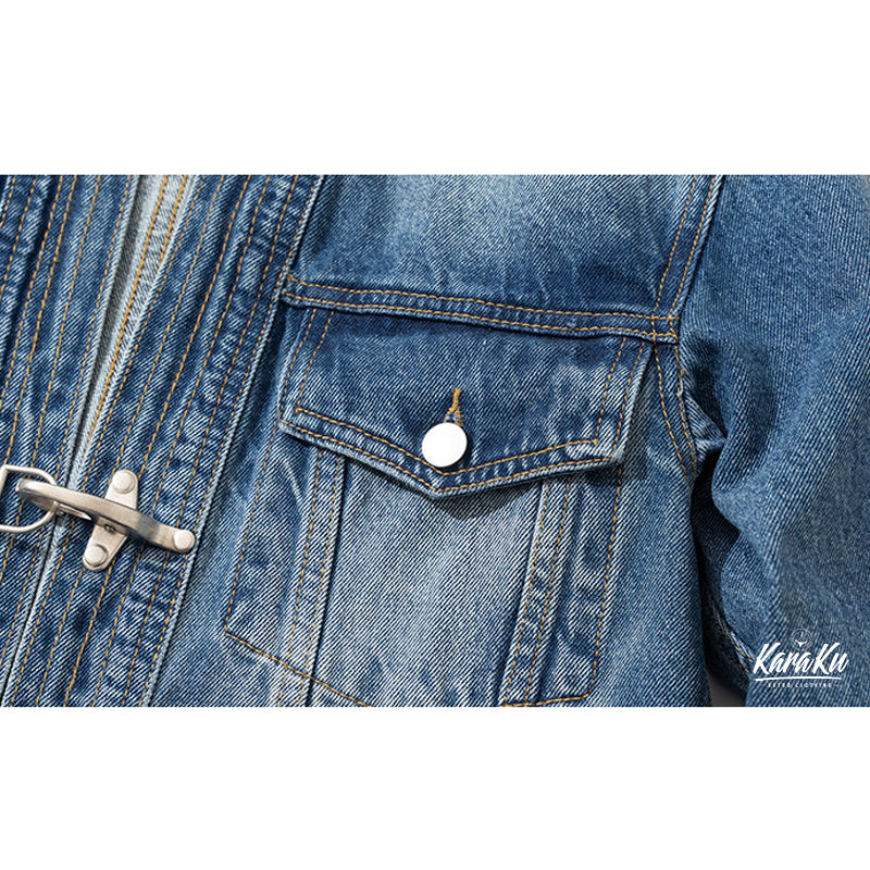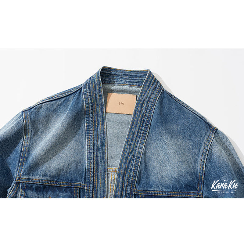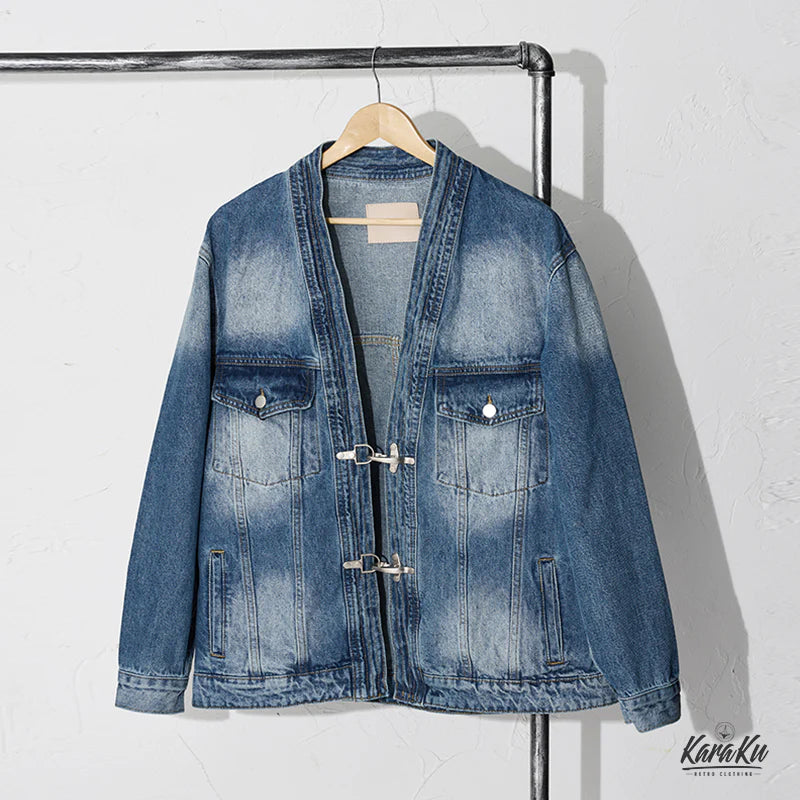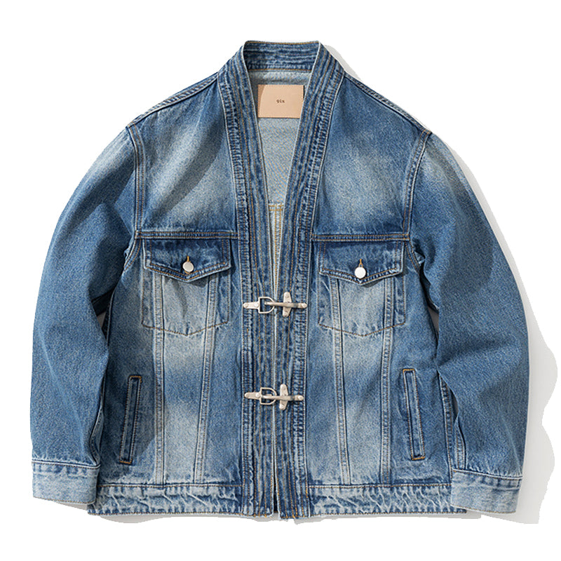 후크단추 한텐(半纏) 개량 워싱가공 청자켓