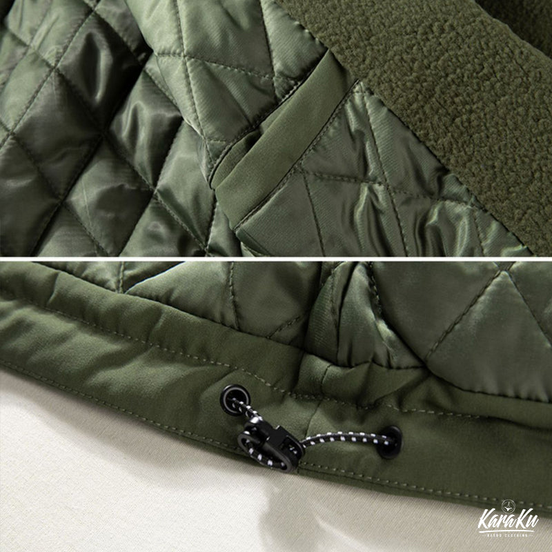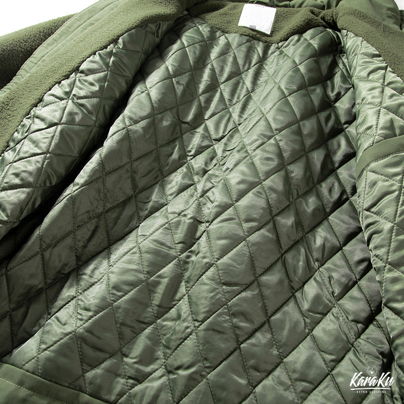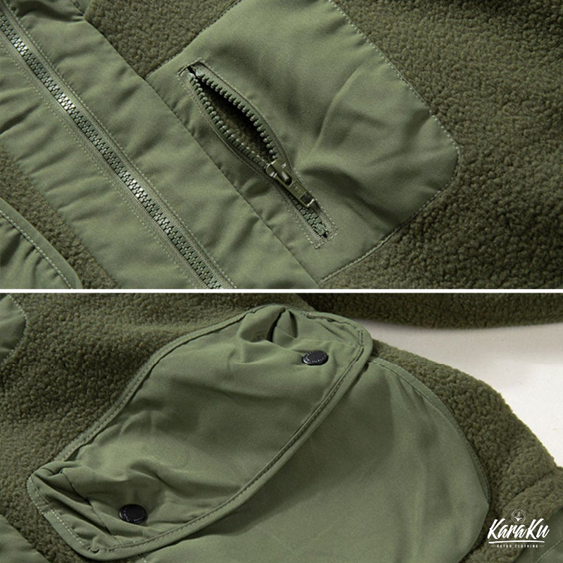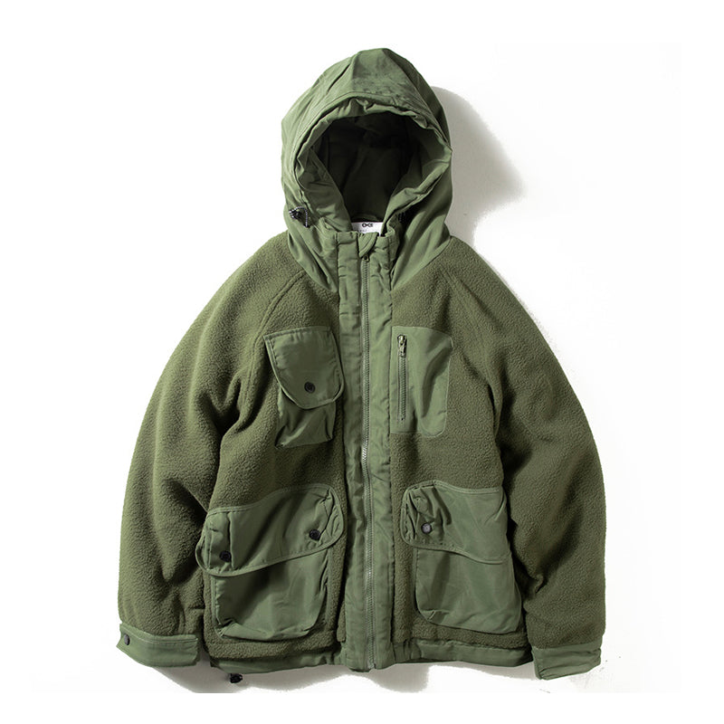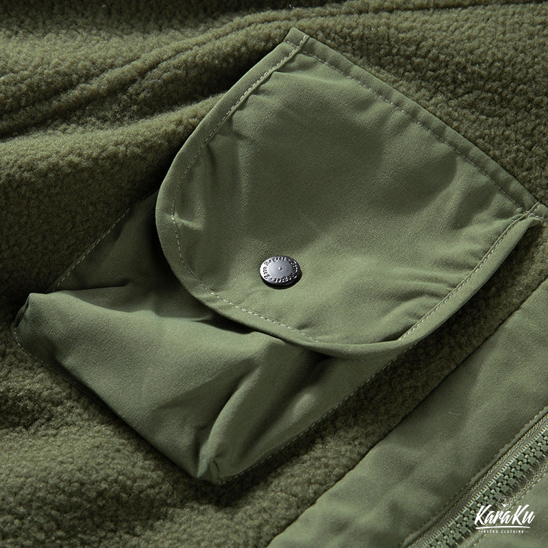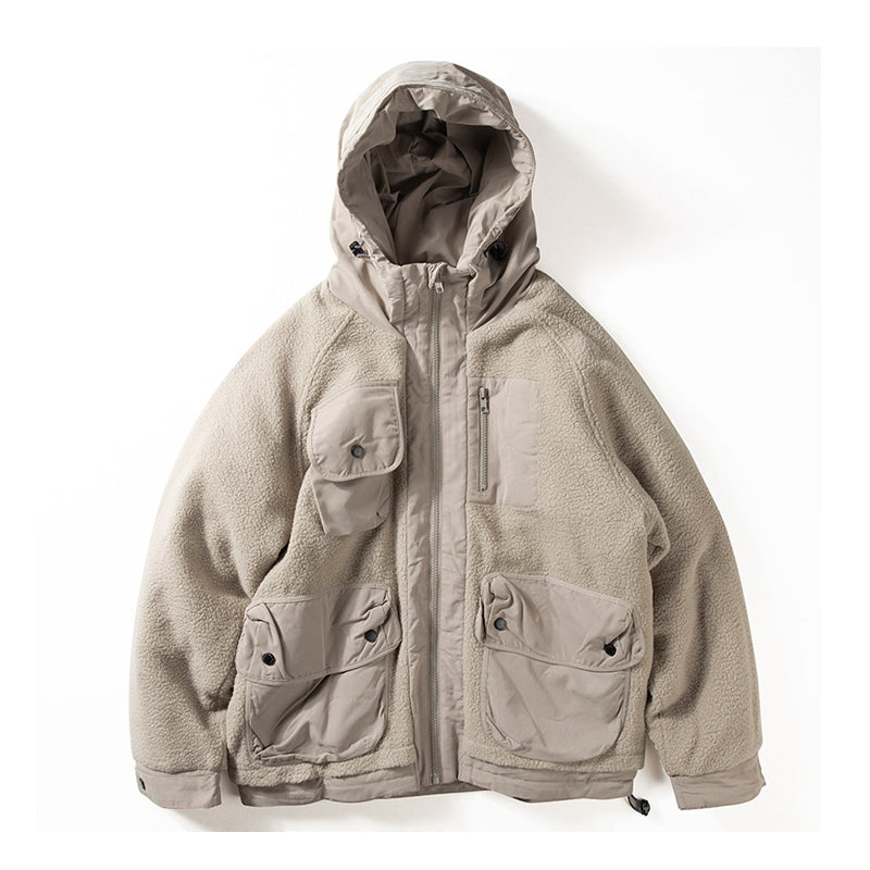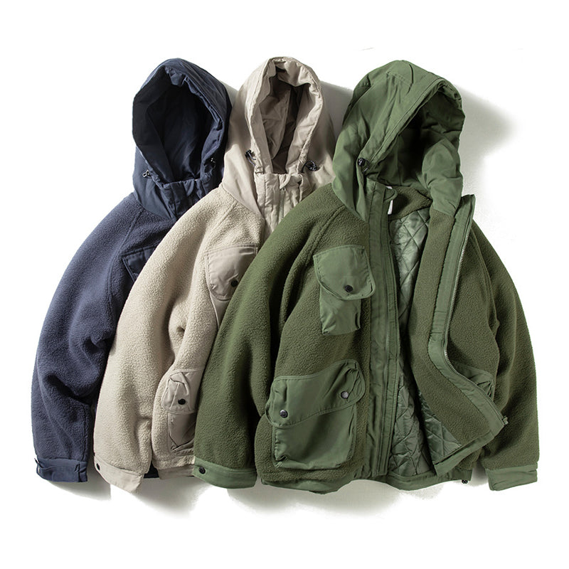 후리스 원단과 다른 소재를 믹스해 시선을 끄는 디자인의 아이템입니다. 메인 부분에는 부드럽고 따뜻한 후리스 원단을 사용해 내구성과 방풍성을 높였습니다. 네 개의 포켓으로 소지품 수납이 편리하며, 후드가 있어 기온에 따라 방한용으로 착용할 수 있습니다. 안감의 퀼팅 솜이 보온성을 더해 추운 계절에도 따뜻하게 입을 수 있습니다.