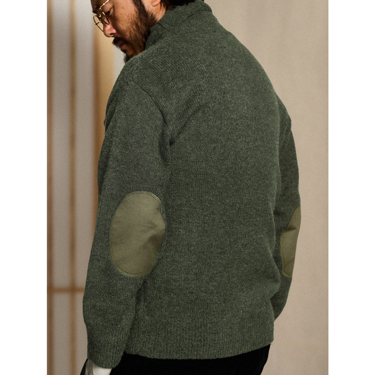 팔꿈치 패치가 색감 포인트와 내구성을 더해주고, 소맷단과 밑단은 골지 짜임으로 바람을 막아줍니다. 모헤어 소재는 따뜻한 공기를 머금어 보온성이 뛰어나며, 촉감이 부드럽고 자극 없이 편안합니다.