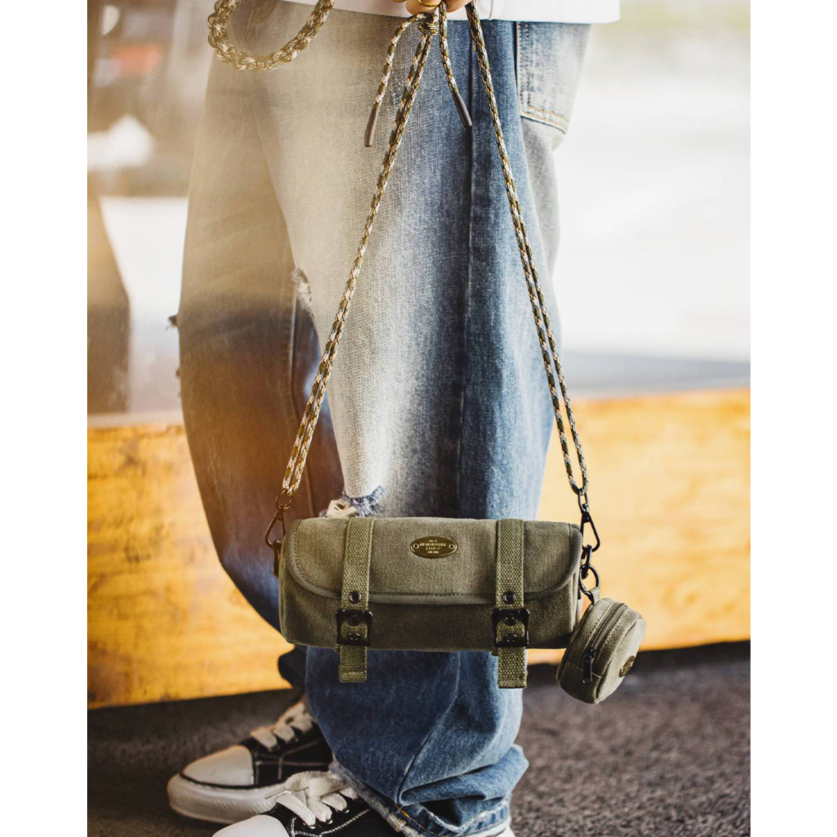 분리형 서클백 & 꼬임 로프 스트랩 캔버스 배럴백