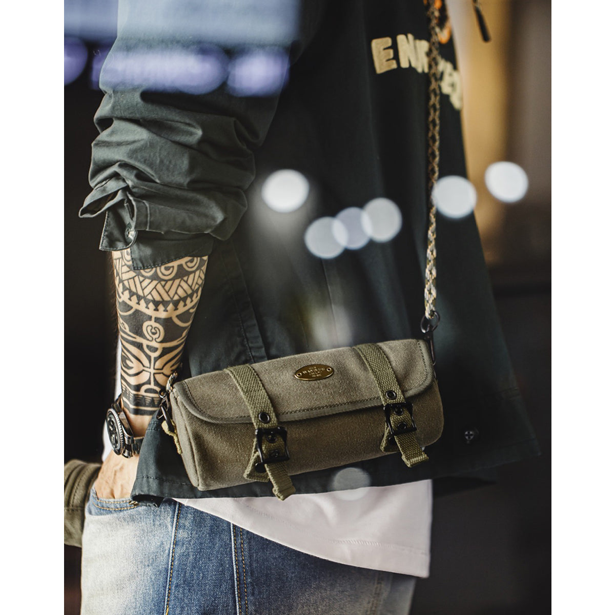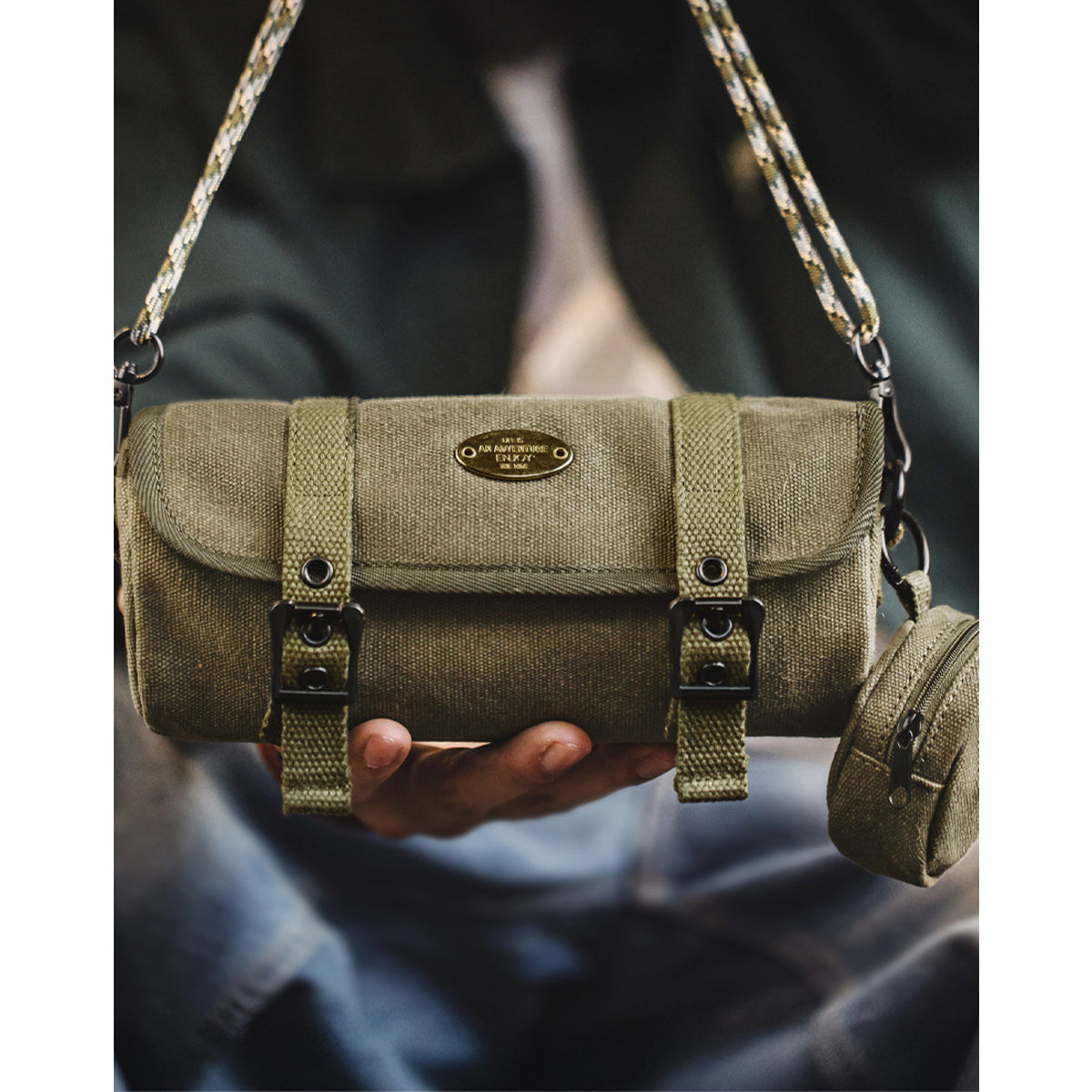 아웃도어 감성의 꼬임 디테일이 돋보이며, 어깨에 걸치거나 크로스로 착용할 수 있습니다.