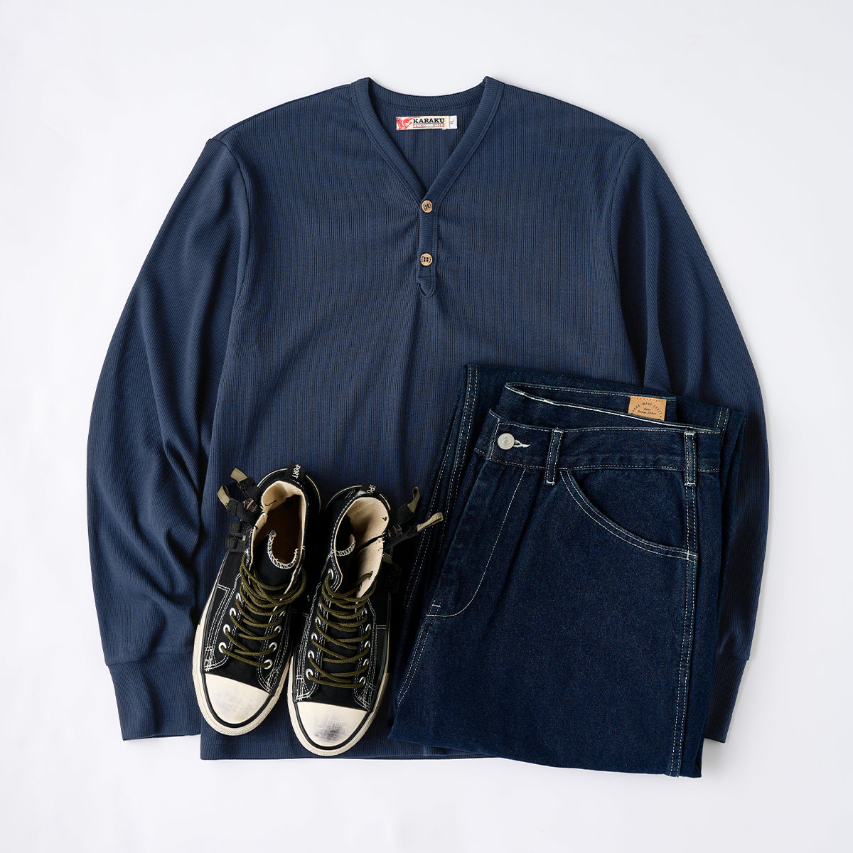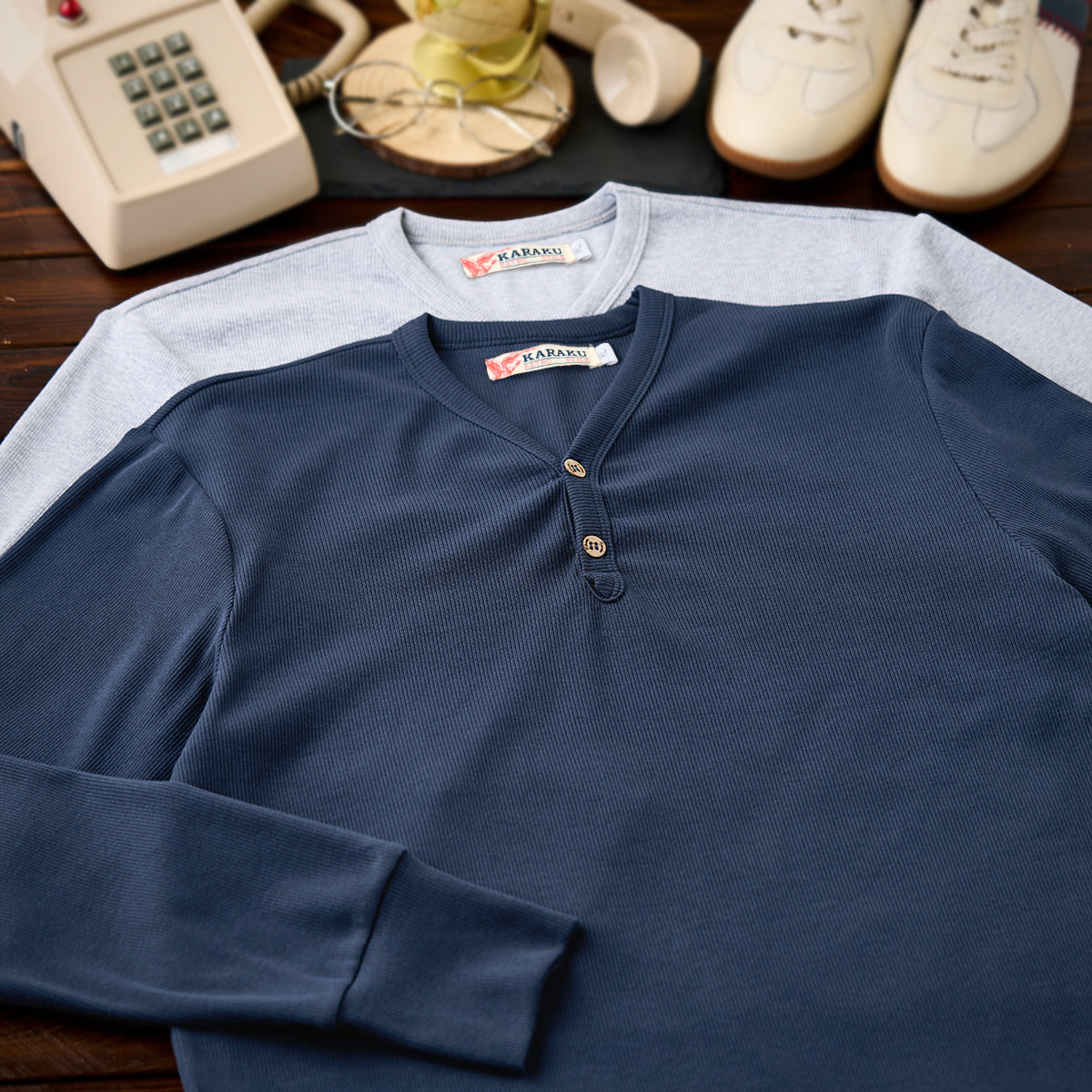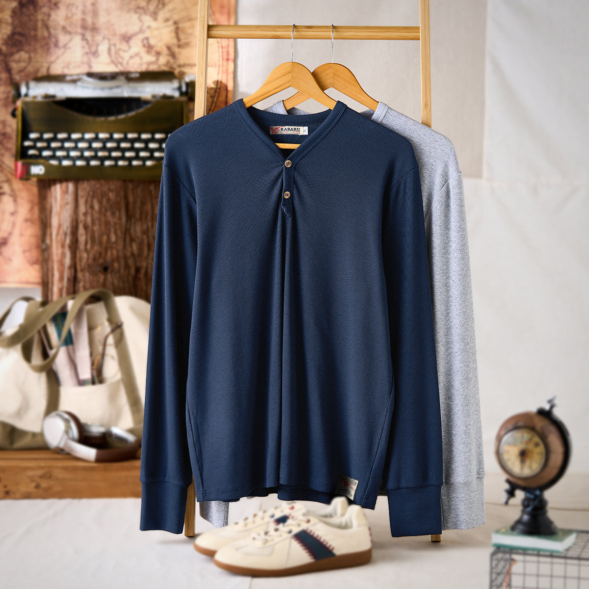 250g 헤비웨이트 헨리넥 단색 긴팔 티셔츠