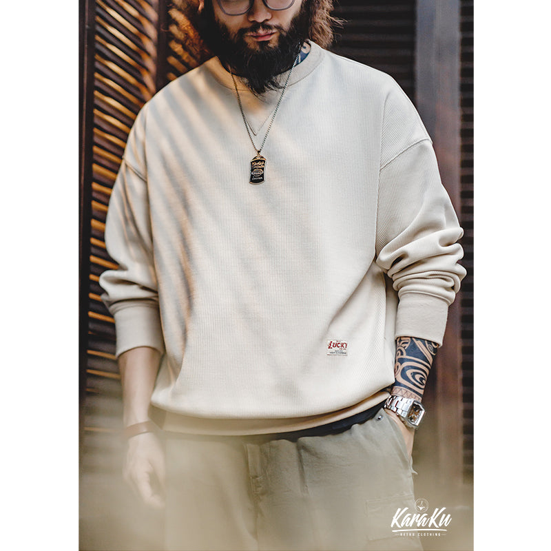 캐주얼한 맨투맨에 부드러운 분위기를 더해줌.