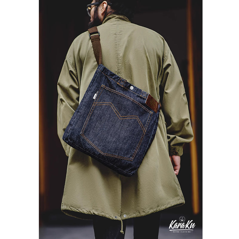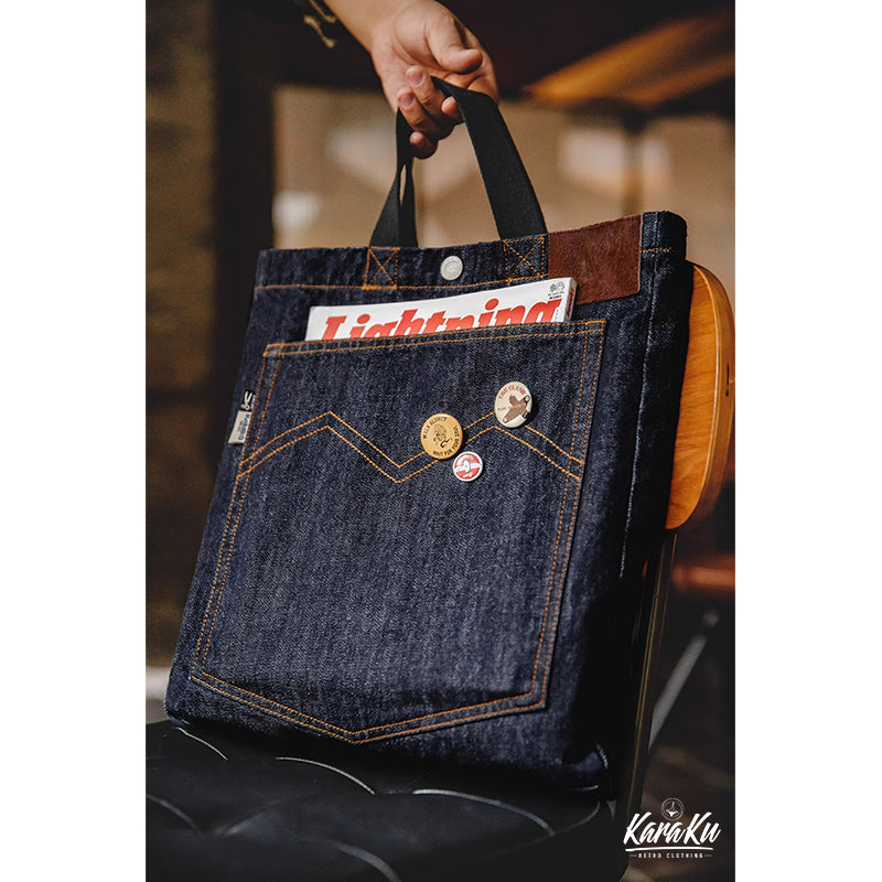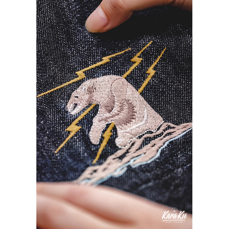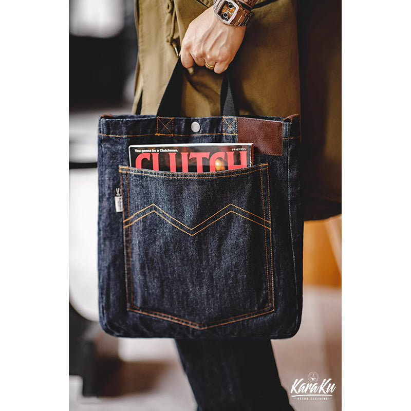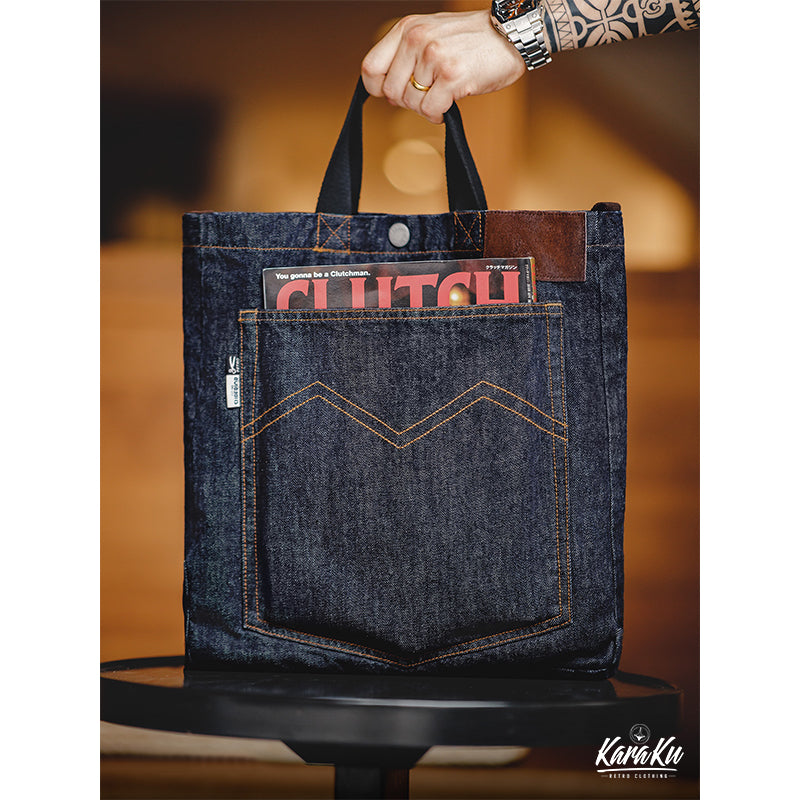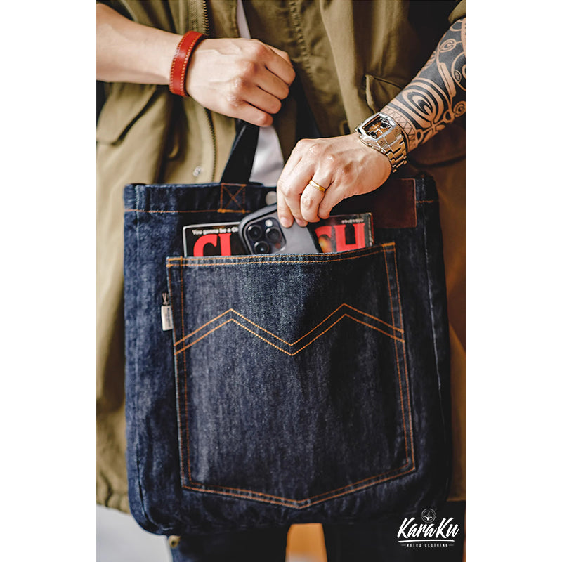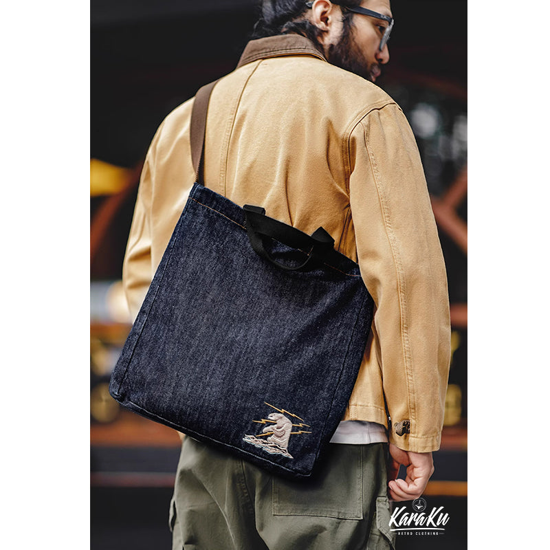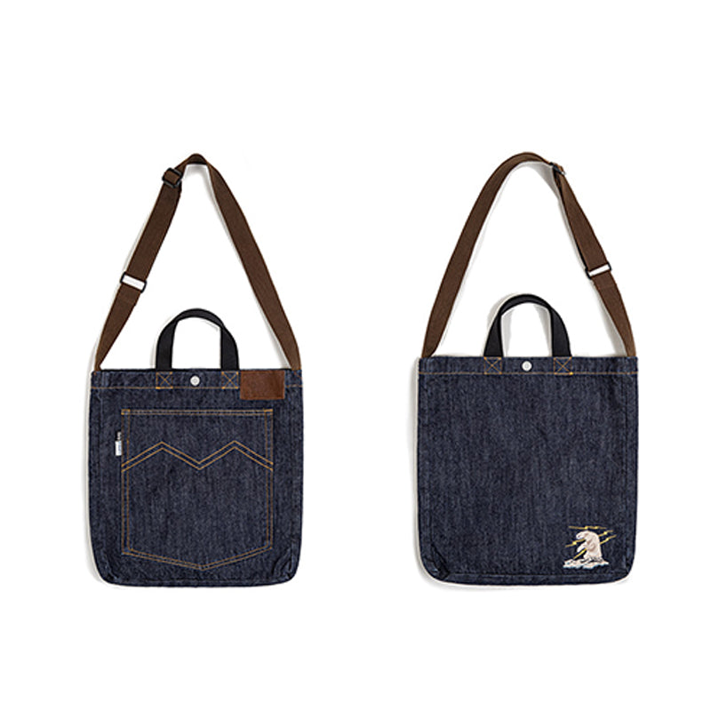 요코스카(横須賀)풍 시로쿠마 자수 2way 손가방 숄더 데님백