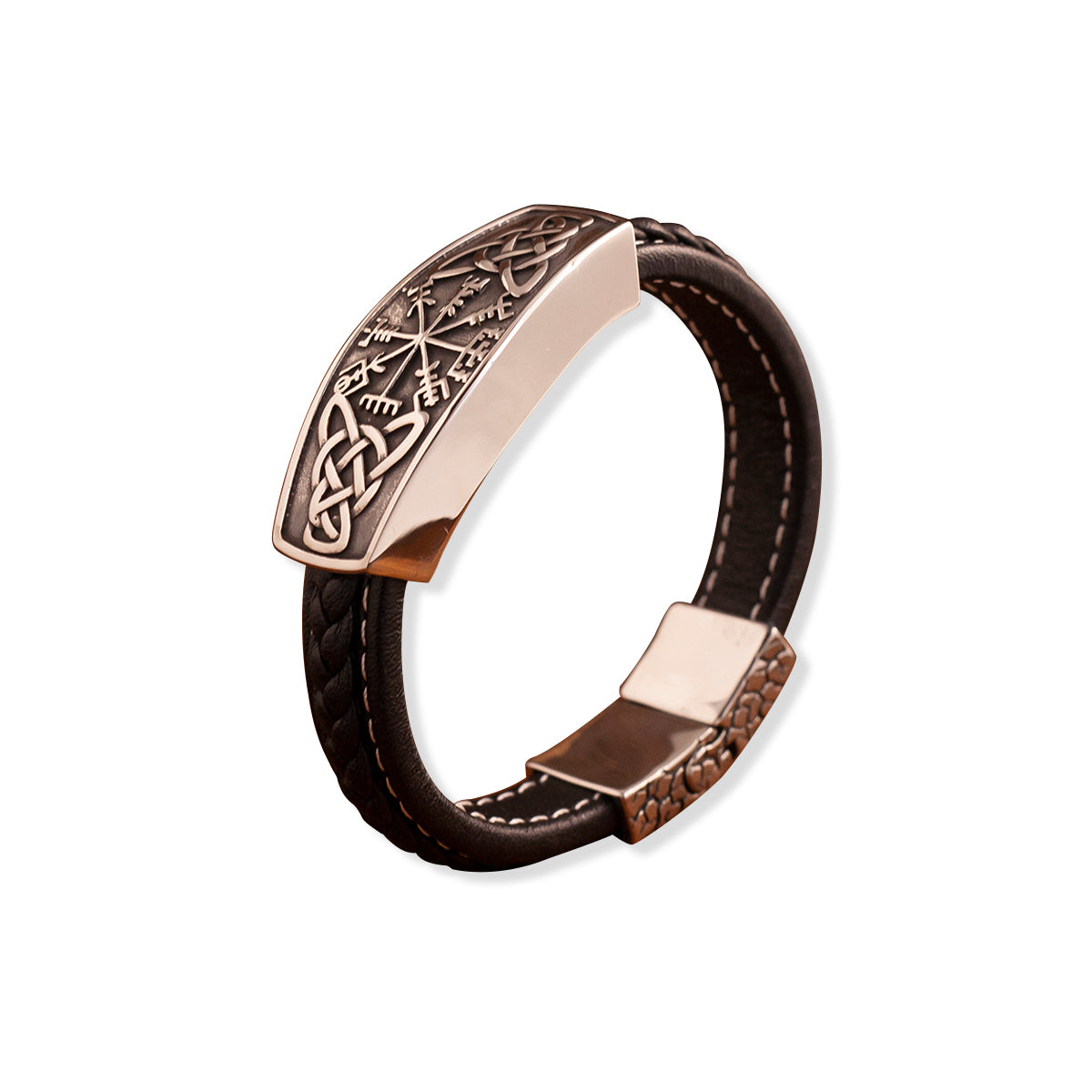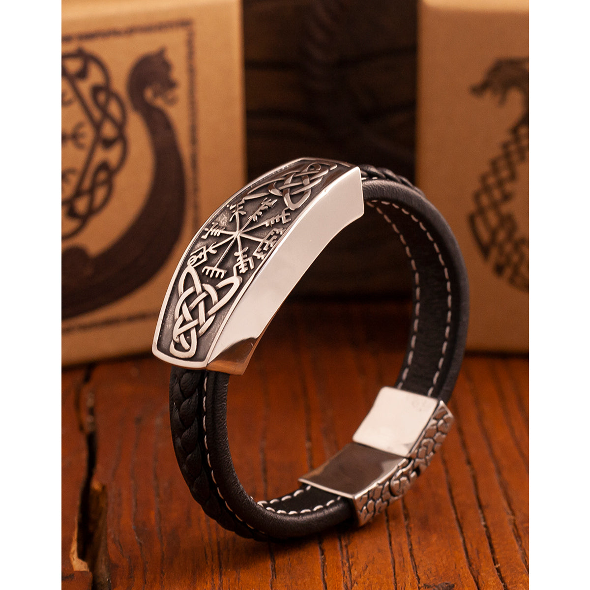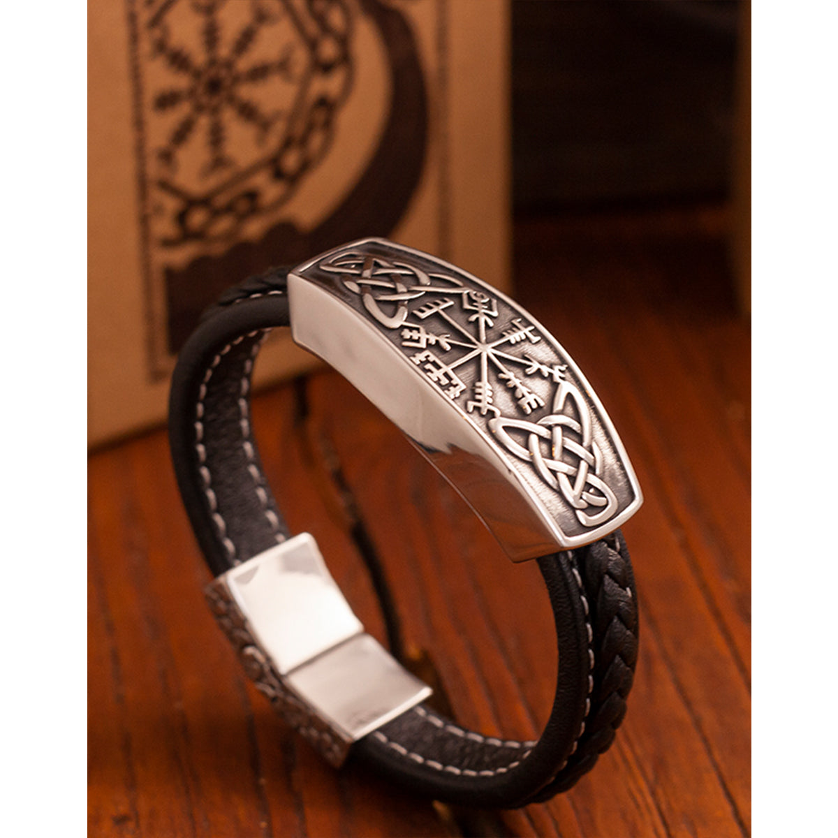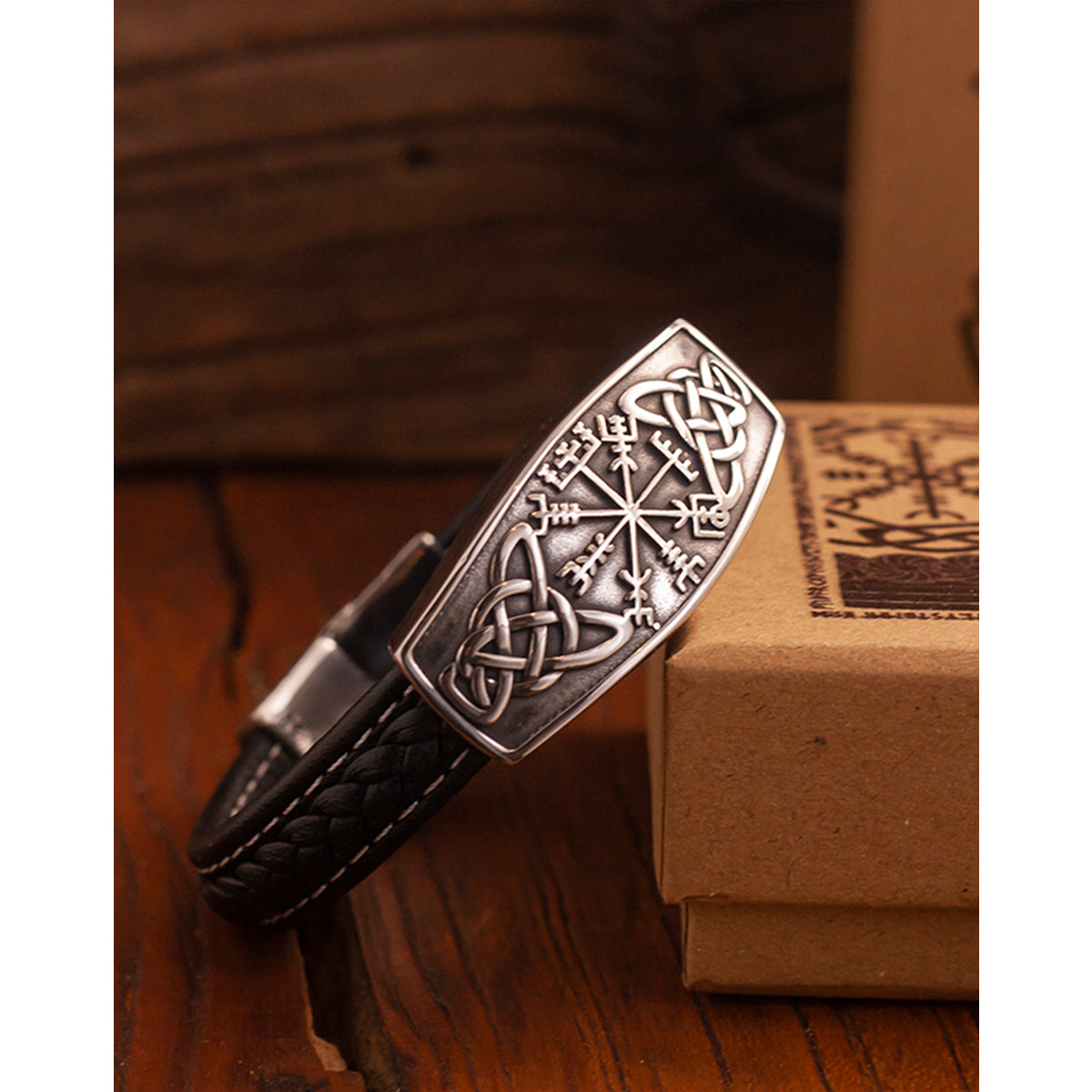 바이킹 컴퍼스 버클 PU 가죽 마그넷 팔찌