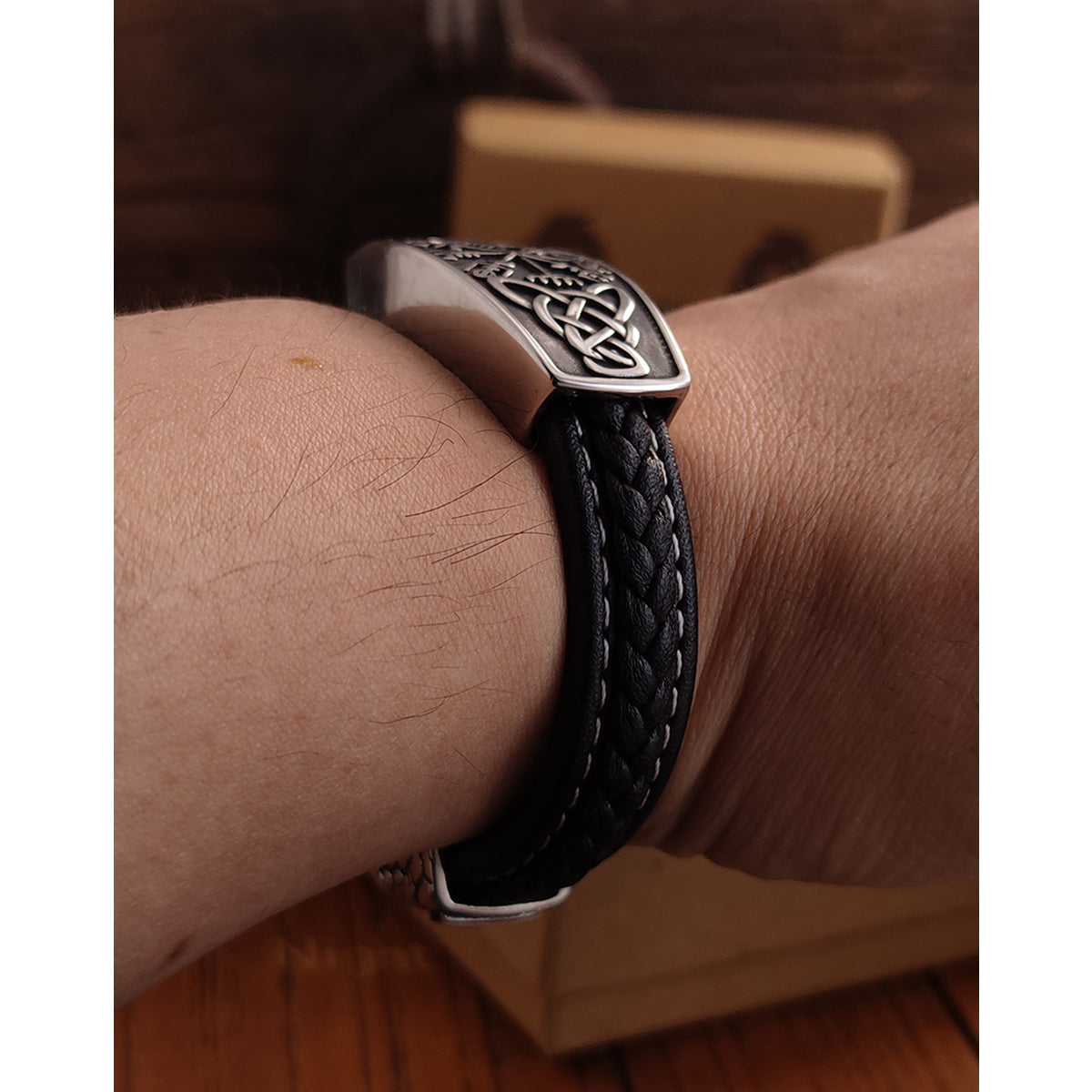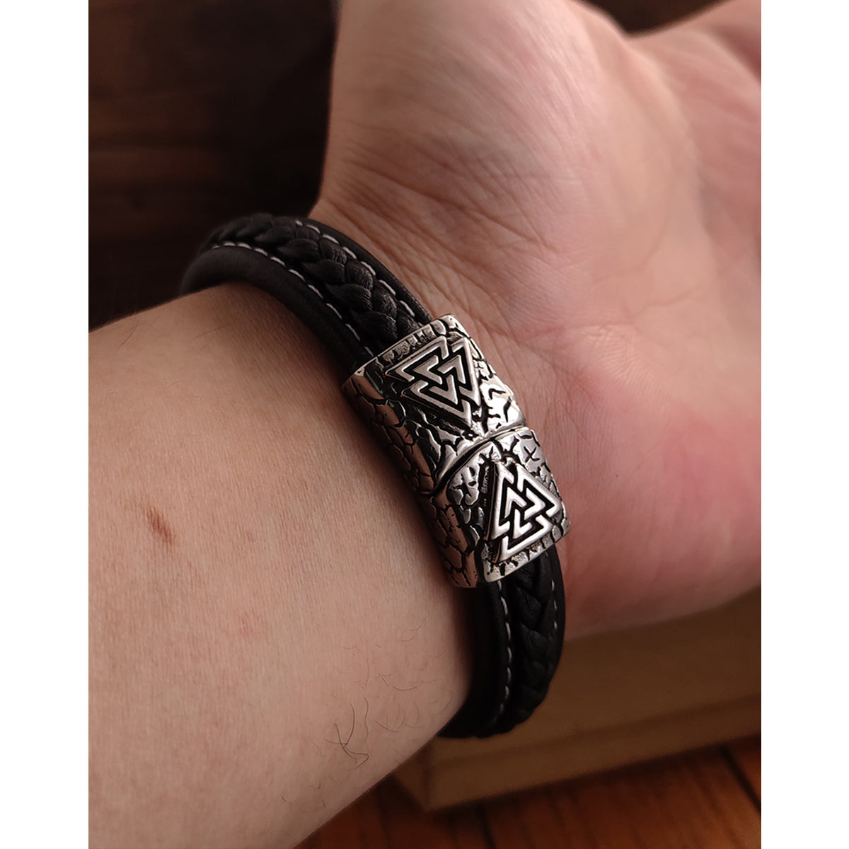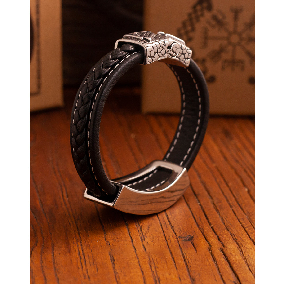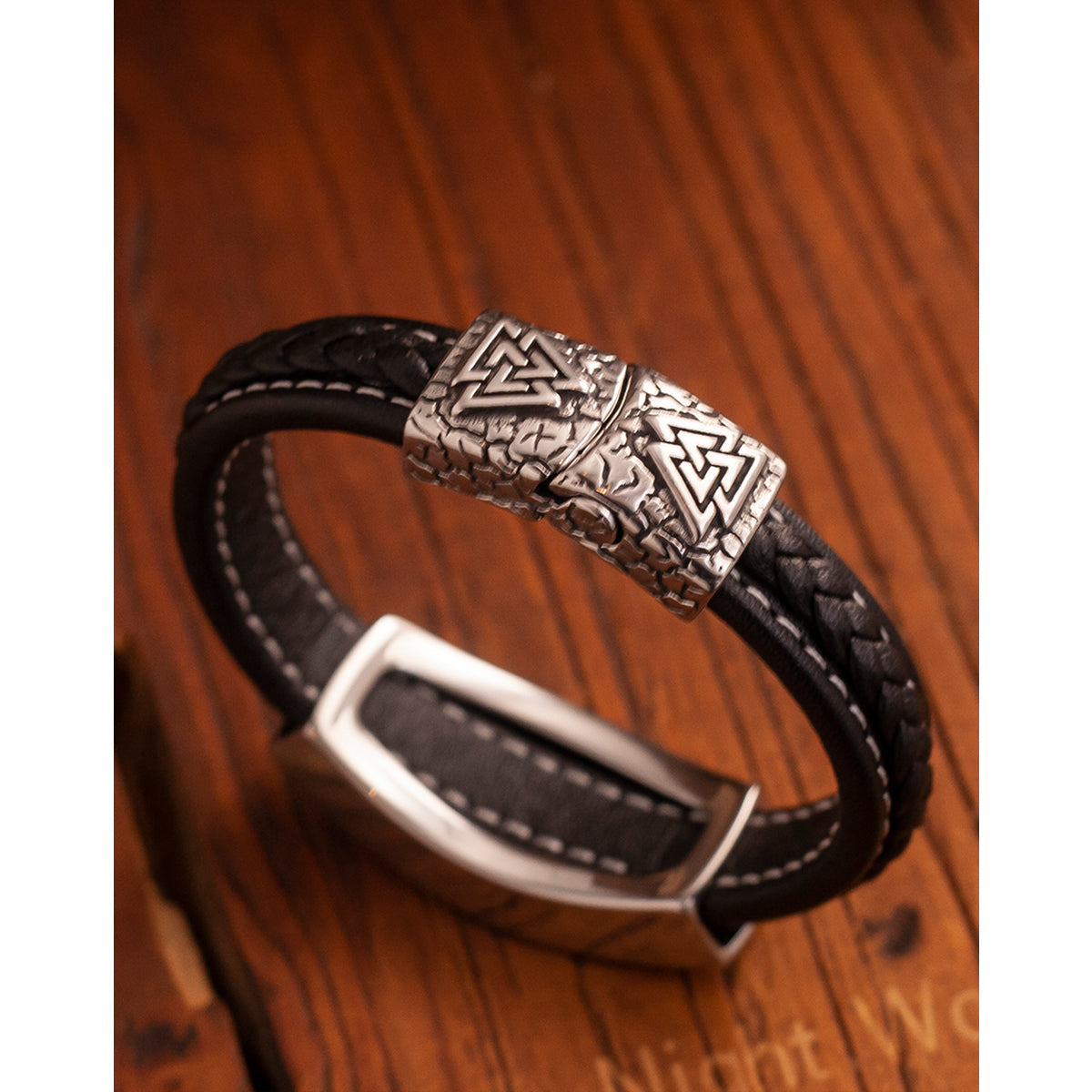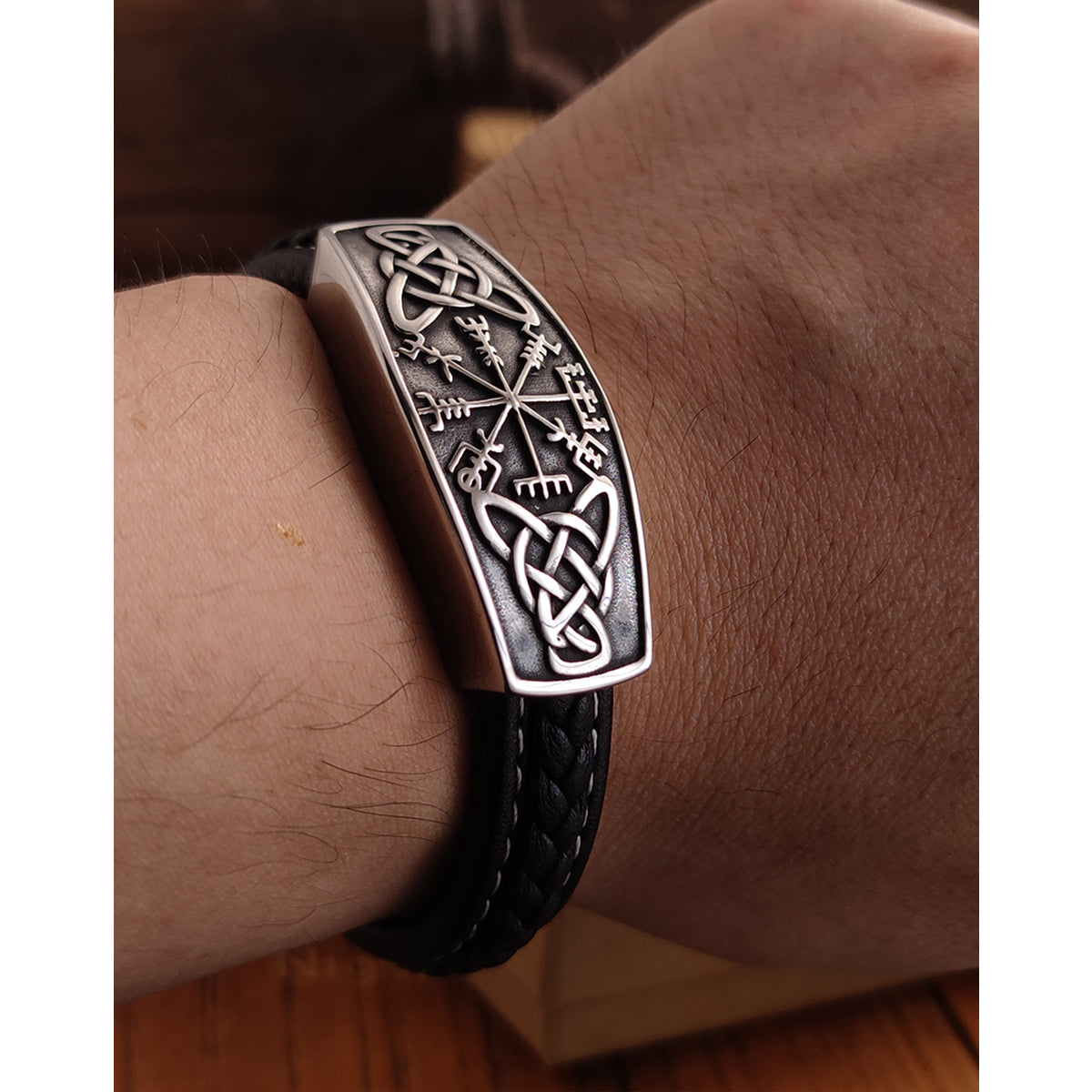 바이킹 컴퍼스 버클 PU 가죽 마그넷 팔찌