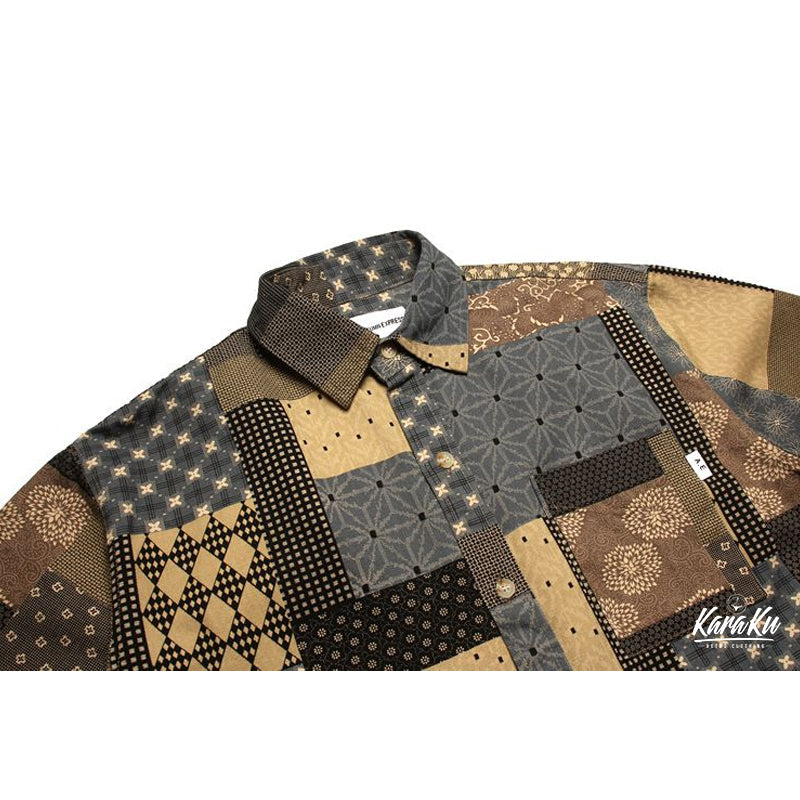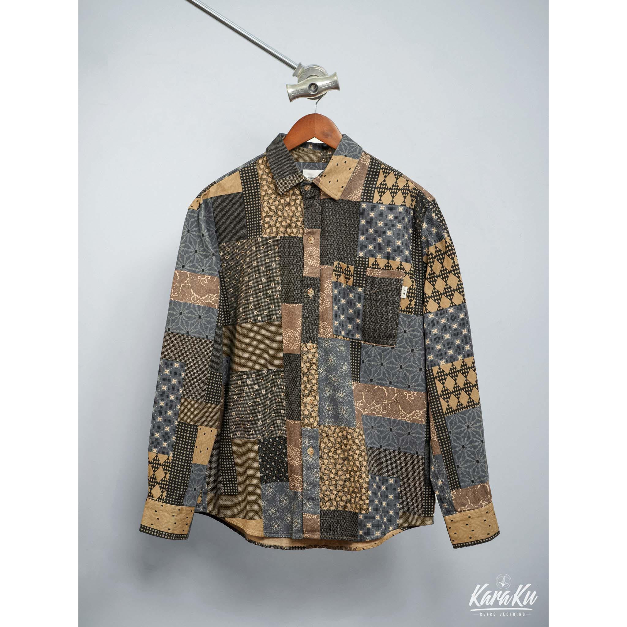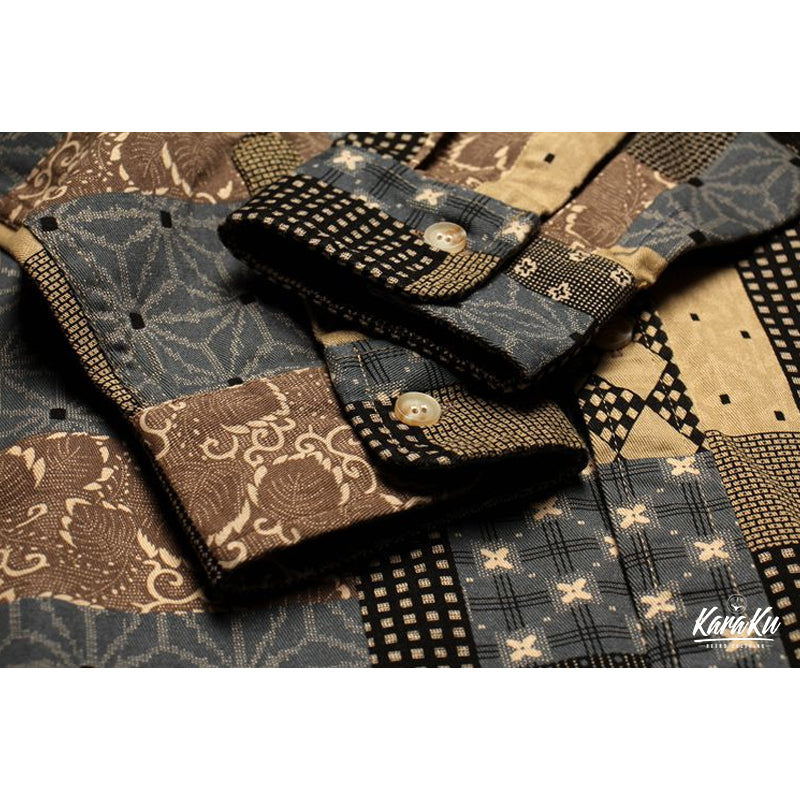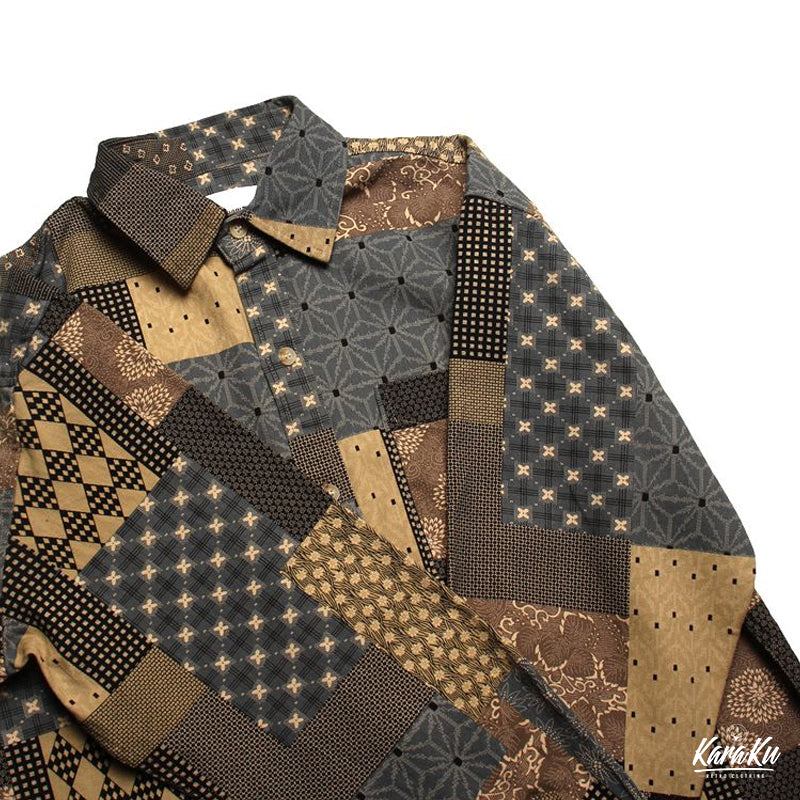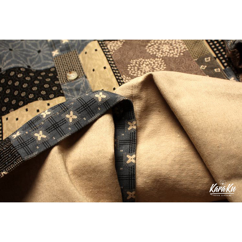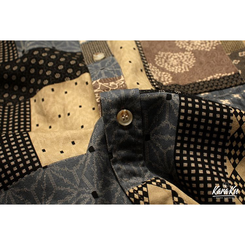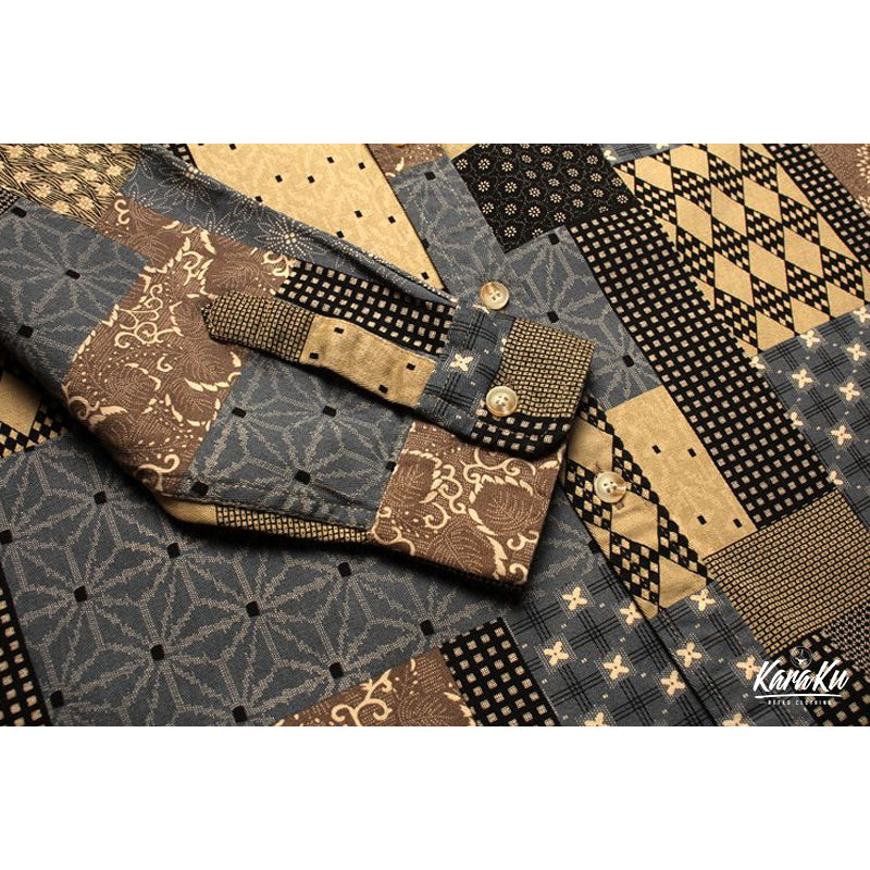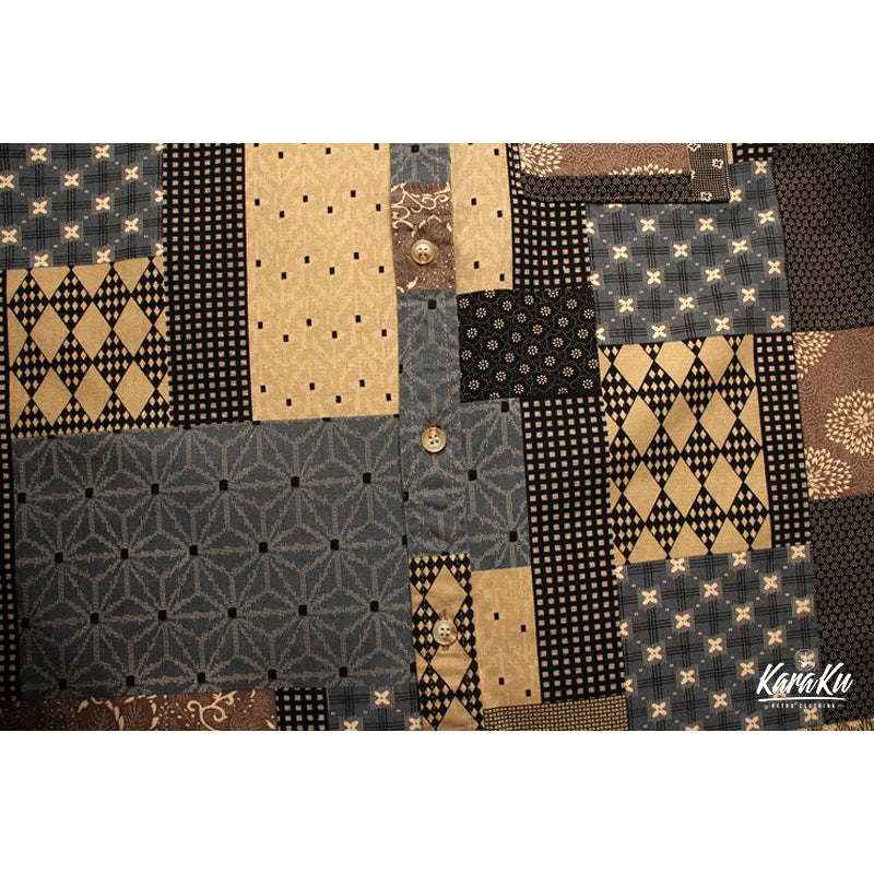 다양한 천 소재를 패치워크 형태로 배치해 조립했으며 아가일체크·꽃무늬·삼베잎무늬 등 일본 전통 문양이 랜덤으로 짜여졌습니다.