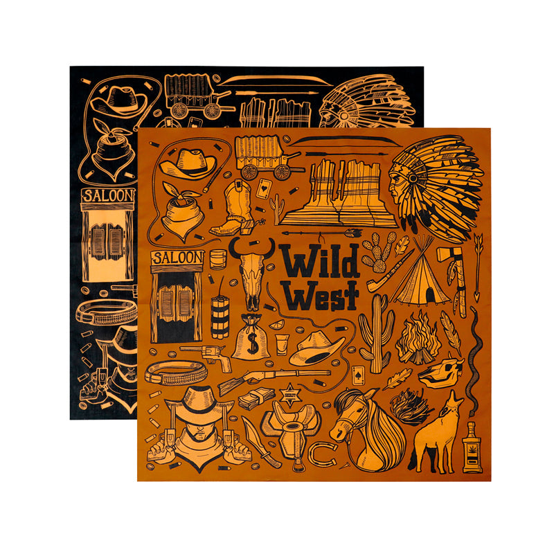 아메카지의 정석! 정사각형 사양으로 깔끔하면서도 세련된 느낌을 줍니다. 「Wild West」영문자 및 이미지들은 아메카지, 클래식 느낌이 가득합니다. 차별화된 개성을 보여주고 아이콘성을 뽐내주는 아이템입니다.