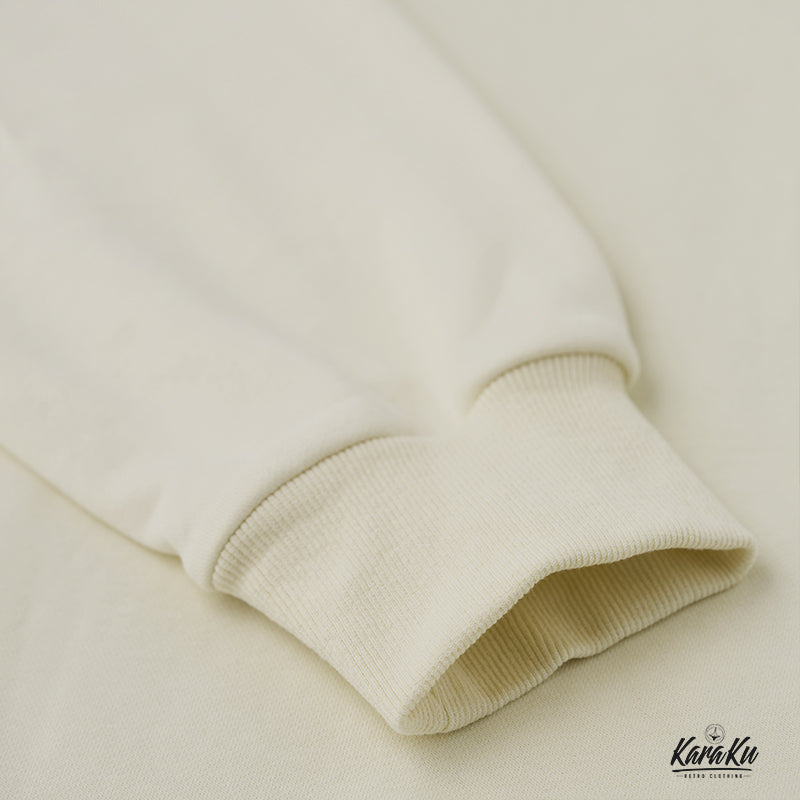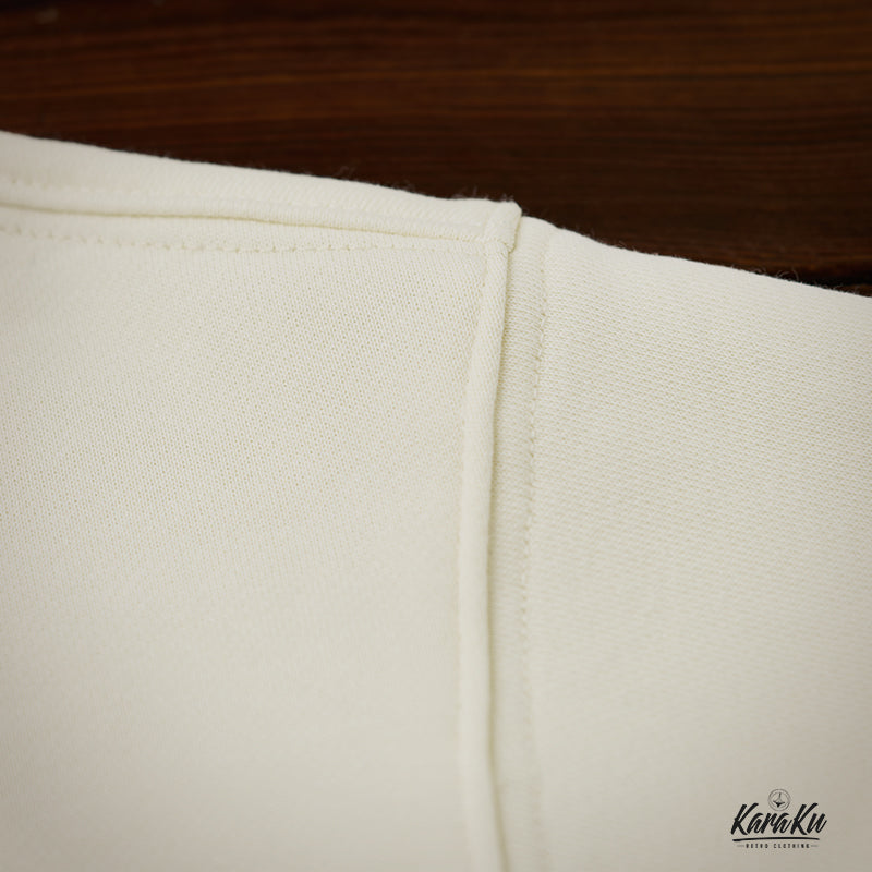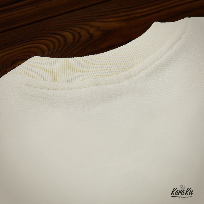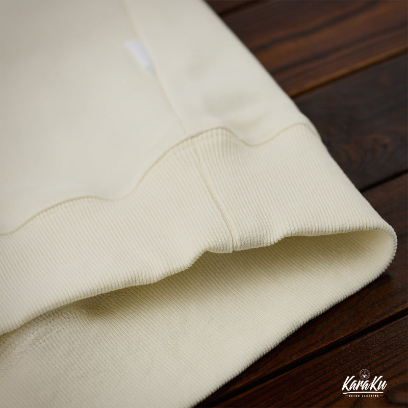 넥라인은 더블 스티치 처리로 단단함을 더했으며 넥라인과 소매는 리브 조직으로 이루어져 있습니다.