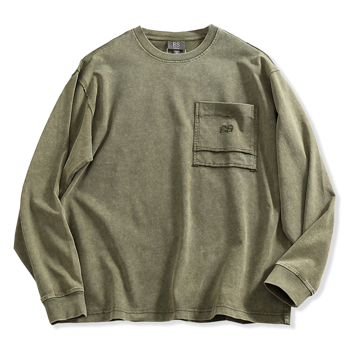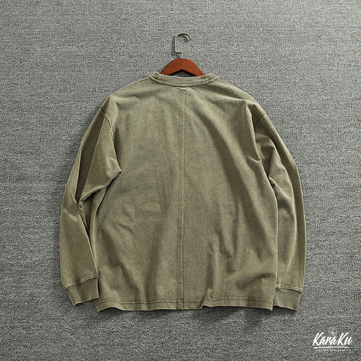 베이직한 디자인과 드롭숄더 실루엣으로 다양한 스타일링이 가능합니다. 빈티지 워싱 가공된 부드러운 코튼소재를 사용하였습니다.