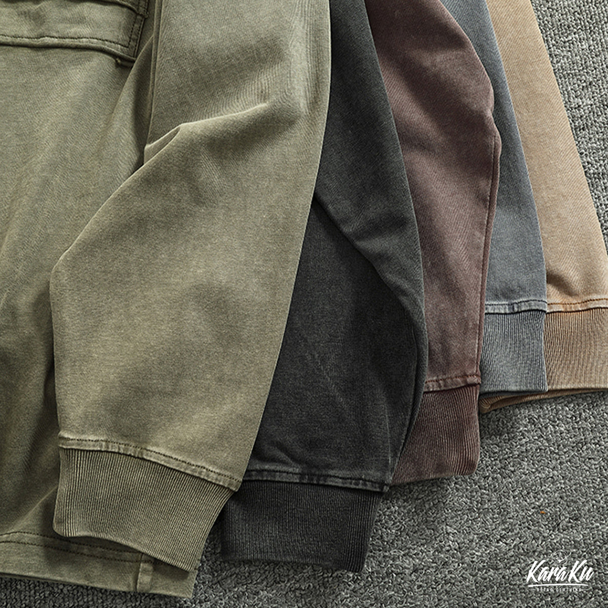 부드러운 코튼 소재와 워싱 가공으로 빈티지한 분위기를 연출합니다.