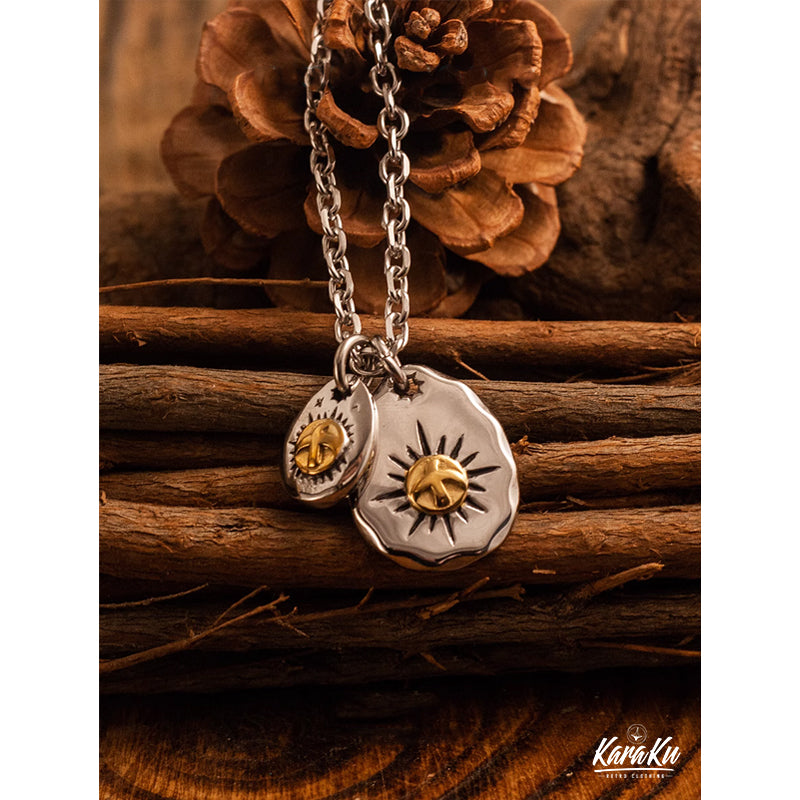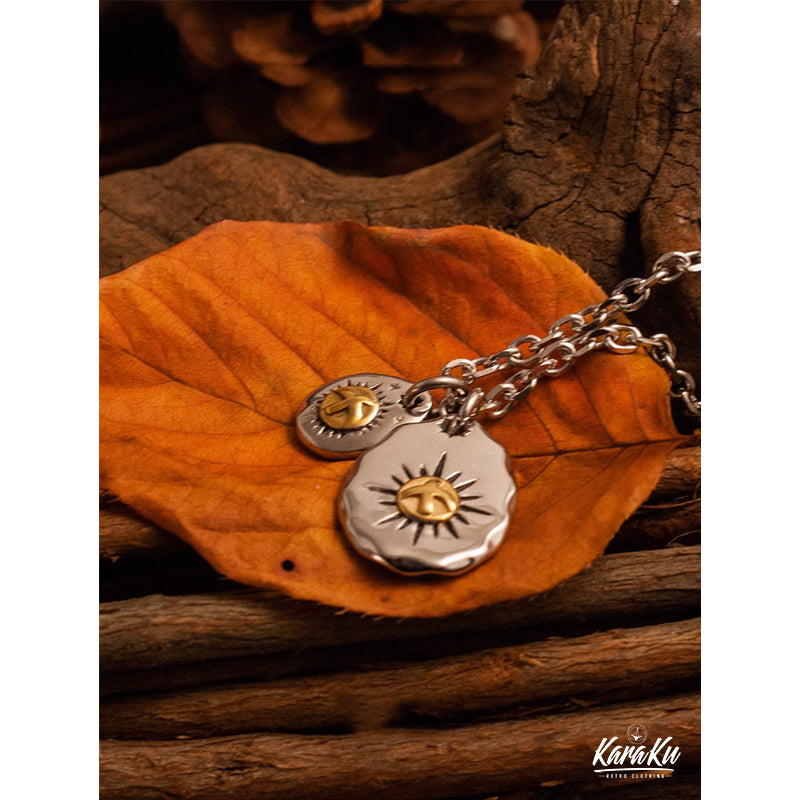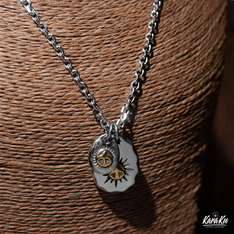 독수리 모티프를 중심으로 태양을 형상화한 심플한 디자인이 시선을 사로잡습니다. 입체적으로 조각된 독수리와 태양 디테일이 돋보이며, 매트한 질감은 남성들도 부담 없이 착용할 수 있어 인기가 많습니다. 독특한 가공을 통해 오랫동안 사용해온 듯한 질감을 살려, 전체적으로 거칠고 빈티지한 분위기를 연출합니다.