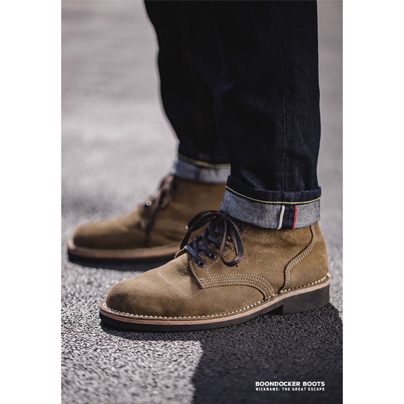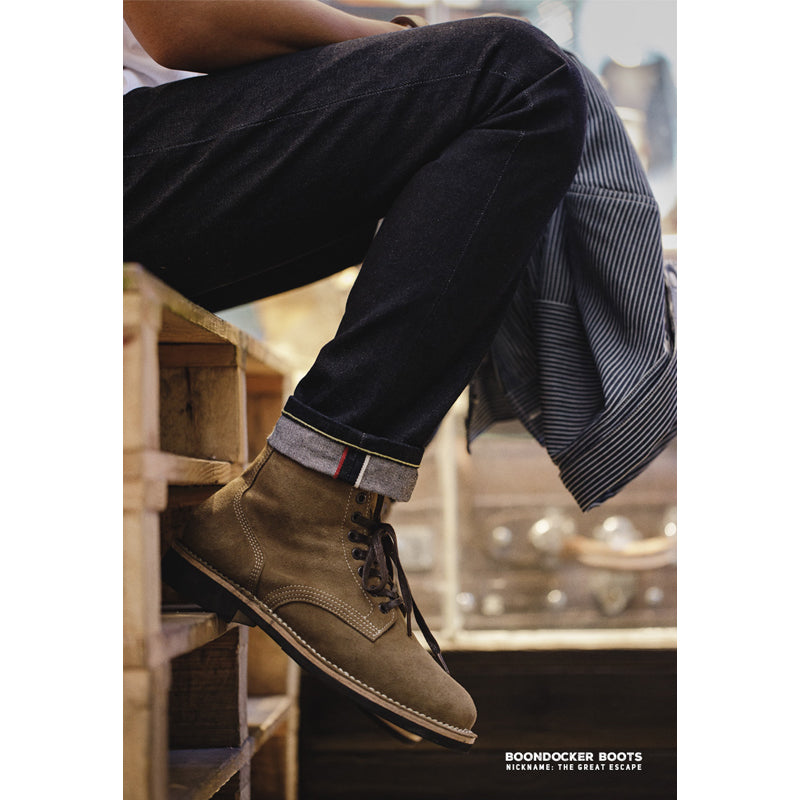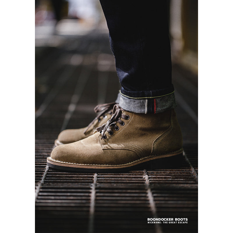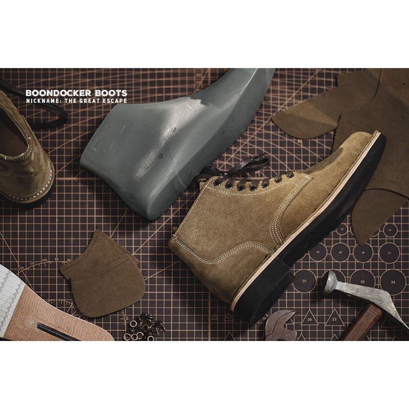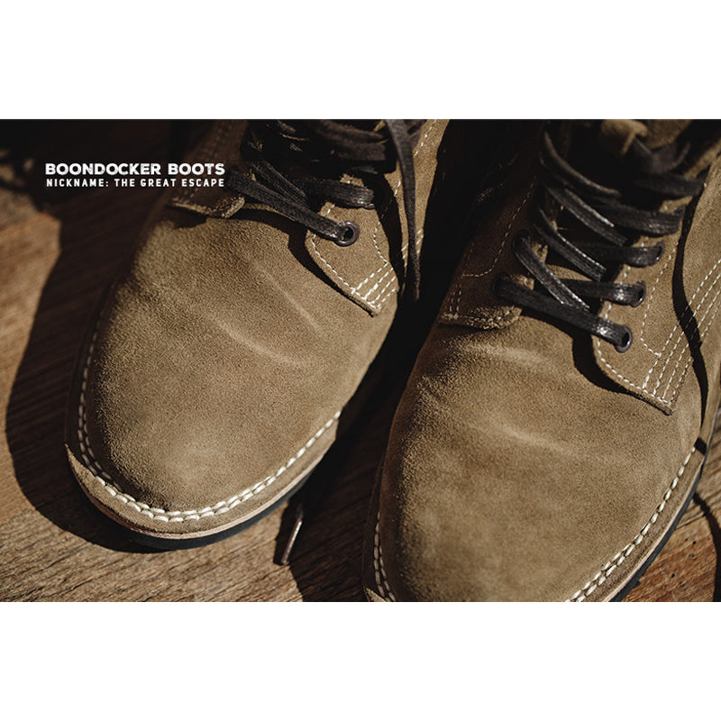 이 신발은 스티브 맥퀸이 주연을 맡은 영화 대탈출에서 맥퀸이 착용한 신발로 잘 알려져 있습니다. 가죽 표면은 실물처럼 안감한 가죽을 사포질한 후 파라핀을 스며들게 하는 특수 가공을 거쳐, 일반적인 스웨이드 신발보다 얼룩지거나 거친 질감이 나타날 수 있습니다. 이는 M-43의 고유한 특성이므로, 구매 시 참고 부탁드립니다.