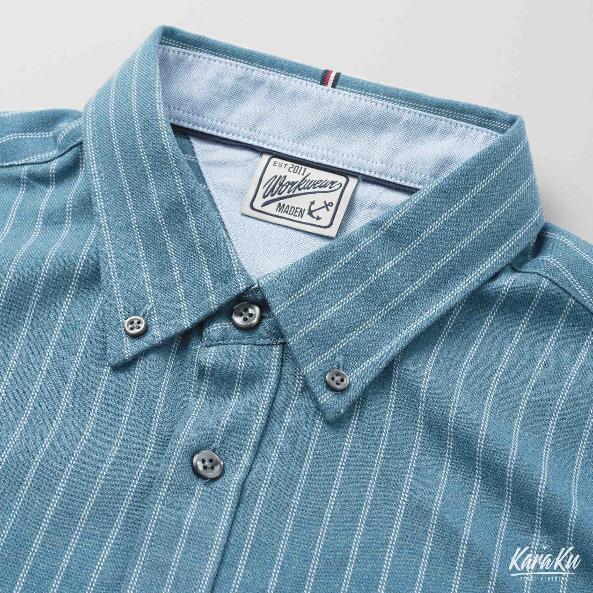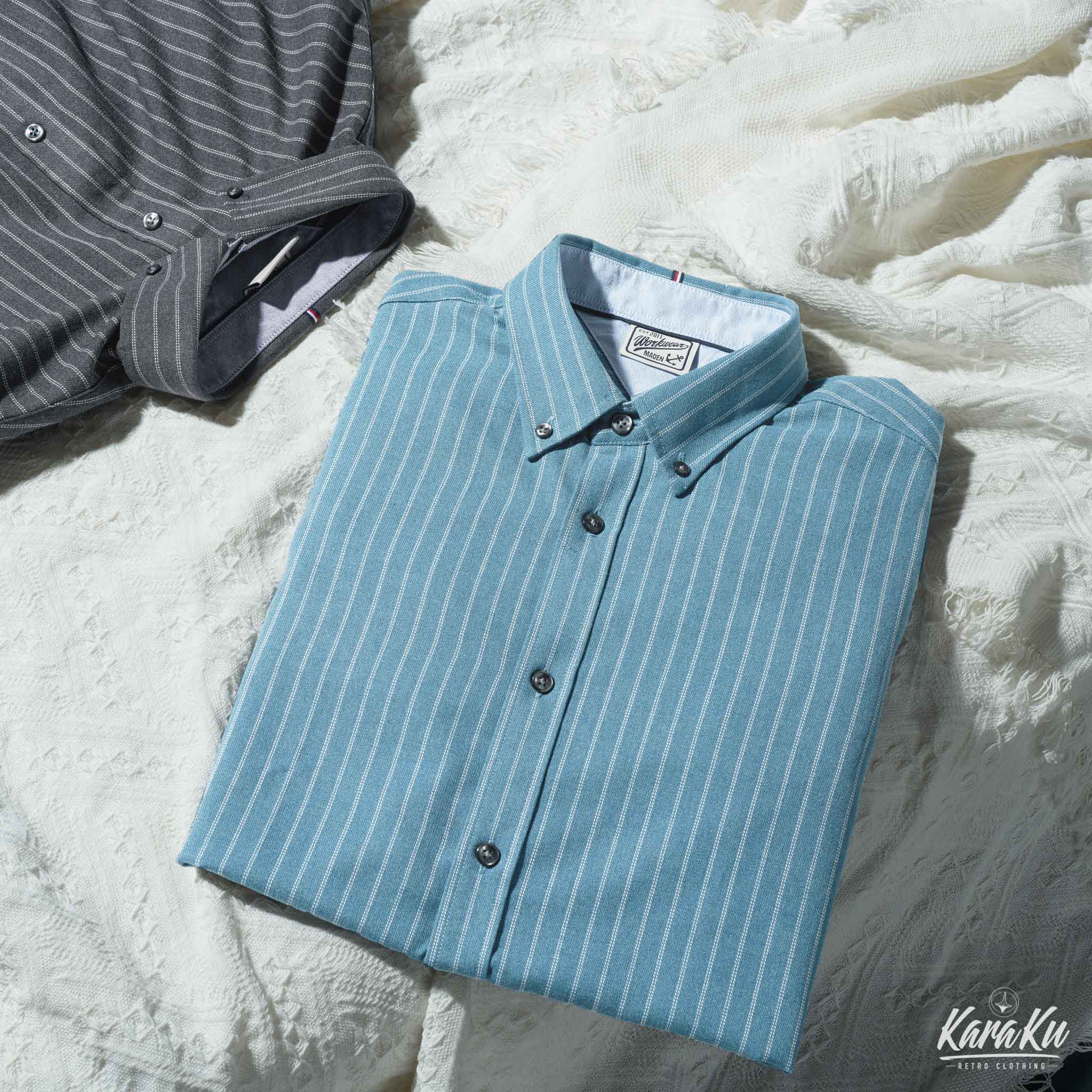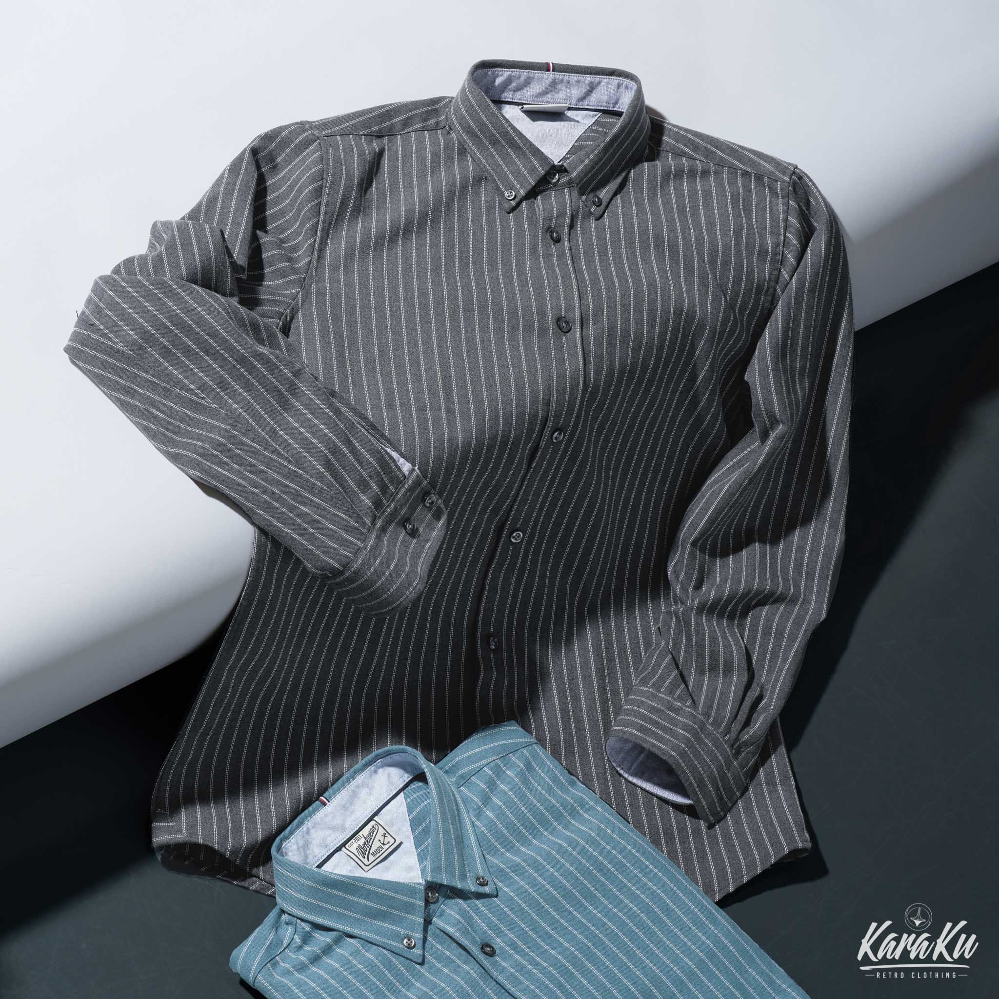 아메리칸 레트로 스트라이프 라펠 긴팔 셔츠