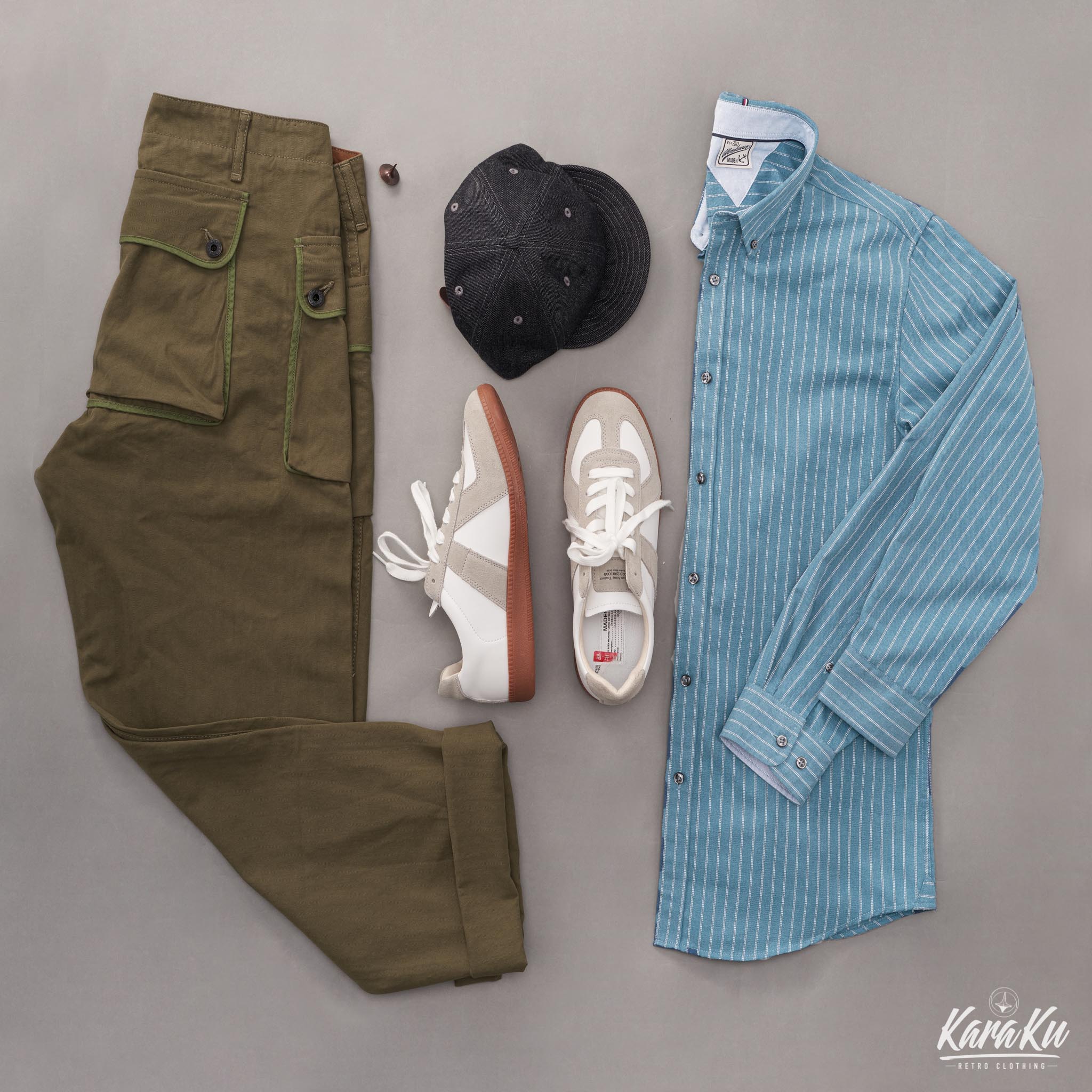 [버튼 다운 사양] 버튼 다운 사양의 남성 셔츠는, 모든 코디에 활용할 수 있음.