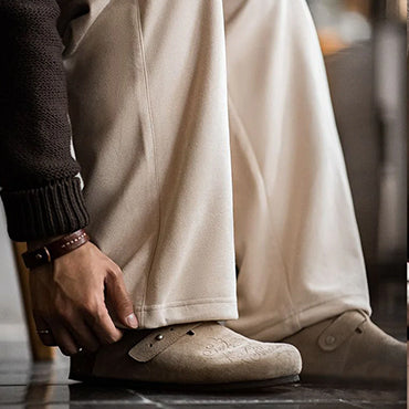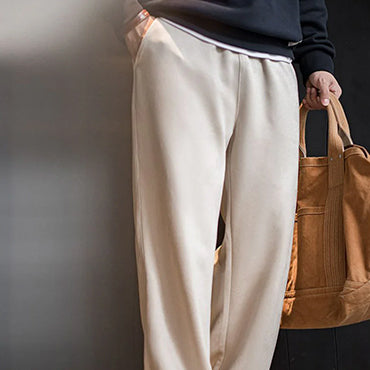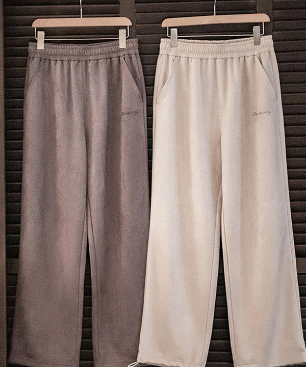 허리 밴드와 드로스트링으로 편안하게 착용 가능한 와이드 실루엣의 슬랙스입니다. 스웨이드 소재로 부드럽고 섬세한 촉감을 선사합니다.