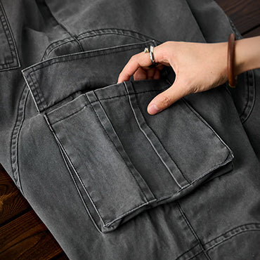 빈티지한 감성과 터프한 디테일의 워크 팬츠로, 내구성과 스타일을 겸비하며 다양한 코디와 계절감에 적합합니다.