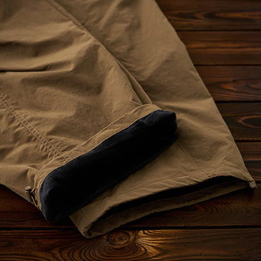 허리 밴드와 드로스트링으로 편안하게 착용 가능한 와이드 실루엣의 슬랙스입니다. 나일론과 기모 소재로 쾌적함과 보온성을 더했으며, 다양한 스타일에 어울립니다.