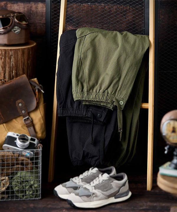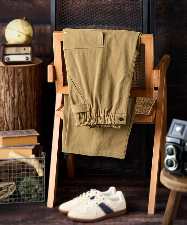밀리터리 디테일을 가미한 캐주얼 팬츠로, 편안한 착용감과 실용성이 돋보이는 다용도 아이템입니다.