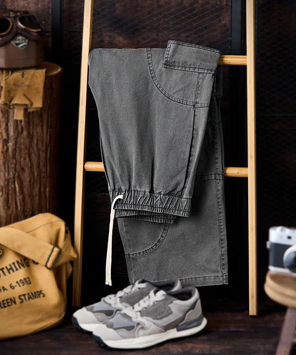 워싱 처리된 빈티지 카고 팬츠로, 편안함과 실용성을 겸비한 세련된 디자인입니다.
