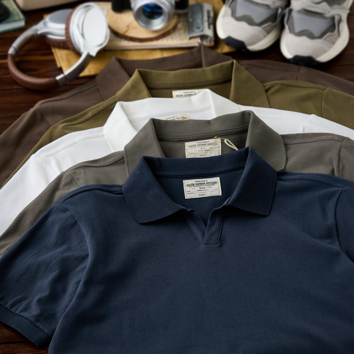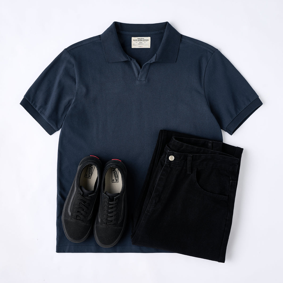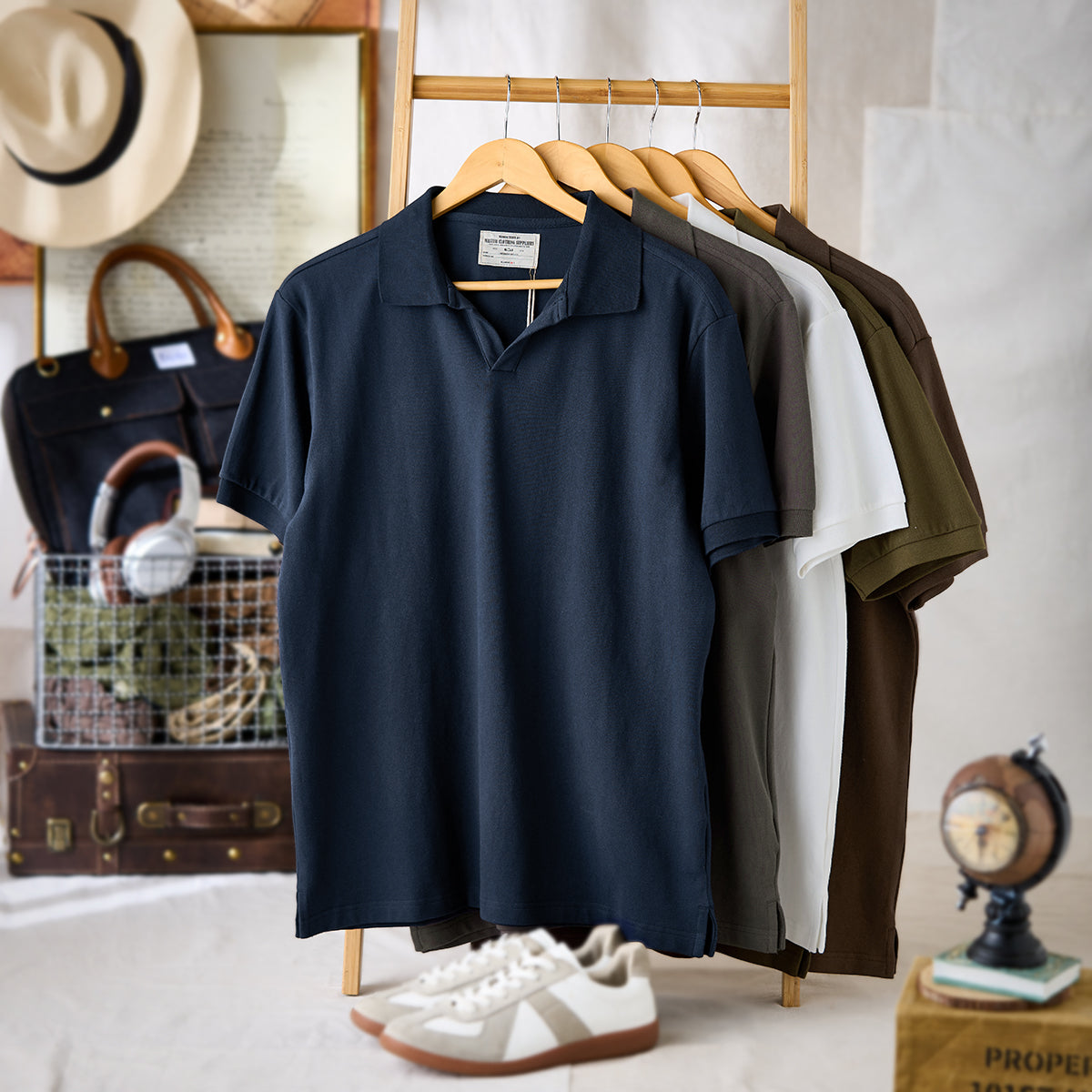세련된 노버튼 폴로 셔츠로, 쾌적한 착용감과 높은 활용도를 자랑합니다.