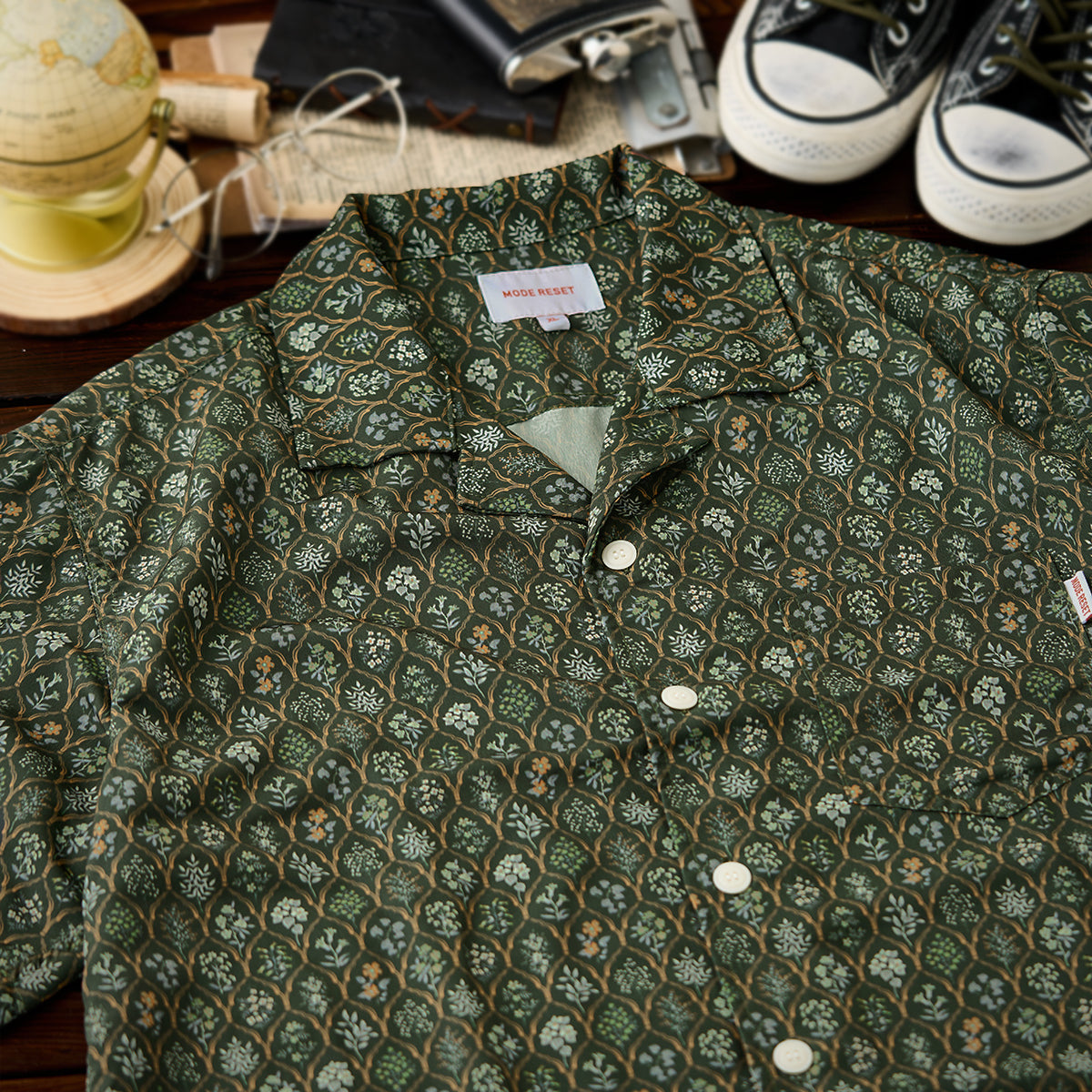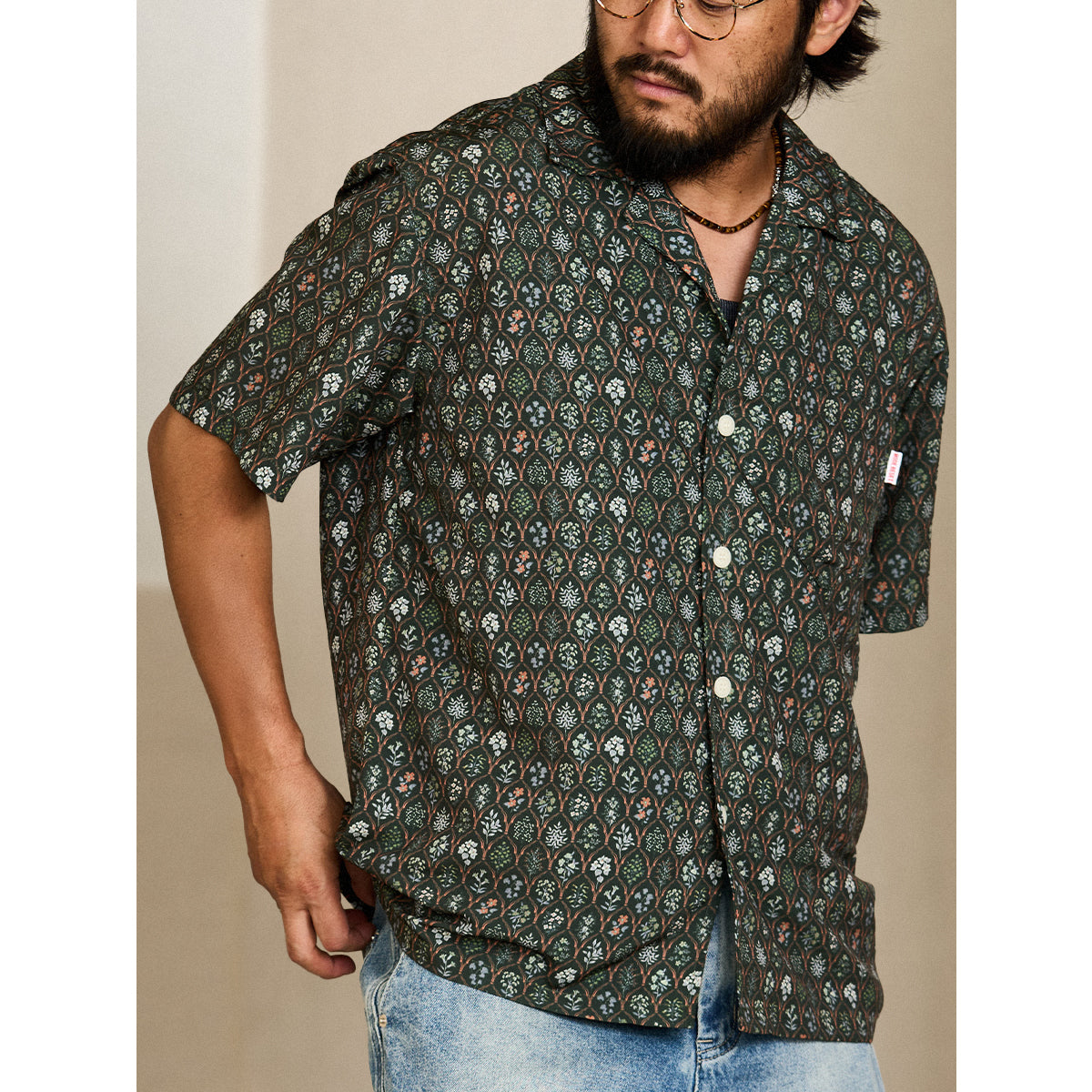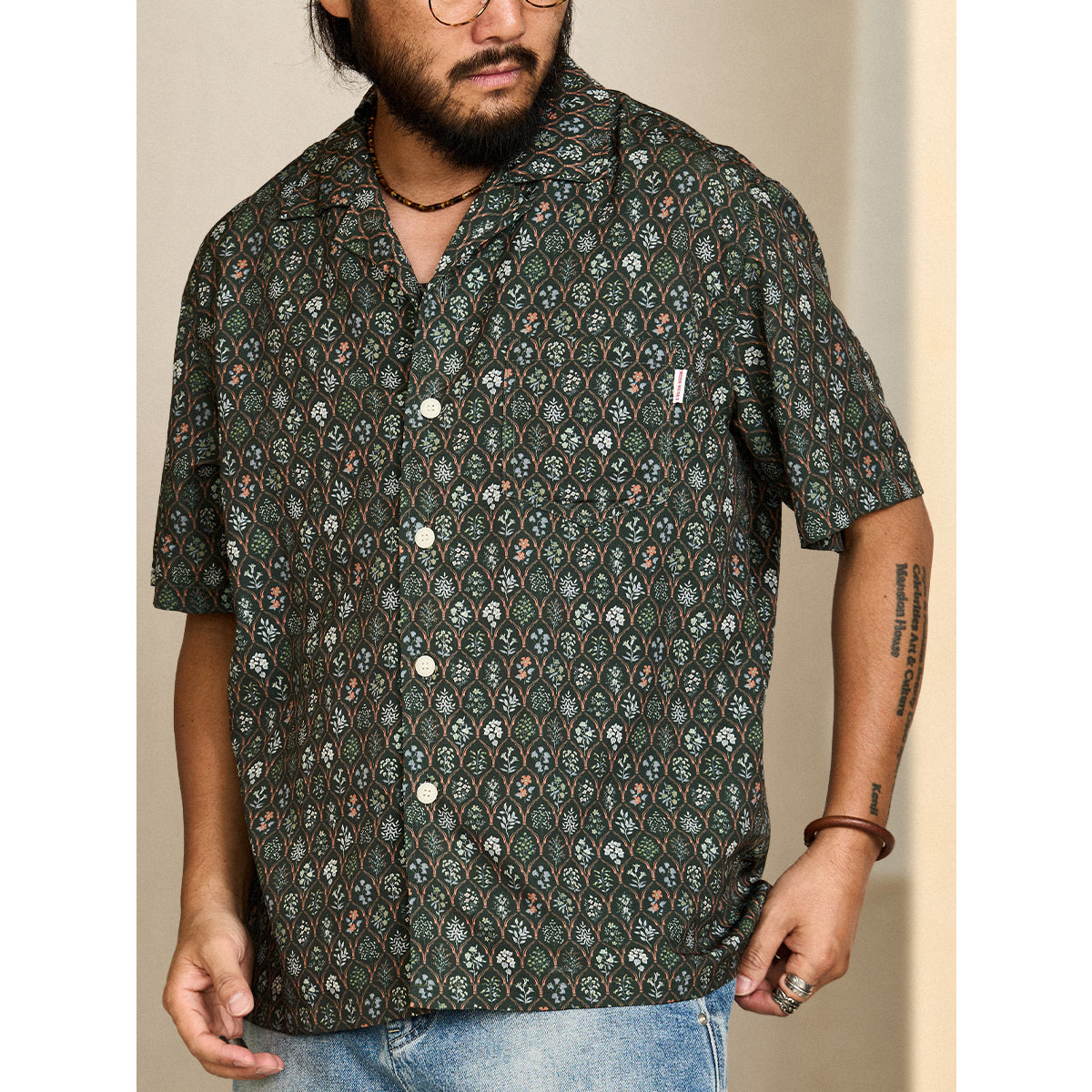 「본초 도보」식물 무늬 쿠바 셔츠