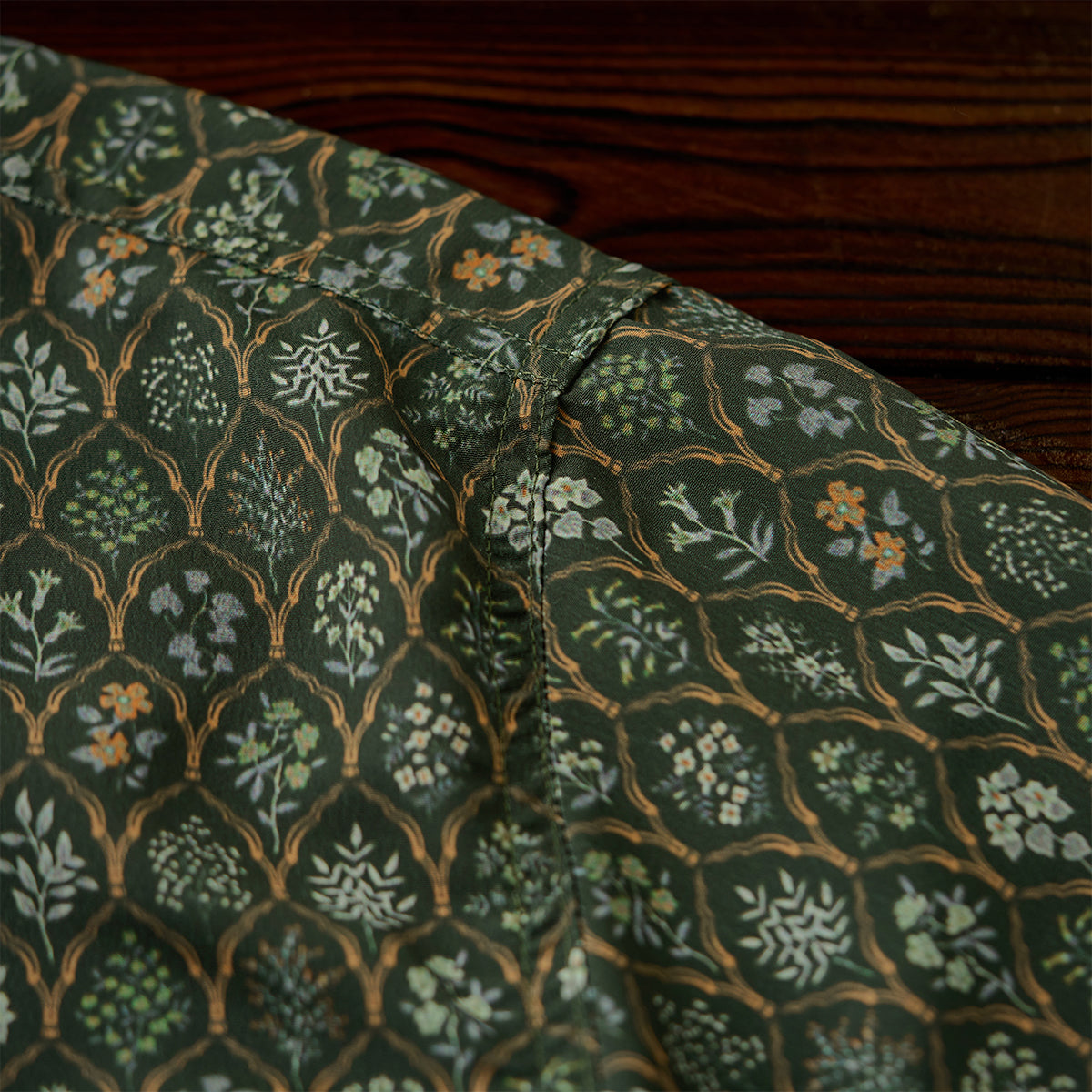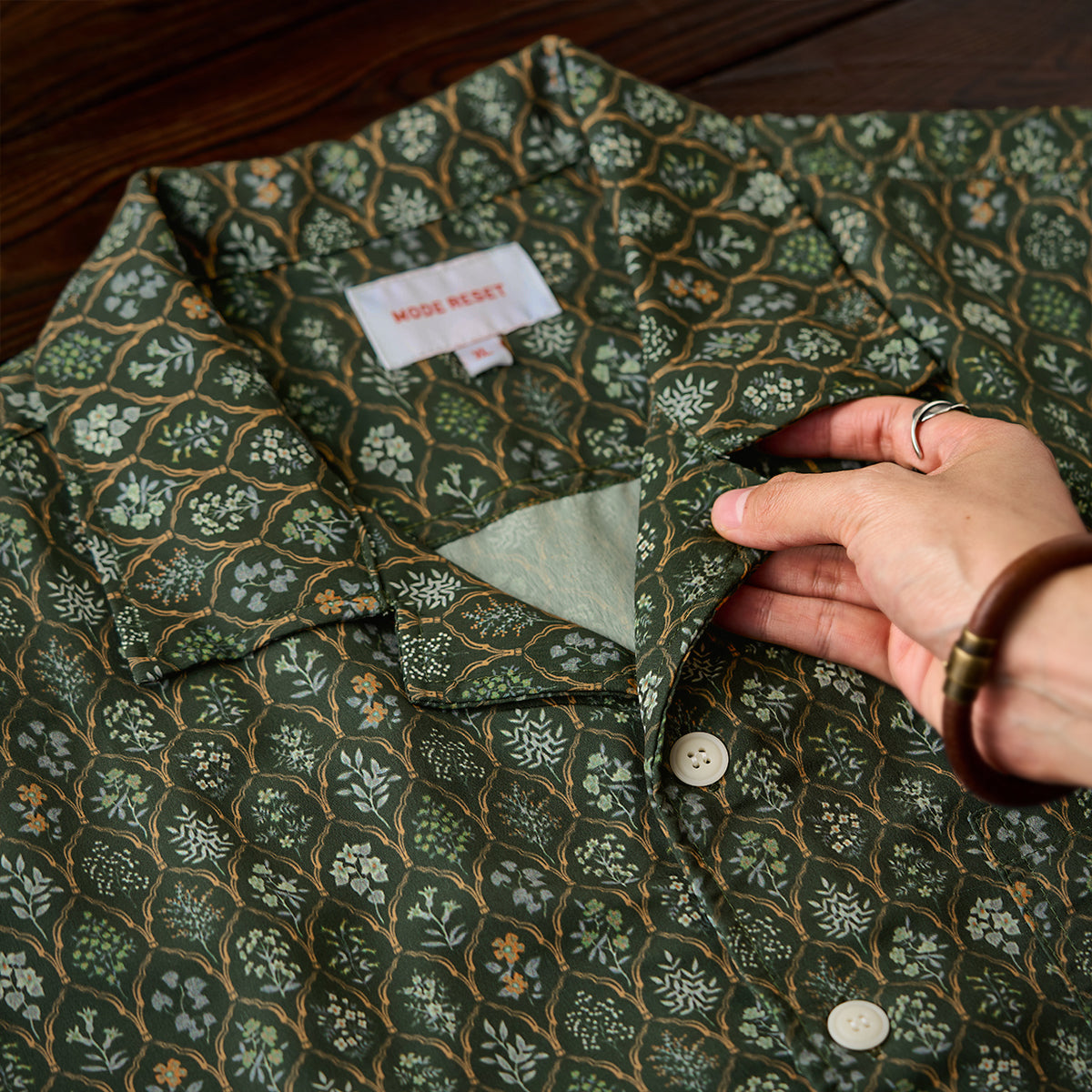 꽃잎 형태의 식물 패턴은 고서 『본초도보(本草圖譜)』에서 영감을 받아 디자인되어, 은은하면서도 독특한 분위기를 자아냅니다. 드레이프감이 돋보이는 릴렉스 실루엣으로 트렌디한 무드를 연출하는 아이템입니다.