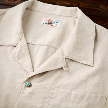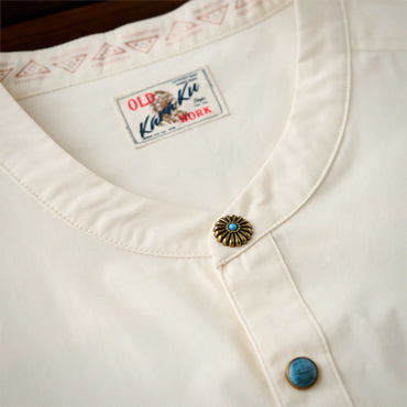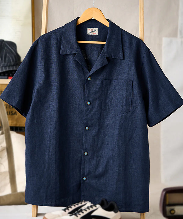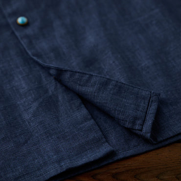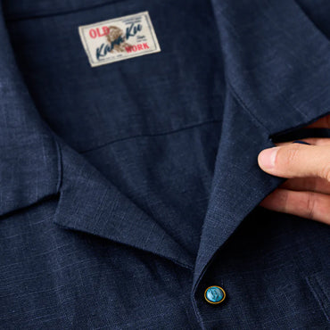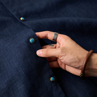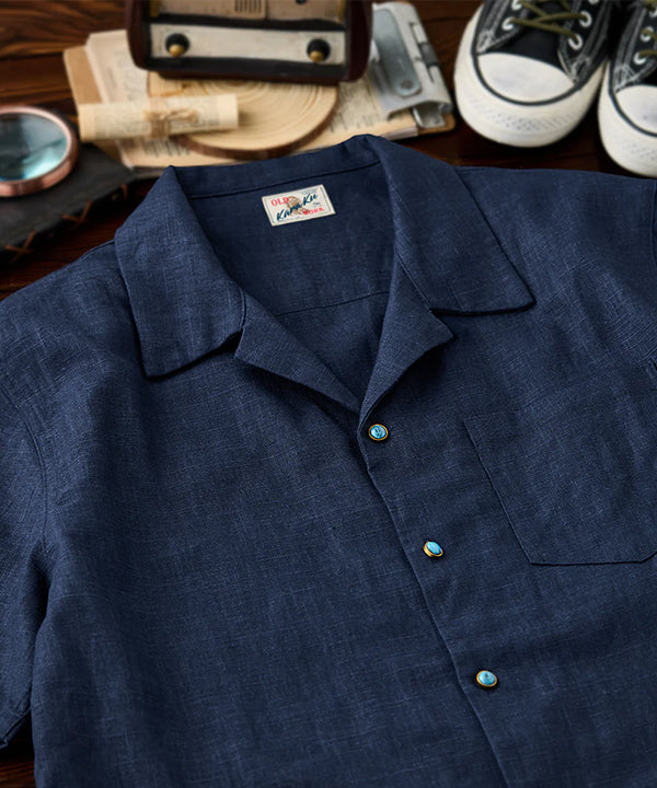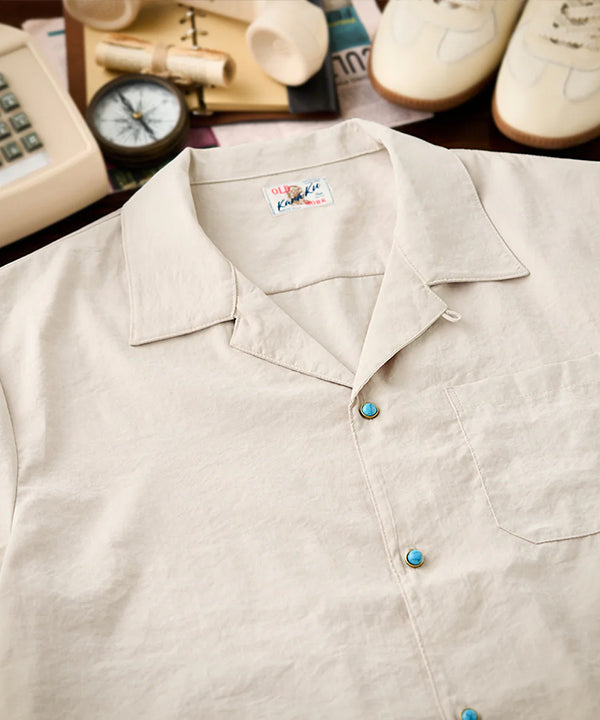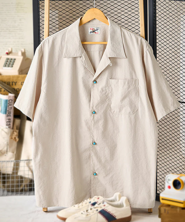 터키석 단추 린넨 코튼 오픈칼라 셔츠