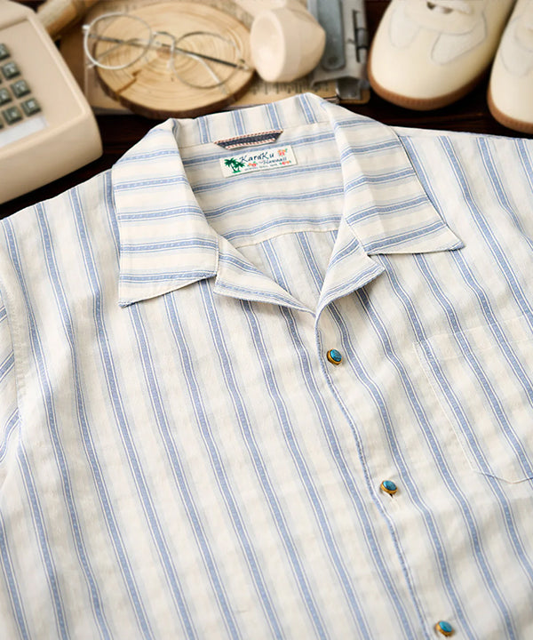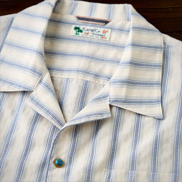 터키석 단추 쟈가드 스트라이프 오픈칼라 셔츠
