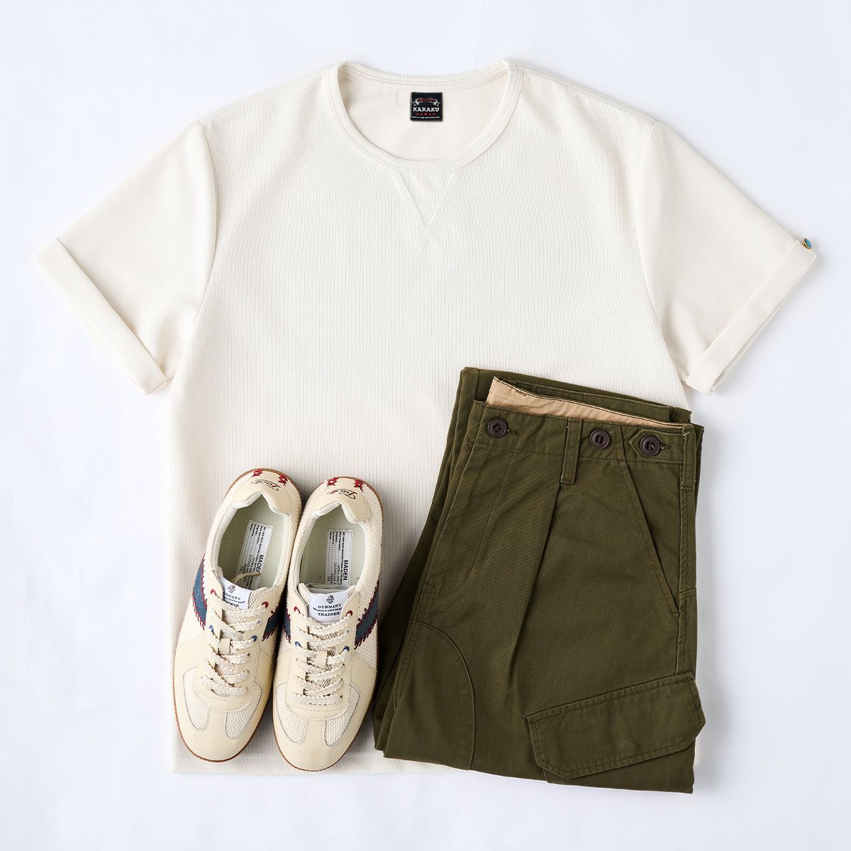단독으로 착용해도 존재감이 살아나며, 데님이나 치노 팬츠, 쇼츠 등 다양한 하의와 잘 어울립니다. 캐주얼하면서도 어른스러운 무드의 티셔츠입니다.