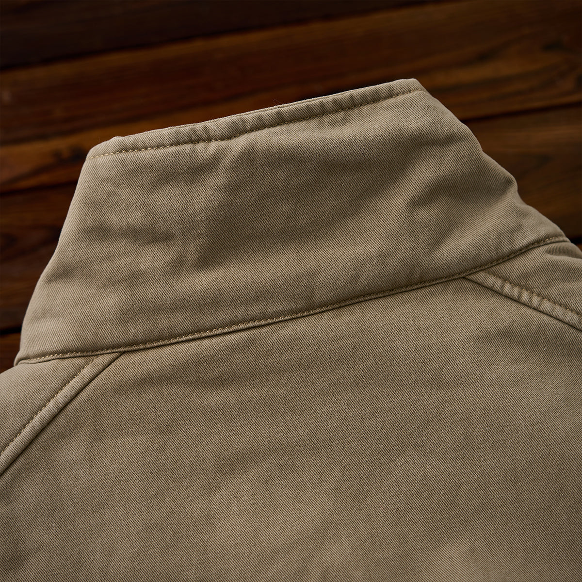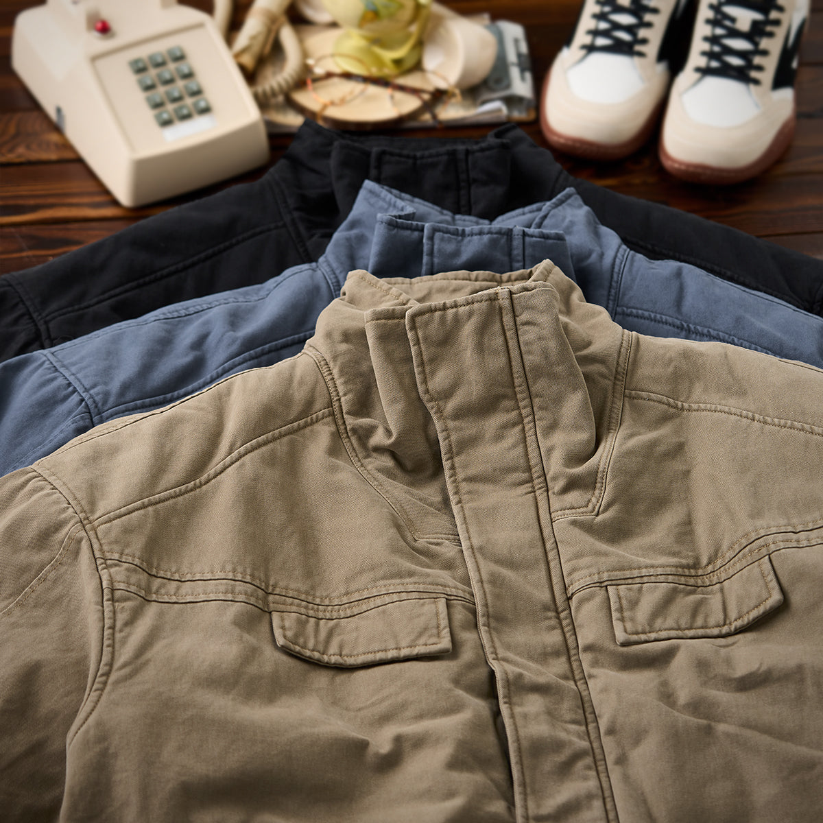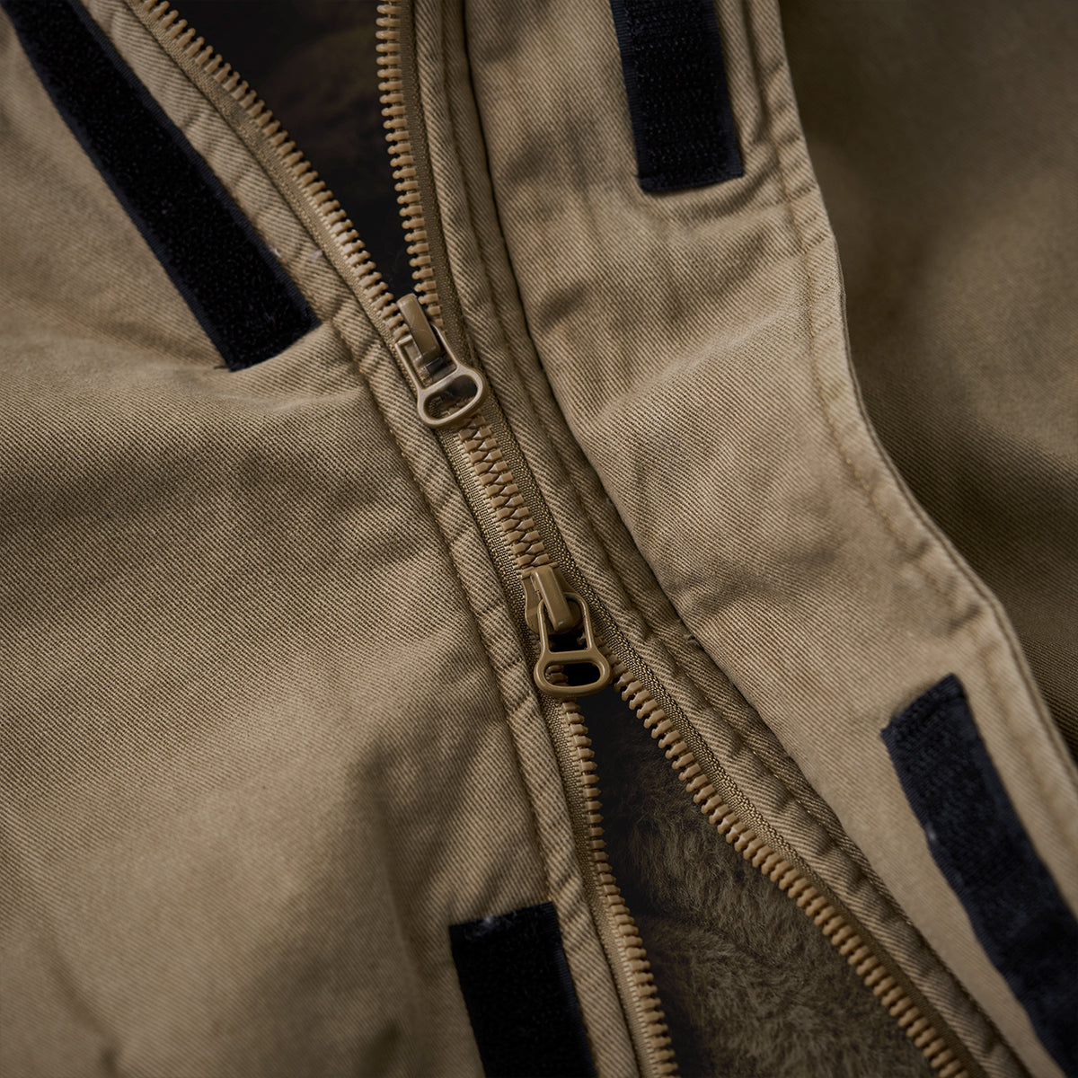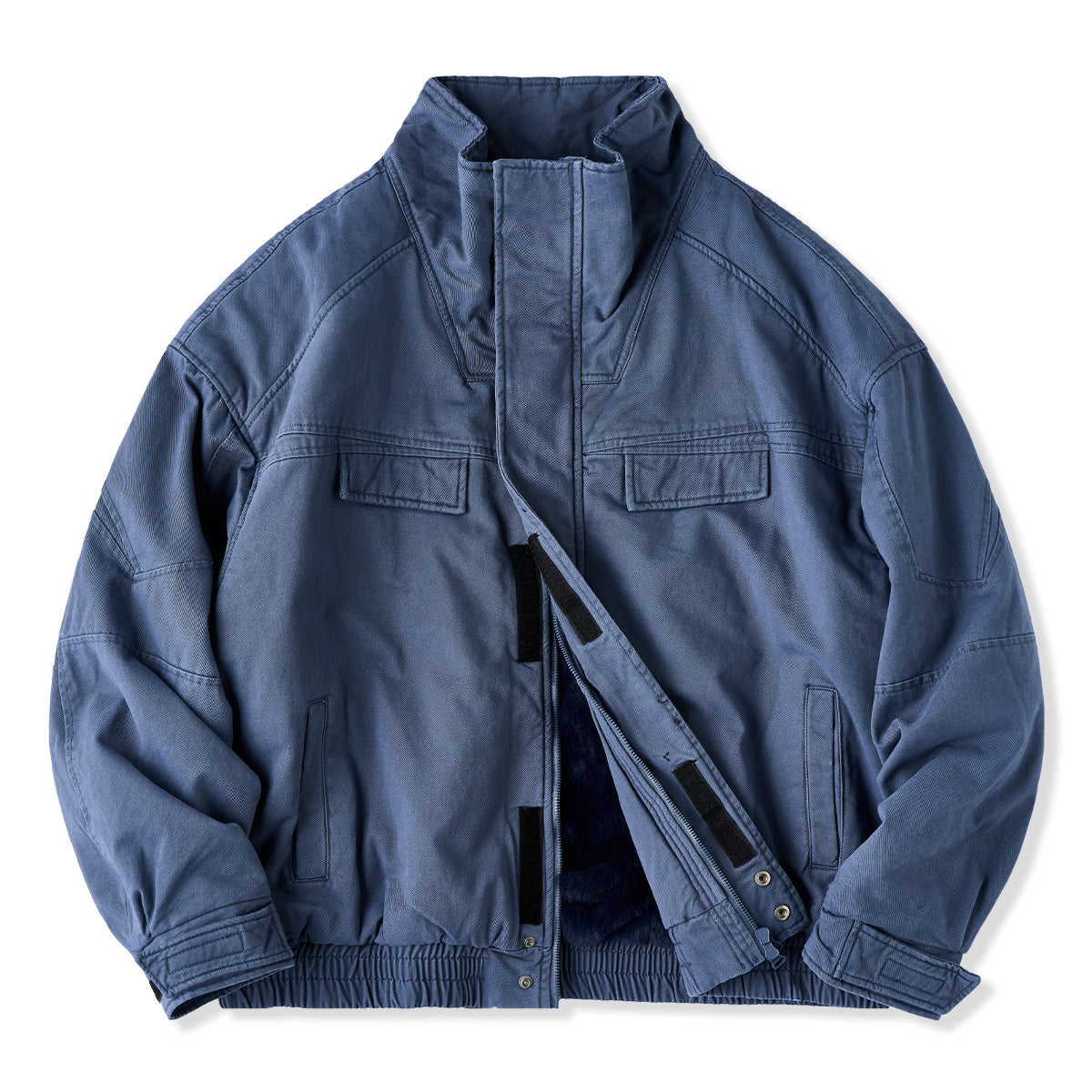 스탠드 칼라 디자인으로 목을 안정적으로 감싸주어 보온성과 실용성을 높였습니다. 지퍼와 벨크로의 이중 구조로 바람을 효과적으로 차단하며, 가슴 포켓과 사이드 포켓을 더해 수납력도 뛰어납니다. 밑단과 소매는 립 처리로 마감되어 찬 공기 유입을 막아줍니다.
